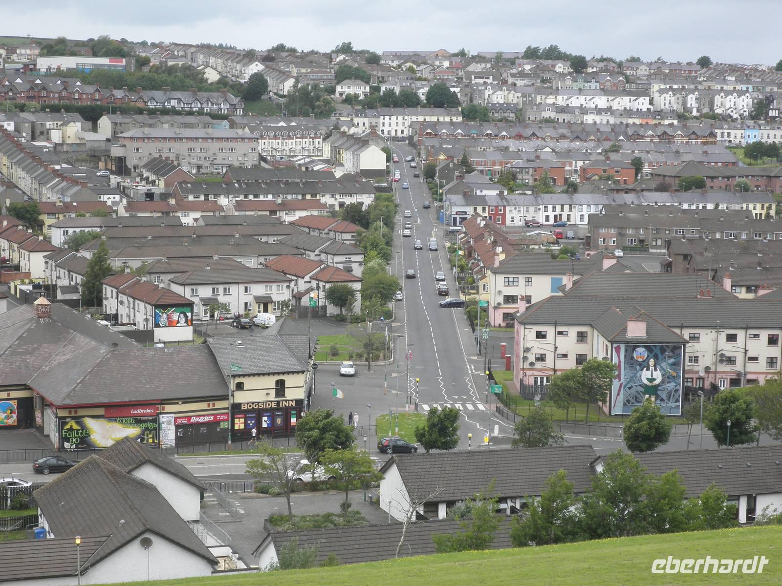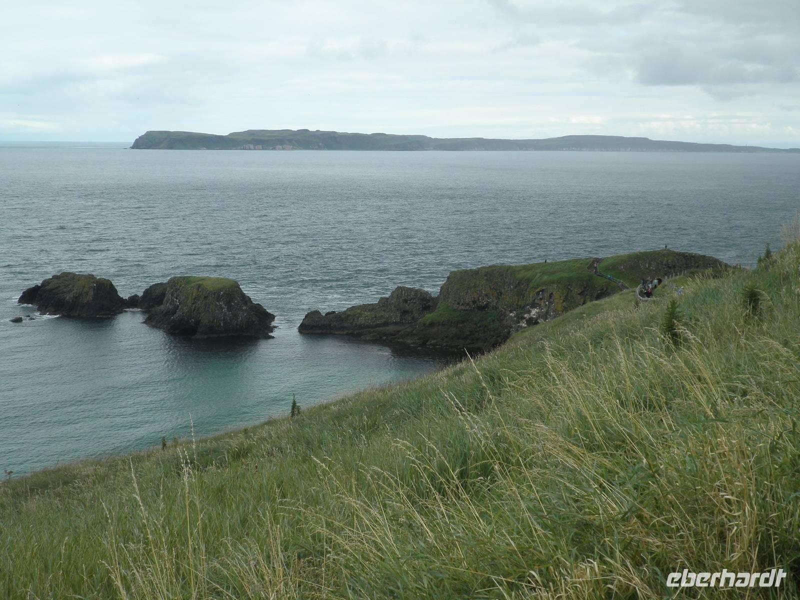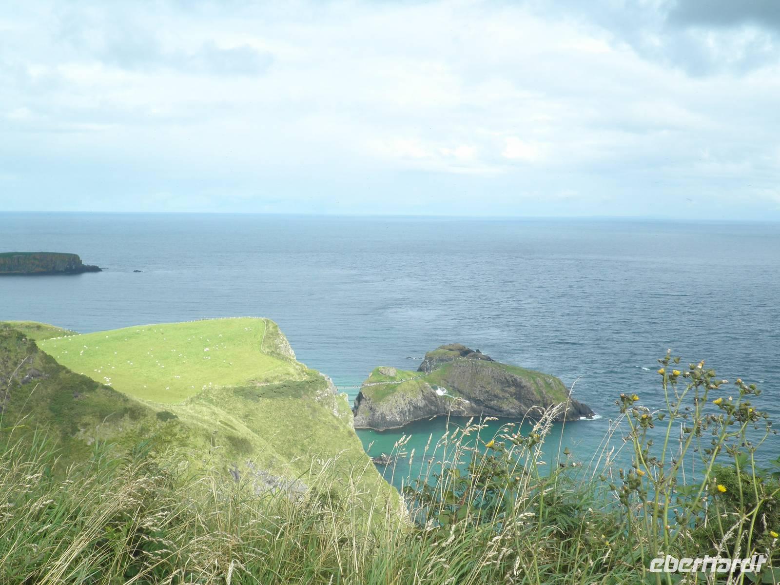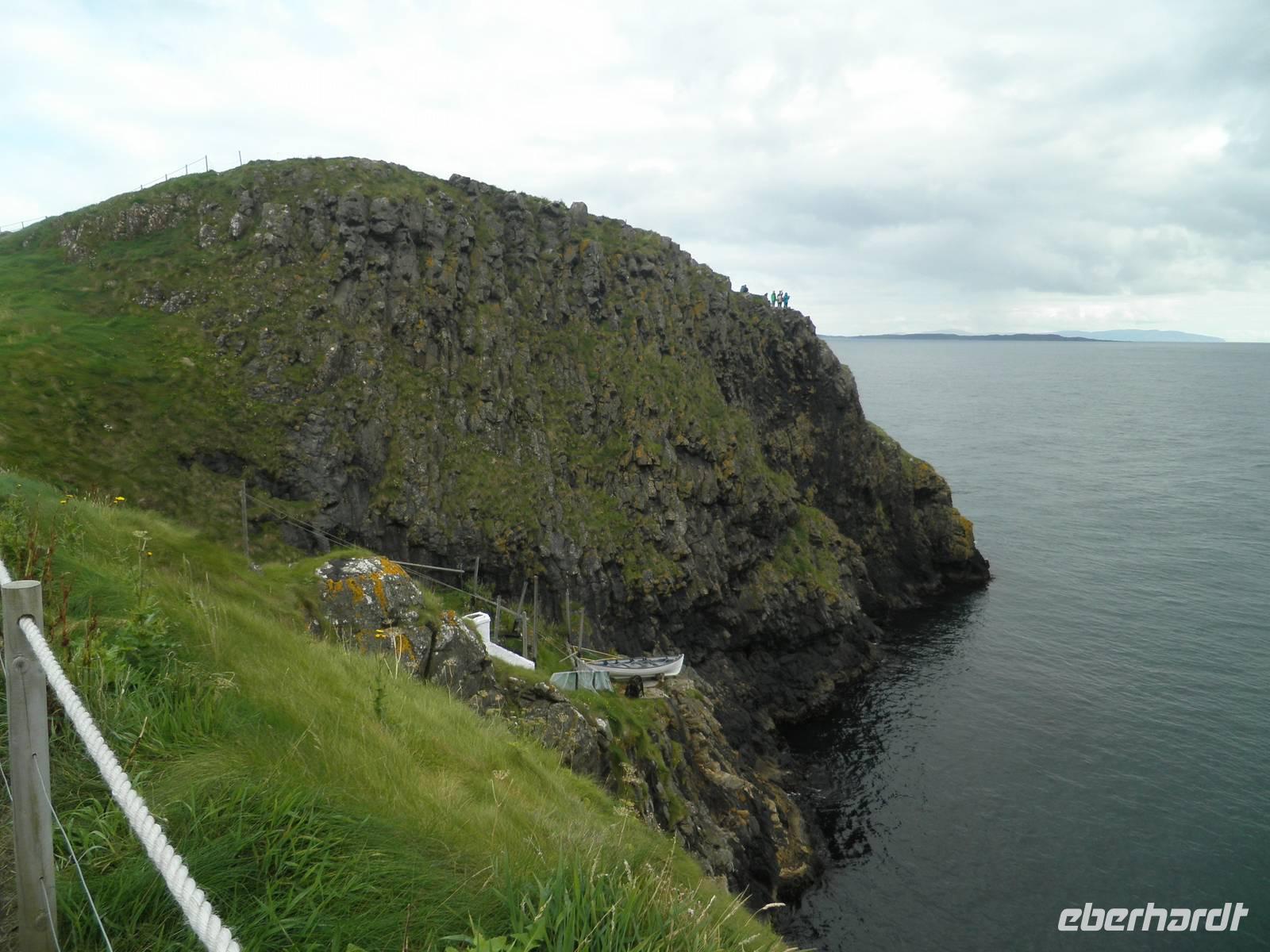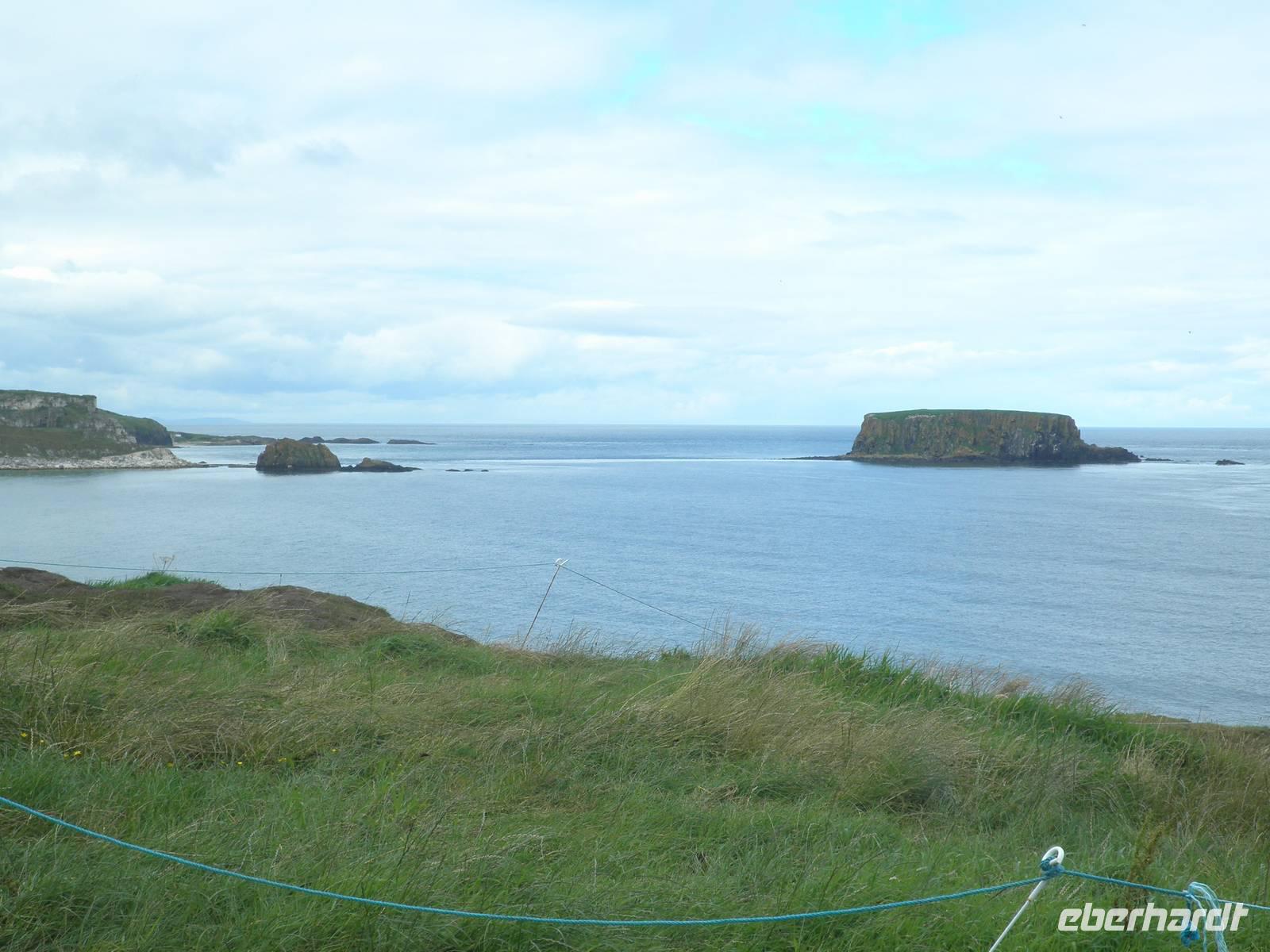 Dieser Tag stand ganz im Zeichen der herrlichen Küste von Nordirland. Das Wetter verwöhnte uns heute mit Sonne und damit mit einer tollen Aussicht und ab und zu gab es auch etwas Regen. Wir verließen Belfast am Morgen und fuhren entlang der romantischen Küstenstraße, die sich die Antrim Coast entlang schlängelt. Wir sahen malerische Buchten, schöne Fischerorte und graue Felsen, an denen sich die Brandung brach. In Carnlough machten wir Pause und genossen die Seeluft und die Armosphäre im kleinen Fischerhafen des Ortes. Nach kurzem Aufenthalt fuhren wir weiter nach Norden entlang der atemberaubenden Küste. Eine Herausforderung der besonderen Art ist eine schmale Seilbrücke, Carrick-a-Rede. Sie führt auf einen Felsen im Meer, man überquert schwankend einen 30 Meter tiefen Spalt über dem Wasser. Einige Gäste trauten sich und bezwangen diese 20 Meter lange schmale Hängebrücke und genossen herrliche Ausblicke auf die wunderschöne Küste. Nach weiterer kurzer Fahrt erreichten wir schließlich die wohl beeindruckendste Sehenswürdigkeit Nordirlands, die die Natur geschaffen hat: Giant's Causeway. Wir spazierten hinunter ans Meer und kletterten auf den unzähligen Basaltsäulen umher, die laut einer Legende der Riese Finn hier ins Meer geworfen hat, um einen trockenen Weg hinüber nach Schottland zu bauen. Doch sein schottischer Gegenspieler, der auch ein Riese war, hat bei seiner Flucht über den Causeway die Säulen hinter sich zerstört, so dass heute der Weg des Riesen einfach in den Fluten endet. Diese Legende ist unterhaltsam, aber tatsächlich hat erkaltende Lava diese Basaltsäulen geformt. Ihr besonderes Merkmal ist ihre Form, sie sind alle als 5-, 6- oder 8-Eck geformt, einige weisen sogar eine Höhe von bis zu 12 Metern auf. Nach diesem wirklich beeindruckenden Naturerlebnis fuhren wir nach Derry / Londonderry. Die besterhaltene Stadtmauer in Großbritannien lädt zu einem Spaziergang ein. Etwa eintausendfünfhundert Meter ist sie lang und so kann man eine ganze Runde auf ihr gehen und dabei die Altstadt erkunden. In der Stadt ist die jüngere Vergangenheit noch deutlich zu spüren. Am Eingang des Stadtteils Bogside gibt es verschiedene Wandgemälde, die u.a. an den sogenannten Blutsonntag am 30.01.1972 erinnern. An diesem Tag sind viele junge Menschen bei Unruhen ums Leben gekommen. "Free Derry" steht auf einem weißen Stein, der die irische Fahne trägt.