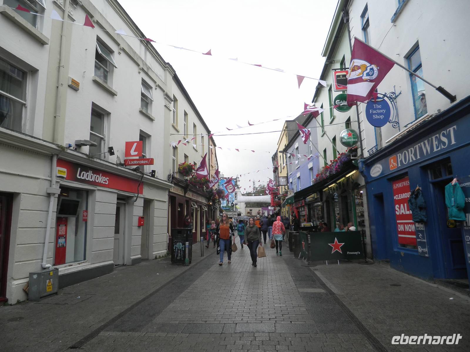 Nach dem Besuch der Stadt fuhren wir in unser Hotel nach Letterkenny, das sich schon auf dem Gebiet der Republik Irland befindet. Wir konnten wieder in Euro bezahlen und die Entfernungsangaben waren nun nicht mehr in Meilen, sondern in km. Dennoch erinnert noch viel an die Engländer: hier herrscht auch Linksverkehr und die Steckdosen sind nur mit dem entsprechenden Adapter auf das britische System zu benutzen.