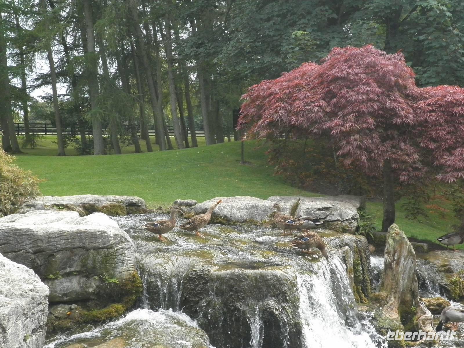 Wir verließen unser Hotel in Loughrea und kamen nach kurzer Fahrt nach Kilbeggan, wo sich die älteste lizensierte Whiskey-Destillery Irlands befindet. Bereits seit Mitte des 18. Jahrhunderts wird hier Whiskey gebrannt. Bei einer Führung konnten wir uns in die alten Zeiten der früheren Whiskeybrennerei hineinversetzen, aber wir erfuhren auch, wie heute Kilbeggan-Whiskey hergestellt wird. Am Ende der Führung konnten wir einen milden Whiskey probieren und zwei Gäste unserer Gruppe errieten, nur mit ihren Geruchs- und Geschmacksnerven, drei verschiedene Whiskeys. Weil sie beide auf Anhieb richtig lagen, bekam jeder von ihnen das Irische Whiskey-Tester - Diplom. Den nächsten Höhepunkt an diesem Tag stellte das Irische Nationalgestüt dar. Zunächst hatten wir Gelegenheit, den im Gestüt befindlichen Japanischen Garten zu erkunden. Er zeigt in Form von Pflanzen, Steinen und Wasser den Lauf des menschlichen Lebens. Einige nutzten die Zeit, um im Restaurant einen Imbiss einzunehmen. Auf der folgenden Führung durch das Gestüt erfuhren wir viel über die Zucht von Rennpferden hier, von der Geburt bis zum Gnadenbrot für in die Jahre gekommene Rennlegenden.