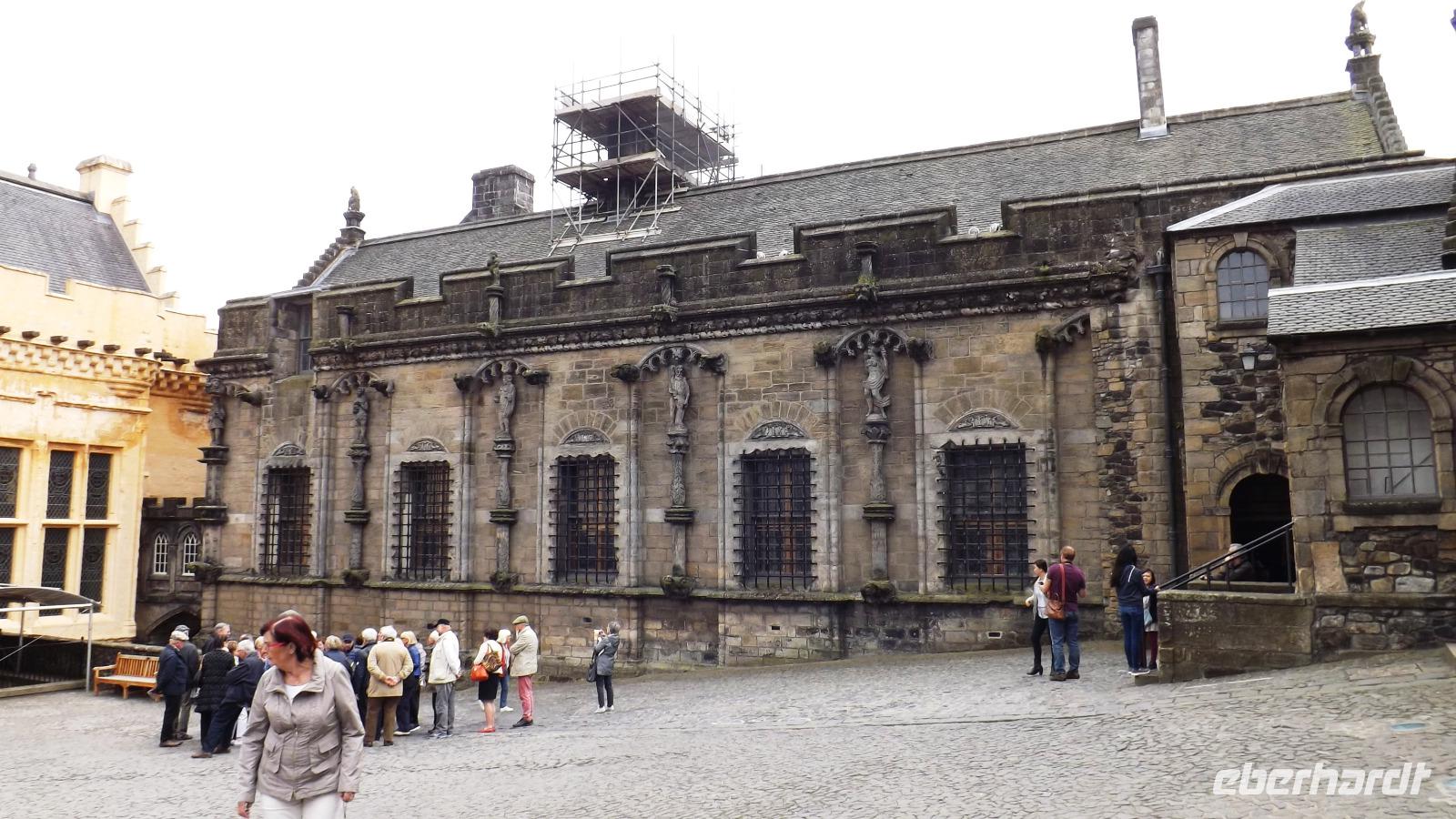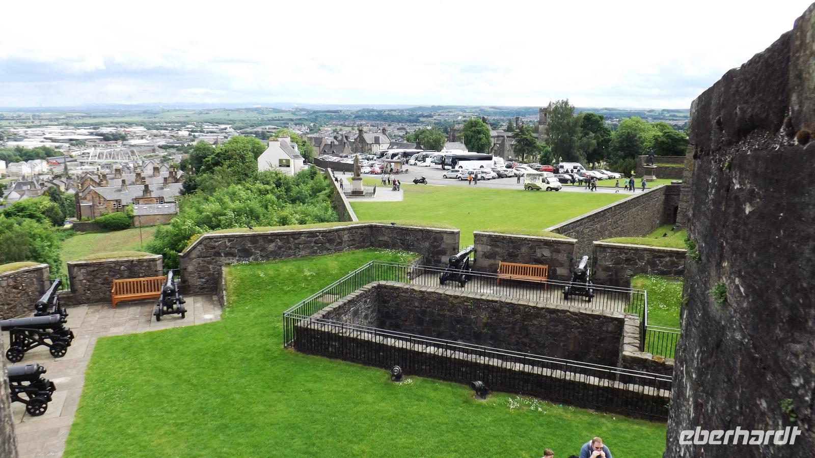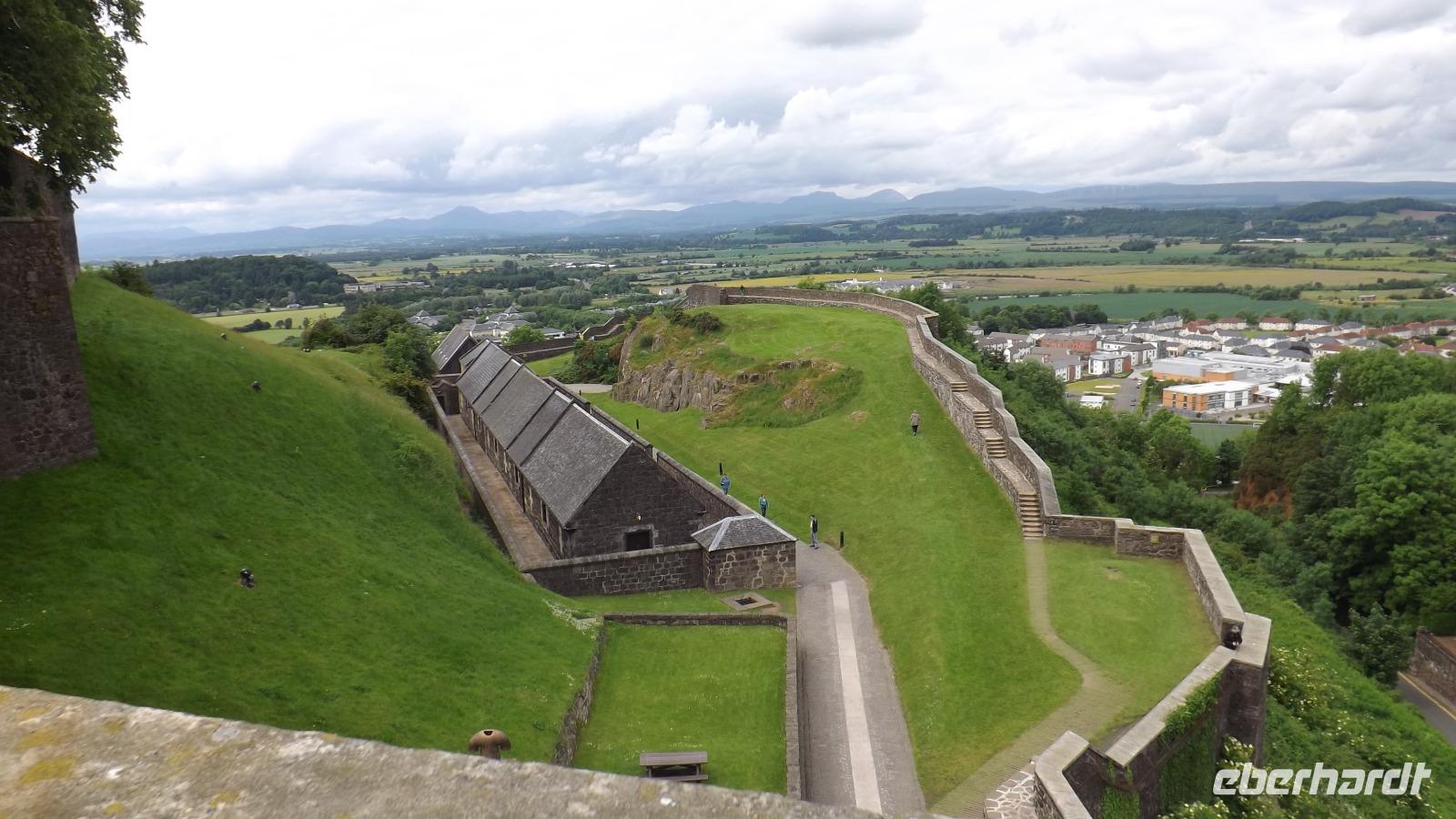 Nach einem Mittagsimbiß geht es weiter nach Stirling. Hier ist genügend Zeit, um ausgestattet mit einer Karte individuell das Castle, die Kirche und die Stadt selber zu erkunden. Das Stirling Castle scheint mit den dicken Mauern, gelegen auf einem Vulkanhügel uneinnehmbar, dennoch war es aufgrund seiner zentralen Lage heftigst umkämpft und wechselte gerade im 13. und 14. Jahrhundert immer wieder den Besitzer. Gegenüber dem Castle thront auf einer Anhöhe das Wallace Monument. 1297 eroberten die Schotten mit William Wallace in der Schlacht bei Stirling Bridge Stirling Castle. Am bekanntesten ist aber die Schlacht 1314 bei Bannockburn, in der Robert the Bruce England besiegte und bis 1333 Frieden für Stirling Castle herrschte.