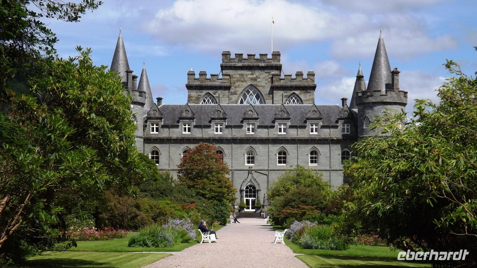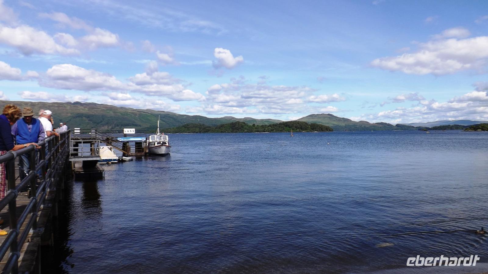 Unser nächster Stop ist in Tyndrum am Green Welly Shop, übrigens heißen Wellys hier die Gummistiefel, der Legende nach den Stiefeln General Wellingtons nachempfunden...Gegen Mittag erreichen wir dann Inverary. Die kleine Hafenstadt lädt zum Bummeln und Entdecken ein. Das Inverary Schloß wurde bis 1785 gebaut und ist bekannt für seine kostbare Innenausstattung. Mit dem Neubau des Schlosses wurde auch die Stadt neu gebaut, sie ist damit die erste Stadt Schottlands, die quasi am Reißbrett entstand. Weiter geht unsere Fahrt zum Loch Lomond. Er gilt als einer der schönsten Seen Schottlands. Bekannt wurde er auch durch das Loch Lomond -Lied „The Bonnie Banks of Loch Lomond" (die schönen Ufer des Loch Lomond). Der Text soll auf einen Brief zurückgehen, den ein Soldat an seine Geliebte Moira geschrieben hat. Er soll zum Gefolge Bonnie Prince Charles gehört haben und nach dem fehlgeschlagenen zweiten Jakobiteraufstand mit einem weiteren Soldat gefangen genommen worden sein. Einer wurde freigelassen, einer zum Tode verurteilt. Letzterer muß nun die Low Road- den Weg der Toten durch die Unterwelt gehen. Da unsere Technik im Bus streikt rufe ich die Melodie mit der letzten Zeile des Refrains in Erinnerung: on the bonnie bonnie banks of Loch Lomond...