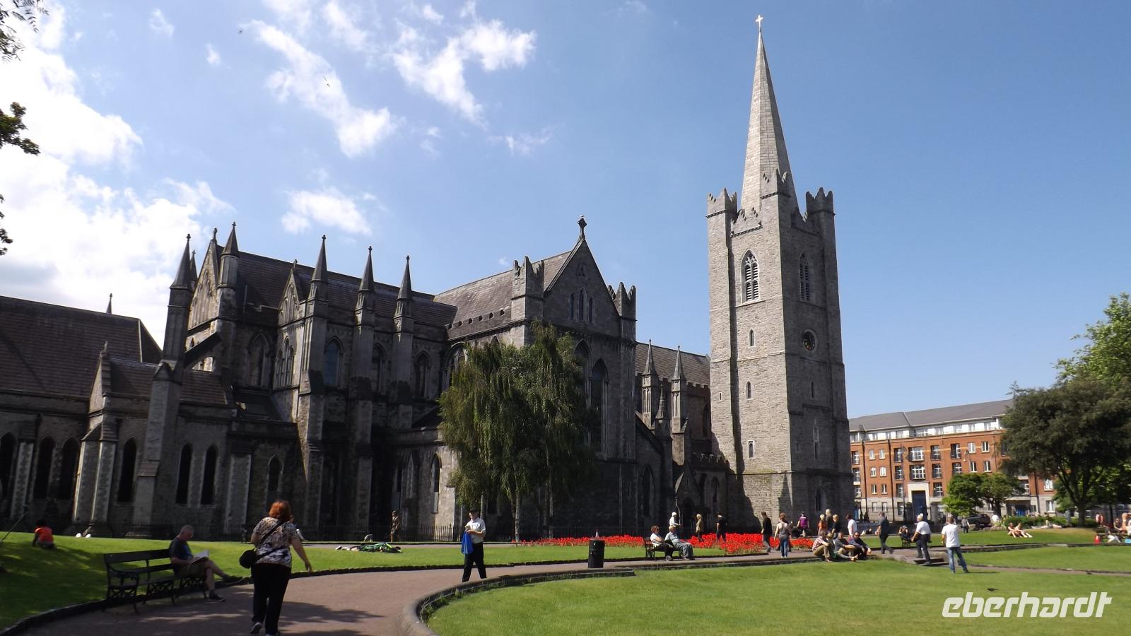 Heute brechen wir bereits 8 Uhr nach Dublin auf. Mit einem Zwischenstop in Ballycoolin erreichen wir Irlands Hauptsadt gegen 10:30 Uhr. Wir treffen uns mit Ann, unserer Stadtführerin in der Nassau Street. Sie verteilt auch Stadtpläne für alle und wir fahren los, sehen eine Protestaktion der Polizisten für höhere Löhne. Wir steigen aus am Giants Garden und besuchen das Denkmal für Oscar Wilde, auf dem Rückweg zum Bus sehen wir die bekannten bunt gestalteten Eingangstüren am Hedley Park, der nächste Spaziergang führt durch den Saint Patricks Park, wir erfahren viel über das soziale Engagement der Familie Guiness, besuchen den Park mit dem Victorian Kitchen Garden, und fahren zurück in die Stadt, hier ist ab 13:30 Uhr wieder Zeit für individuelle Entdeckungen wie z.B. das berühmte Book of Cells.