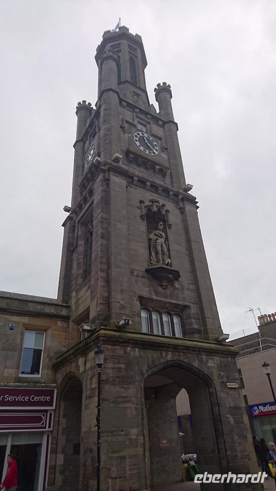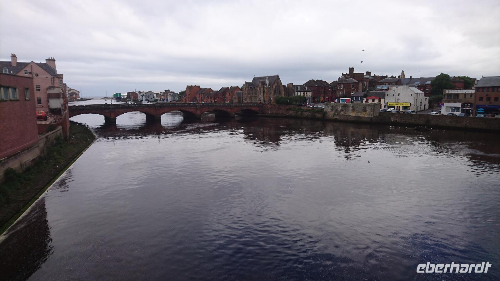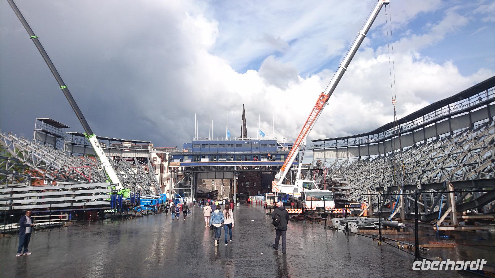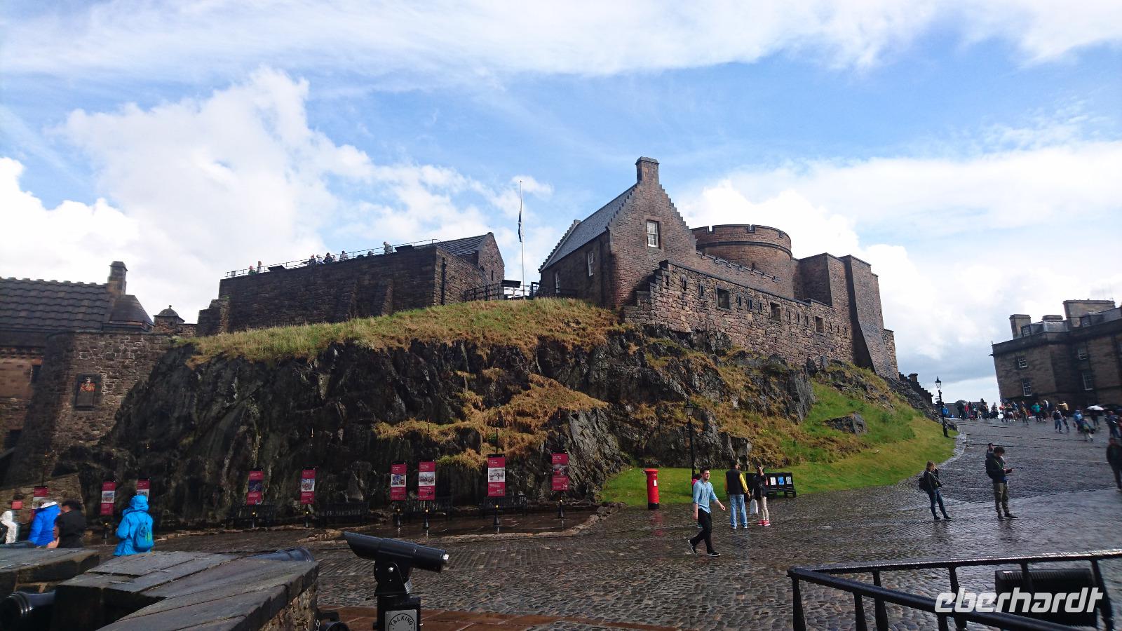 Am Morgen weckte man uns an Bord mit einem Rundruf und wir hatten noch genügend Zeit, um uns frisch geduscht das Frühstück schmecken zu lassen. Währenddessen legte die Fähre bereits im Fährhafen von Newcastle upon Tyne an. Wie mit Stefan besprochen, trafen wir uns auf Deck 8, stellten die Uhren um eine Stunde zurück auf englische Zeit, die uns nun die nächsten Tage begleiten sollte, und konnten dann recht schnell hinunter zur Passkontrolle. Das Vereinigte Königreich, noch EU-Mitglied und doch stets um seine Einreisenden bemüht, begrüßte uns mit Wind und etwas Regen und so störte es uns nicht, dass die Passformalitäten etwas länger dauerten. Thomas musste mit dem Bus auch noch warten und schließlich trafen wir doch alle am Fährterminal zusammen, konnten also nach den Klängen der Hymne des Vereinigten Königreiches und dem Schwenken der beiden hier gültigen Fahnen, der Union Jack und der Fahne Englands, unsere Reise gen Schottland beginnen. Stefan erzählte uns über die alten Römer, die von Newcastle bis hinüber nach Carlisle einst nach dem Antoniuswall weiter nördlich hier den Hadrianswall errichteten und bald erreichten wir den schottischen Grenzstein, wo uns der Borderpiper mit Dudelsack im Regen empfing. Von da ging es weiter nach Jedburgh. Im Schatten der Abbey-Ruine nahmen wir unseren Mittagsimbiss ein und starteten dann wieder gen Edinburgh. Am Nachmittag nahmen wir dort am Brooks-Hotel unsere Fluggäste auf, die schon am Vortag ankamen und die Stadt bereits auf eigene Faust erkundeten. Unsere Stadtführerin Majorie zeigte uns nun noch ganz andere Seiten ihrer Heimatstadt und brachte uns die Schotten mit Witz und guten Anekdoten näher, ehe wir das Castle besichtigten und nach diesen gewaltigen Eindrücken die Stadt per Bus verließen. Am Firth of Forth fuhren wir über die berühmte Road-Bridge, schauten vom Aussichtspunkt auch zur Railroad-Briodge und zur Baustelle der dritten, wohl noch 2017 oder 2018 fertigzustellenden neuen Straßenbrücke als wichtige Verbindung von Schottlands Hauptstadt in den Norden des Landes. Danach fuhren wir nach Livingston in unser Hotel und ließen dort den tag ausklingen.