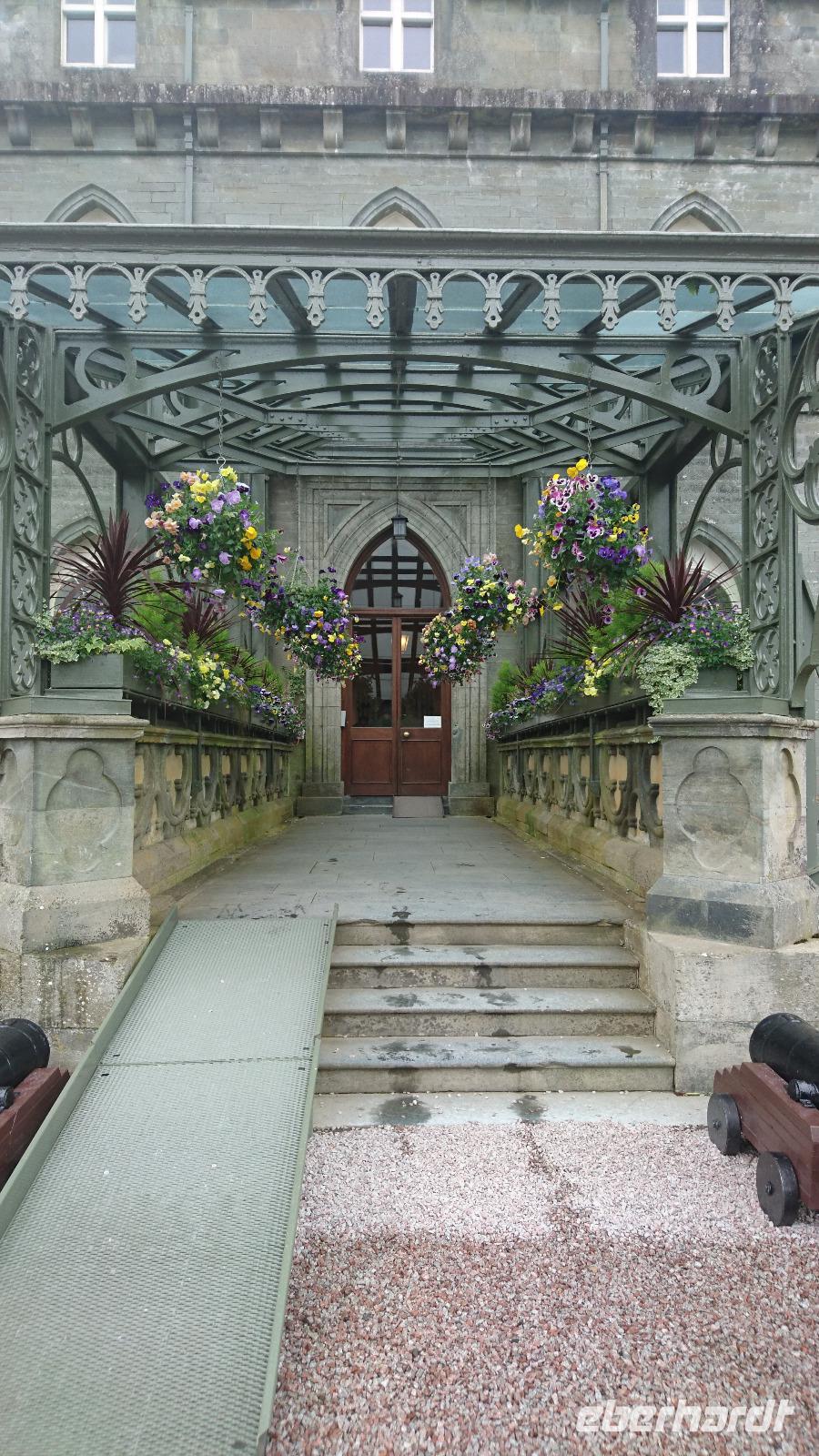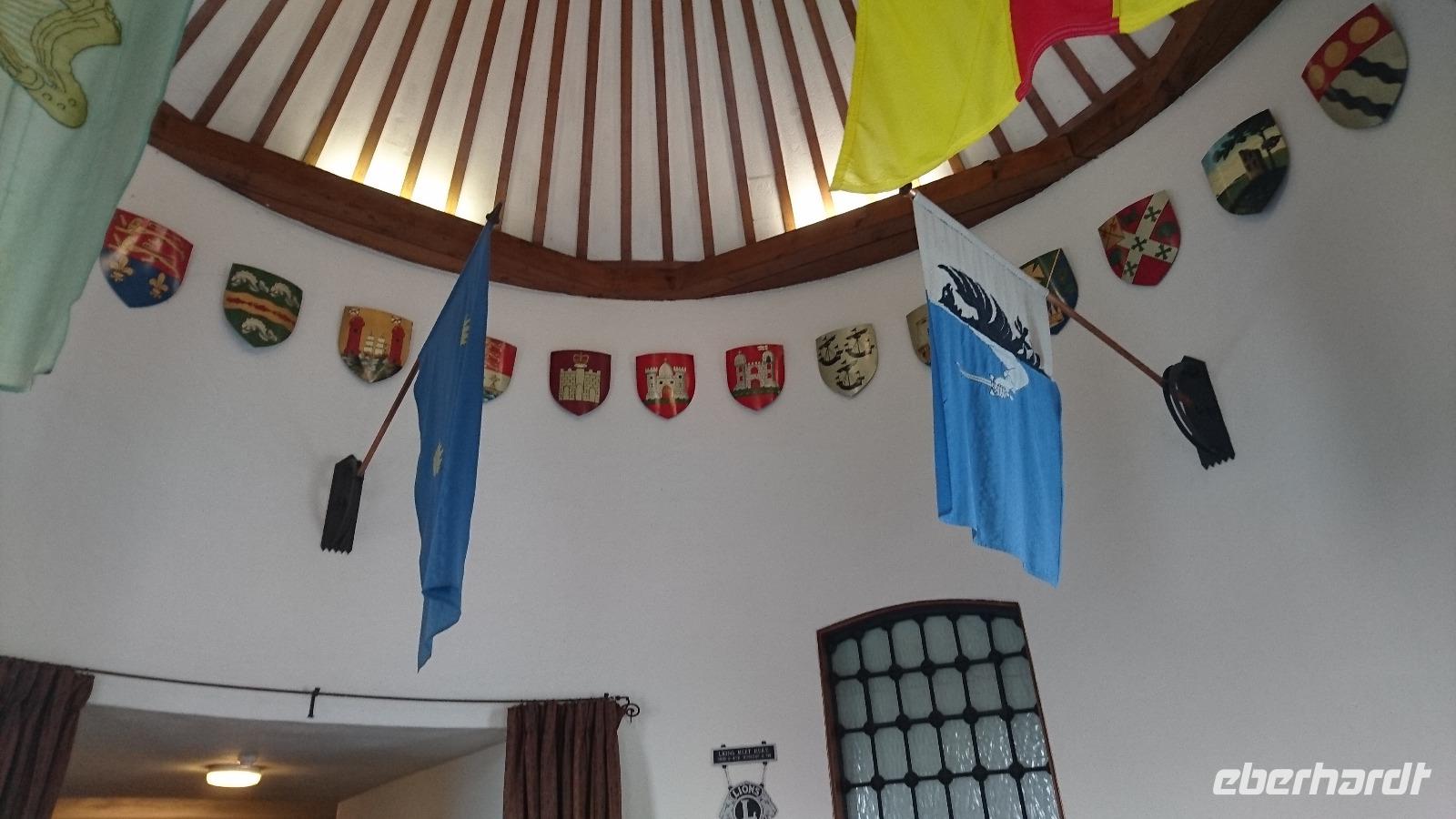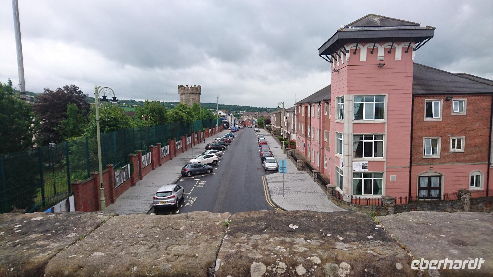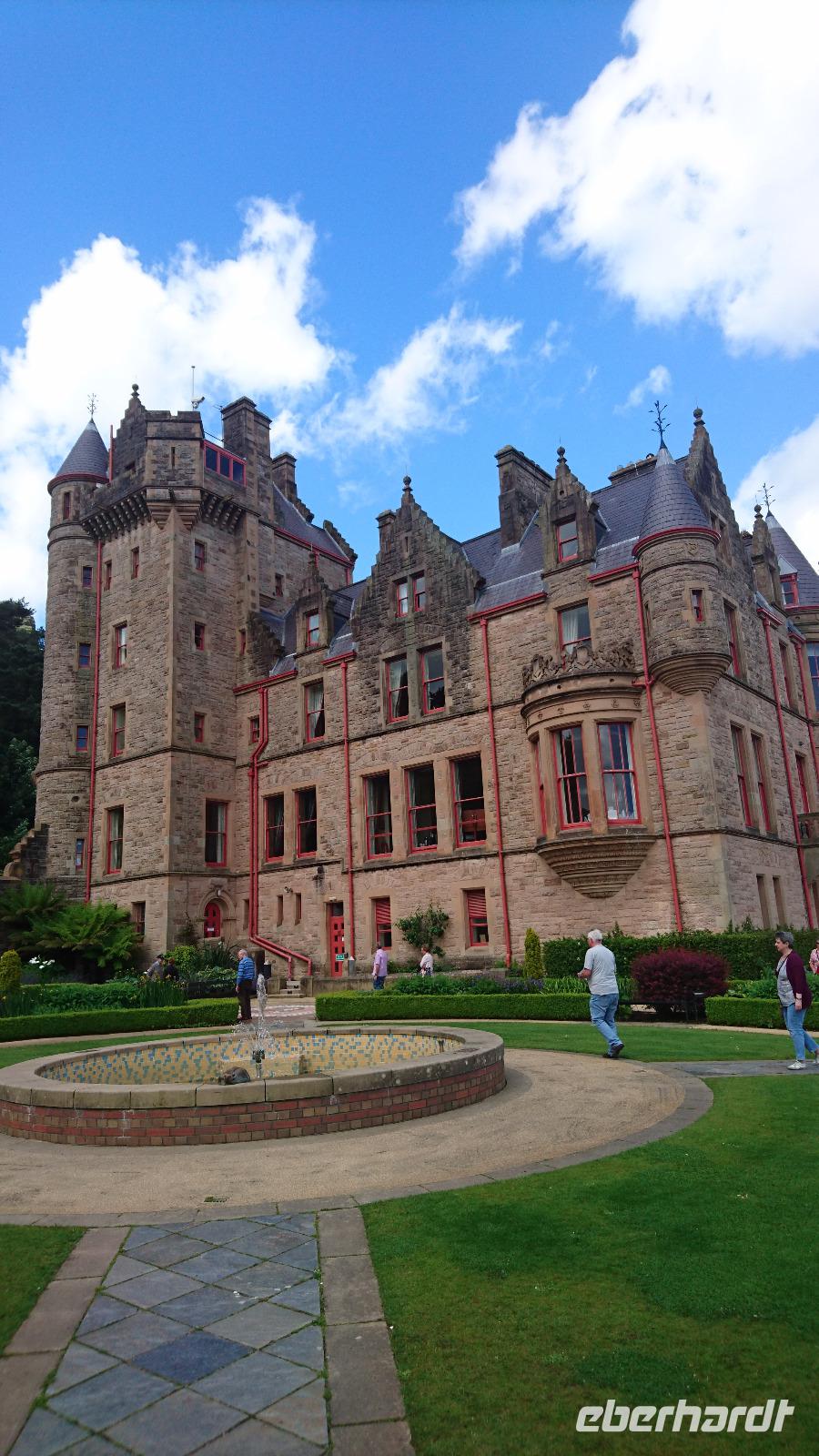 Am Vormittag, nach einem reichlichen Frühstück, starteten wir wieder mit Koffern im Bus gen Titanic Quarter. Der gesamte Vormittag und ein Stück Nachmittag sollten im Zeichen jenes Schiffes stehen, das einst Belfast in ordentlichem zustand verließ, jedoch an einem englischen Kapitän, einem schottischen Steuermann und einem kanadischen Eisberg, Ignoranz und falscher Hörigkeit scheiterte und schließlich auf den Meeresboden sank und viele Menschen mit in den kalten, nassen Tod nahm. Zuerst ging es zum Thompson Dock, welches heute wegen seiner einstigen Bestimmung natürlich nach der Titanic benannt ist. Hier erläuterte uns Chris, unser Titanic-Guide, übersetzt von Stefan, wie man das Dock baute, wie groß darin die Titanic war und warum man sie in ihrer Ausbauphase noch einmal aus dem Dock herausnehmen musste, ehe sie als zweites Schiff der drei Schwestern Olympic, Titanic und Britannic schließlich den Dienst aufnehmen konnte und nur 12 Tage später versank. Eine tragische, kaum nachvollziehbare Geschichte. Wir bekamen einen Eindruck von der Dimension des Schiffes und sahen ebenso, mit welch vergleichsweise kleinen pumpen das Dock binnen 1:40 h komplett leer gepumpt werden konnte, ehe wir uns bei Chris verabschiedeten und weiter zur 2012, also zum 100. Jahrestag der Fertigstellung und des Untergangs der Titanic eröffneten Titanic-Belfast-Exhibition fuhren. Hier bekamen wir genügend Zeit und Audio-Guides, um uns die Geschichte des Belfaster Schiffbaus und der Katastrophe anzuschauen. Ein Muss für Film- und Seefahrt-Fans schlechthin. Für die daheim Gebliebenen gab es tolle Souvenirs und für das leibliche Wohl sorgten zwei Versorgungseinheiten im Museumsbau. Danach fuhren wir weiter zur City Hall, wo wir auf unsere Stadtführerin trafen. Nach einem Besuch des Rathauses und des daneben befindlichen Titanic-Denkmales, einigen Minuten des Zuhörens bei einer Spenden-Musik-Veranstaltung am Rathaus und einigen ersten Eindrücken von er Innenstadt ging es nun auf Stadtrundfahrt, dabei auch zum Parlament und zum Belfaster Castle, dem bekannten Katzenschloss. Wir sahen ebenso die Mauern in der Stadt, Symbol der Klüfte zwischen Katholiken und Protestanten, zwischen Republikanern und Royalisten in dieser Stadt. Ein Zustand, den man sich besonders nach knapp 40 Jahren der Teilung in Deutschland kaum richtig vorstellen kann. Bunte Bilder sollten beruhigen, doch Stacheldraht und heute immer noch hin und wieder zu schließende Tore ließen tiefer blicken. Mit all diesen Eindrücken verließen wir nach der Verabschiedung unserer Stadtführerin Belfast und fuhren noch nach Carrickfergus, welches inkl. des Titels eines Barons Queen Elisabeth ihrem Enkel William zur Hochzeit schenkte. Leider fand auf dem großen Castle-Parkplatz ein Frühjahrsfest statt und so konnten wir nur einen kurzen Blick im Vorbeifahren auf die alte Normannenburg des Ortes an der irischen See werfen, ehe wir nach Dunadry abbogen, wo wir in dieser Nacht in einem einer Burg nachempfundenen Hotel übernachten wollten.