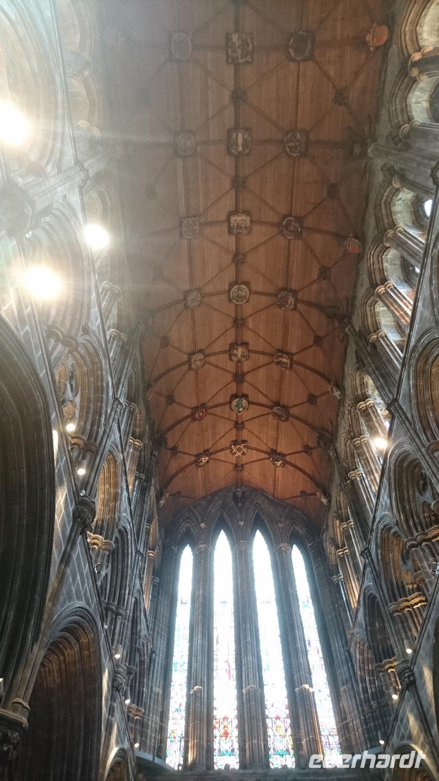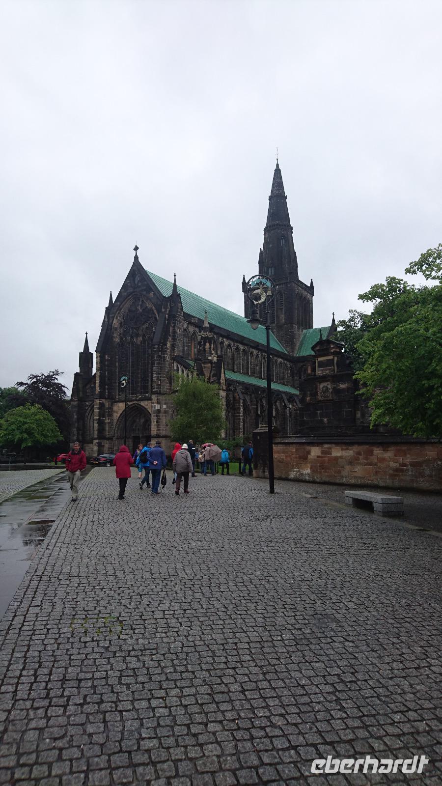 Die Campbells waren in unseren Augen einst die Bösen. Trotzdem und zum Glück gibt es beide Clans heute noch und trotz vieler Anfeindungen, auch Verboten einzelner MacDonalds, die Pubs oder Hotels betreiben, Campbells einzulassen, sind die Campbells heute noch ein sehr mächtiger Clan und Großgrundbesitzer besonders in der Grafschaft Argyll. Unser Weg führte heute an der Ruine des Kilchum Castle am Loch Awe vorbei zum Sitz des Earl of Argyll, des Duke of Inveraray, direkt zu Inveraray Castle. Ein Fotostopp war hier interessant und doch sahen wir dabei die einstigen Taten der Campbells im Glen Coe und fuhren bald wieder ab, schauten später noch einmal über den Argyll Forrest in ein herrliches tal am Beginn des Nationalpaks rund um den Loch Lomond und erreichten dann den berühmten See Loch Lomond, den uns Stefan besang und wo heute in Tarbet ein ehemals schwarz gebrannter Whisky der See-Inseln offiziell und legal hergestellt uns in alle Welt versandt wird. Wir machten Station in Luss, sahen auf den See und fuhren später weiter nach Glasgow, wo uns Stefan das vom einstigen Reichtum der Stadt berichtende Rathaus zeigte, wir etwas Freizeit hatten und dann unsere Stadtführerin trafen, die uns die Innenstadt und die Kathedrale zeigte und viele interessante Begebenheiten rund um die Glasgower und ihren Schutzheiligen St. Mungo berichtete. Später verließen wir dann Glasgow und fuhren nach Larkhall in unser schönes Übernachtungshotel, in dem heute eine Feier von schottischen Jugendlichen stattfand, wobei die jungen Männer alle zünftig traditionell in Kilt gekleidet auftraten. Da schmeckte das Abendessen noch einmal so gut!