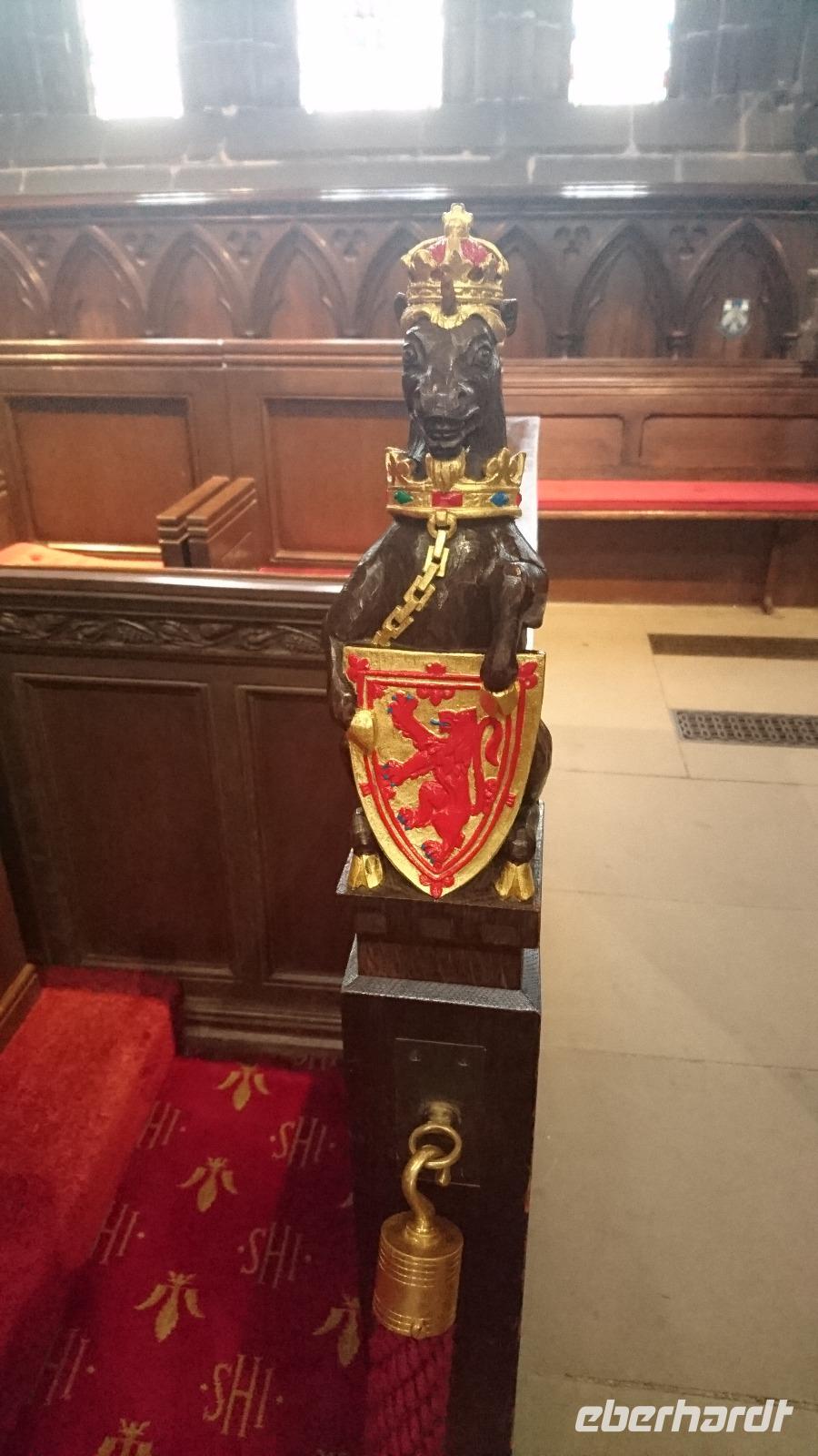 Schiffshebewerke gibt es viele. Heute jedoch sollten wir ein ganz besonderes und modernes dieser Art kennenlernen. Queen Elisabeth eröffnete es 2002 und seither testet man an dieser neuen Bauform, ob man solch ein Bauwerk auch für weitaus größere Schiffe einsetzen kann. Wir sahen dabei nicht nur, wie es sich drehte, sondern fuhren in einem kleinen Ausflugsboot selbst mit. Das war spannend! Dabei ging es nach der Hebung sogar durch einen tunnel und damit direkt unter dem alten Antoniuswall und dem ehemaligen Standort eines alten römischen Castle hindurch. Später sollte das nächste Castle jüngerem Ursprungs, aber doch alt sein. Wir fuhren nach Stirling Castle. Vor dessen Eingang steht nicht nur eine Statue von Robert de Bruce, jenem Herrscher, der im Film Braveheart eine wichtige Rolle spielt, sondern am Fuße des Burgberges entdeckten wir mit Stefans Hilfe auch noch die Skulptur von Rob Roy, dem berüchtigten und mit Robin Hood zu vergleichenden Räuber der schottischen Wälder. Im aktuellen Film wird er viel größer und stärker dargestellt, als er als Skulptur wirkte. Egal. Trotzdem interessant. Die Schlossbesichtigung in Stirling war sehr interessant. Der Regen störte uns heute nicht, denn wir konnten die große Halle, die Schlossküche, das Tapetenmuseum und Vieles darüber hinaus sehen. Dann ging es per Bus gen Norden in die Highlands. Nethybridge, wo wir in dieser Nacht wohnen wollten, liegt direkt am Cairngorms National Park und so konnten wir bereits auf der fahrt viele Schönheiten der Highlands und der besonders geschützten Region sehen, ehe wir ankamen und nach dem Abendessen wieder Kraft für den nächsten Tag tankten.