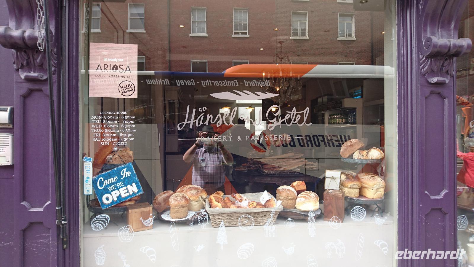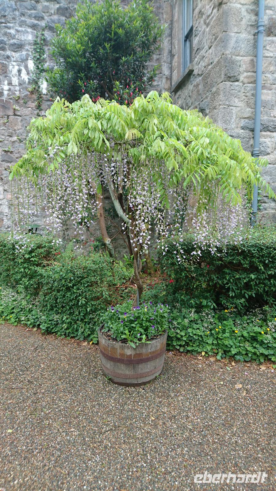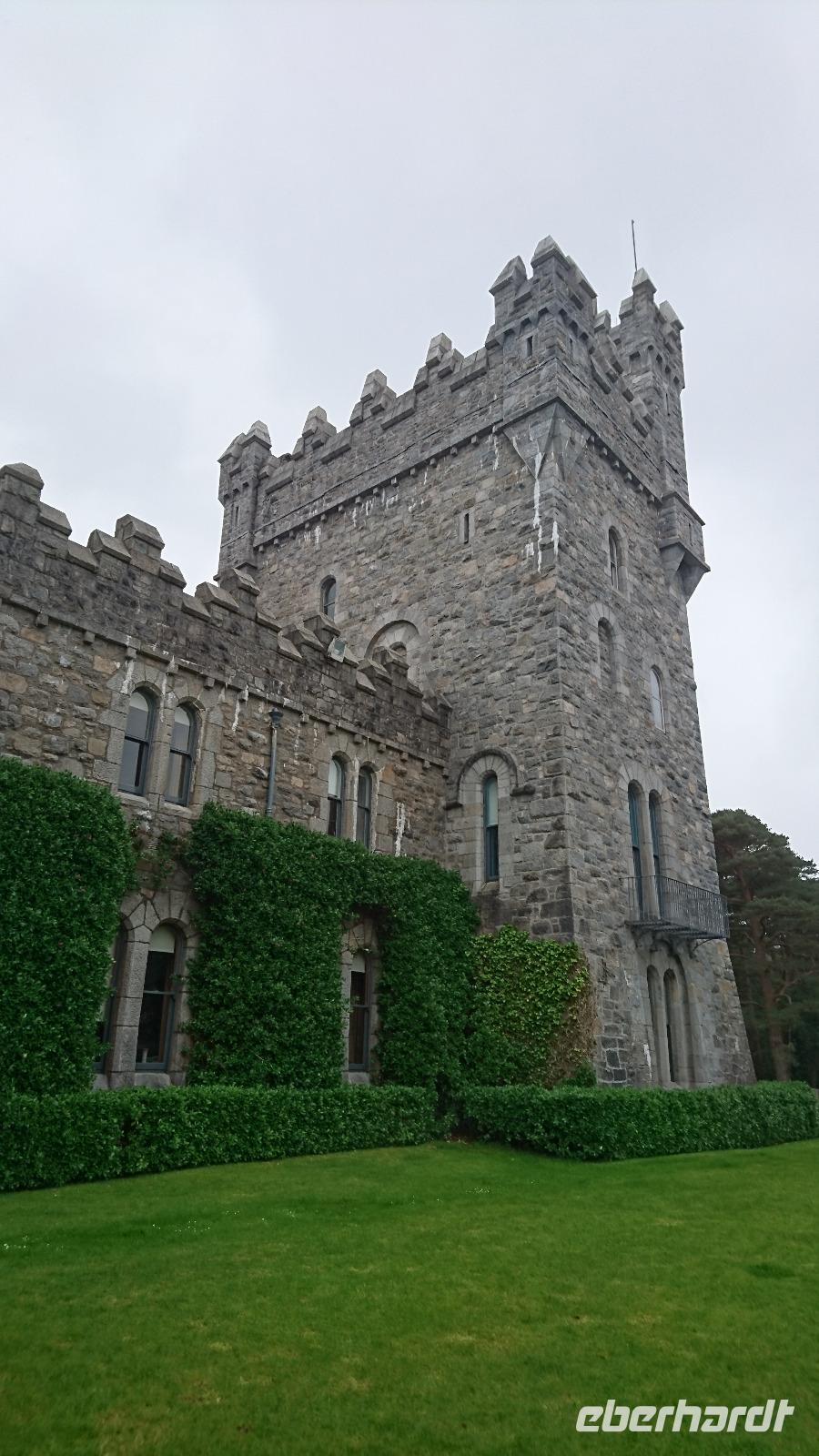 Land war und ist stets ein Spekulationsobjekt. Ein Herr Adair übertrieb es einmal und kaufte das Gebiet rund um Glenveagh, um sich ein Jagdrevier zu schaffen. Dazu vertrieb er über 200 Farmer, die daraufhin heimatlos wurden. Kein guter Einstieg als neuer Landbesitzer. Er fasste hier auch keinen wirklichen Fuß und lebte bis zu seinem Tode mit seiner Frau eher in den USA. Sie kam jedoch anschließend nach Glenveagh, verlegte ihren Hauptwohnsitz dahin und entwickelte den Ort zu einem Besuchermagnet, tat viel Gutes für die Region und machte Glenveagh mit seinem einzigartigen, unter ihrer Leitung erweiterten Castle zu einem anerkannten Ort. Als sie über dreißig Jahre nach ihrem Mann starb, verkam der Besitz etwas, weil Revolutionstruppen darin hausten und man sich damals in der jungen Republik nicht wirklich mit herrschaftlichem Besitz beschäftigte. Die kommenden beiden Besitzer bauten den Ort der Kunst und Kultur, des Genusses und der rauschenden feste weiter aus. Einer von ihnen, für mich als Kriminalautor stets interessant, verschwand später bei einem Inselbesuch an der Westküste ungeklärt und ungefunden für immer. Der letzte der insgesamt drei Besitzer verkaufte erst das Gebiet an die irische Republik, später verschenkte er das Schloss ebenso an sie. All das hörten wir neben vielen schönen Bildern und weiteren Informationen in einem Einführungsfilm im Visitor-Centers des Parks, ehe wir am Vormittag mit Shuttlebussen zum Schloss und der schönen Park- und Gartenanlage fuhren. Stefan führte uns durch das Schloss, wir standen am Gästebett von Greta Garbo, sahen Torfbriketts und erfuhren, wie sich geschminkte Damen früher vor heißem Kaminfeuer schützten. Später erkundeten wir auf eigene Faust den Garten in den Mauern und den Park und aßen im Besucherzentrum noch etwas zum Mittag. Danach startete wieder eine Überland-Fahrt, diesmal durch irisch-nordirische Gegenden nach Enniskillen in Nordirland. Wieder ging es ohne einen wirklichen Hinweis über die Grenze und wir schlenderten dann durch die Stadt, saßen am Fluss, aßen Eis und genossen den tag, ehe wir später wieder in die Republik und nach Ballyconnell in unser tolles Golf-Übernachtungshotel fuhren. Es war wieder ein ereignisreicher Tag.