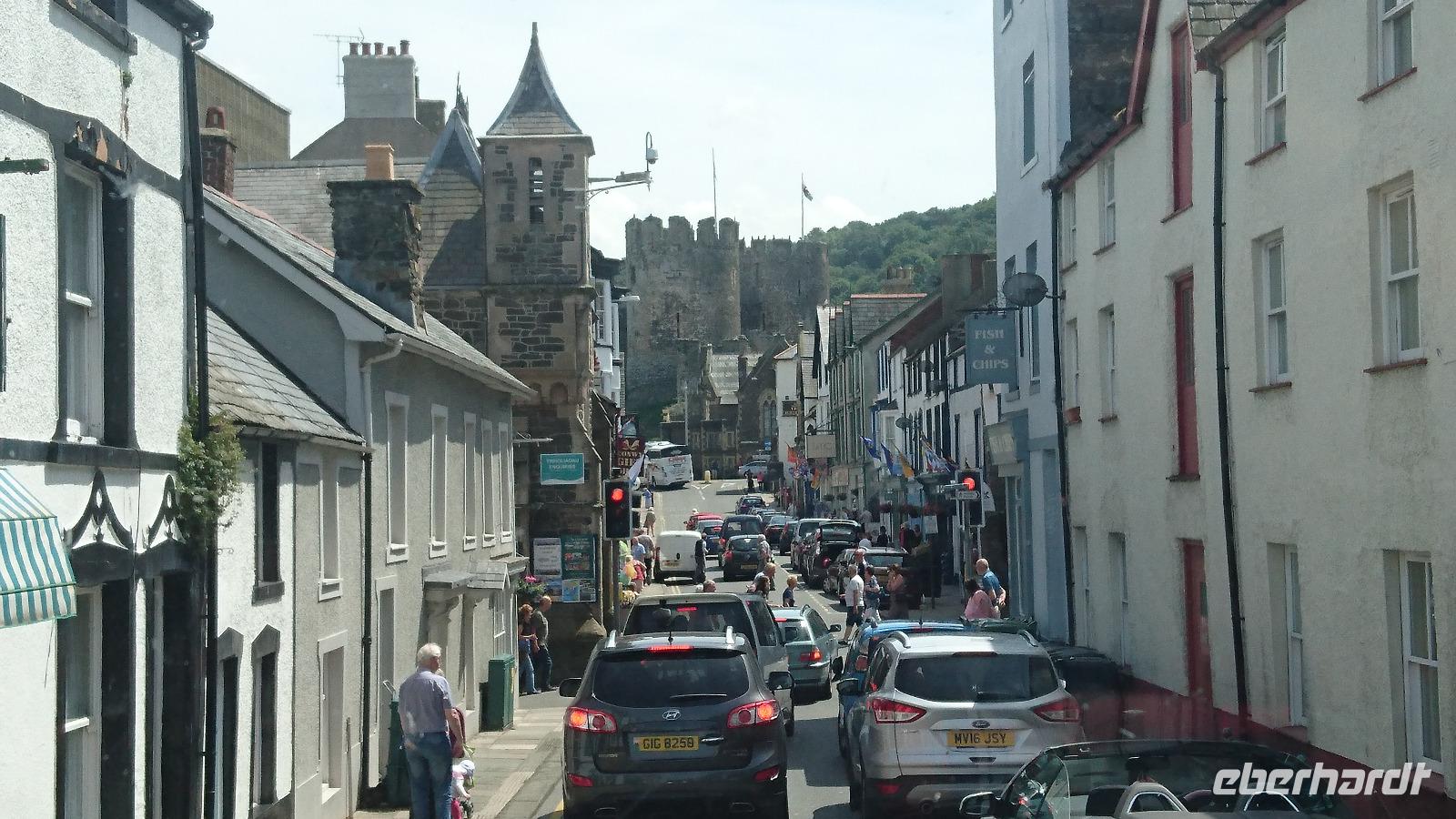 Recht früh, um die morgendliche Fähre nach Wales zu erreichen, verließen die Busgäste mit Thomas und Stefan das Hotel und fuhren in den Dubliner Fährhafen. Die Fluggäste wurden später mit einem Transfer abgeholt und zum Flughafen gebracht. Die Fährüberfahrt nach Holyhead verlief prima, das Schiff war angenehm leer und der Seegang unbedeutend. Gegen Mittag landeten wir in Wales und fuhren von dort in den Ort mit dem längsten Namen, nach Llanfairpwllgwyngyllgogerychwyrndrobwllllantysiliogogogoch oder dem Ort mit der Marienkirche in einer Mulde weißer Haseln in der Nähe des schnellen Wirbels und der Thysiliokirche bei der roten Höhle. Hier machten wir Foto- und Shopping-Station, fuhren dann später weiter zur Menai-Bridge, wo wir unseren Mittags-Imbiss verzehrten. Dann hieß es, viele Kilometer schnell zu durchfahren, denn am Nachmittag wollten wir schon in Kingston upon Hull die Fähre erreichen. Kaum ein kleiner Stau vorbei an Manchester und Leeds konnte uns aufhalten und so kamen wir nach der Vorbeifahrt an der gigantischen Humber Bridge bei Hull pünktlich im Fährhafen von Hull an. Der Check-in-Vorgang ist hier etwas schlecht organisiert, aber wir vertrieben uns die Wartezeit mit Gesprächen und bald konnten wir die Fähre besteigen, später unser Abendessen einnehmen und die Amüsements an Bord genießen, ehe wir uns zur Nachtruhe in unseren funktionellen Kabinen betteten.