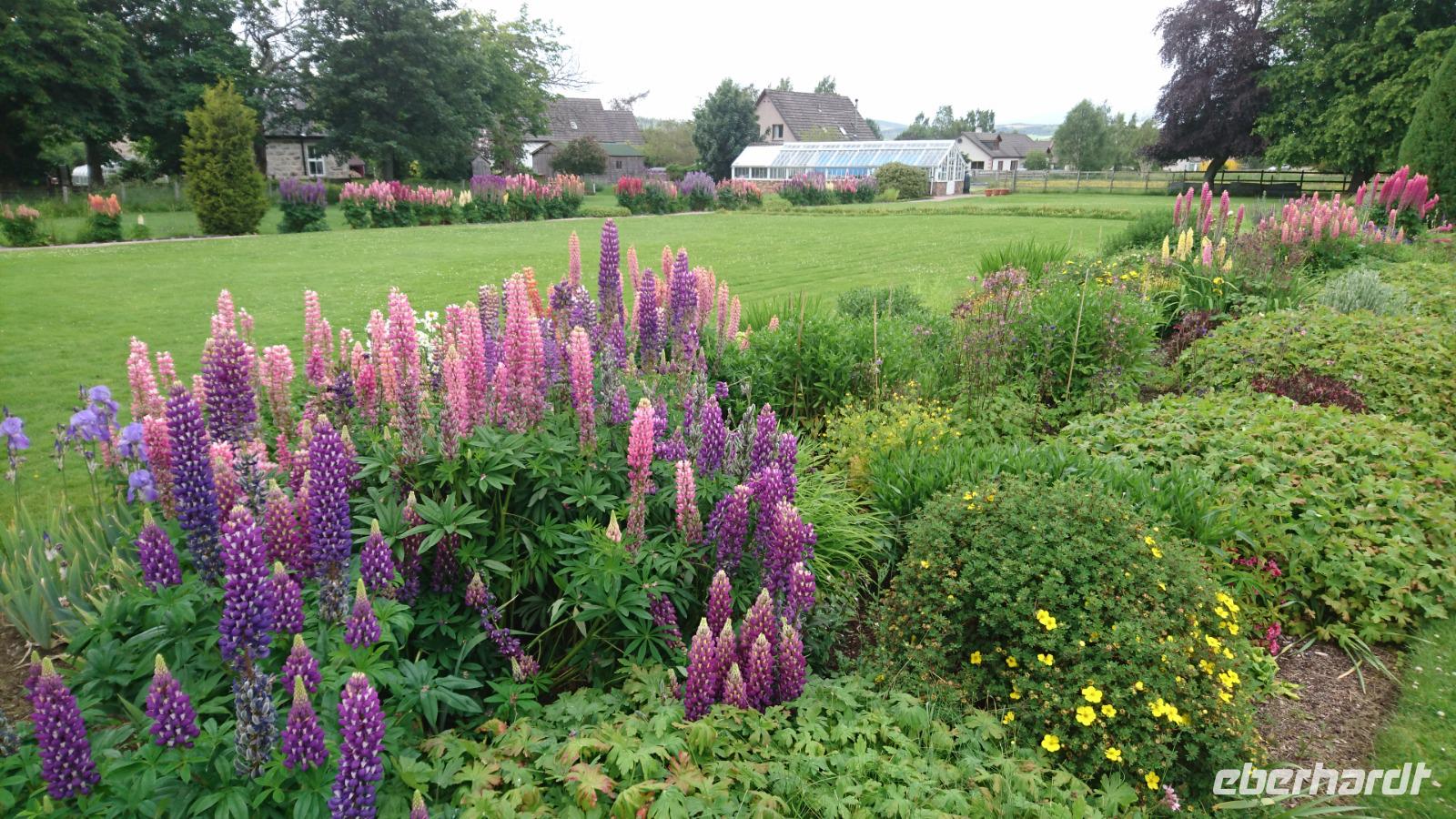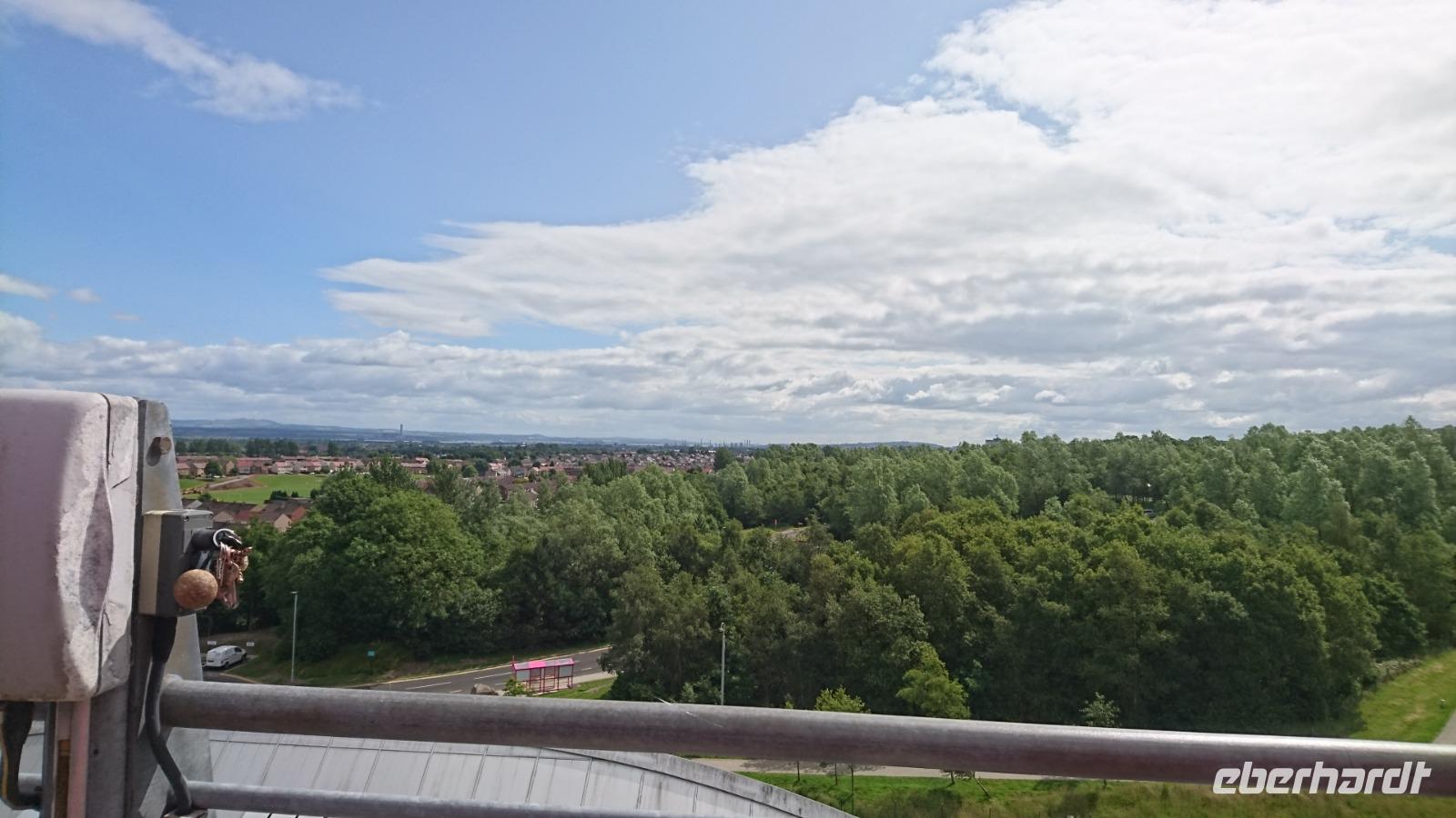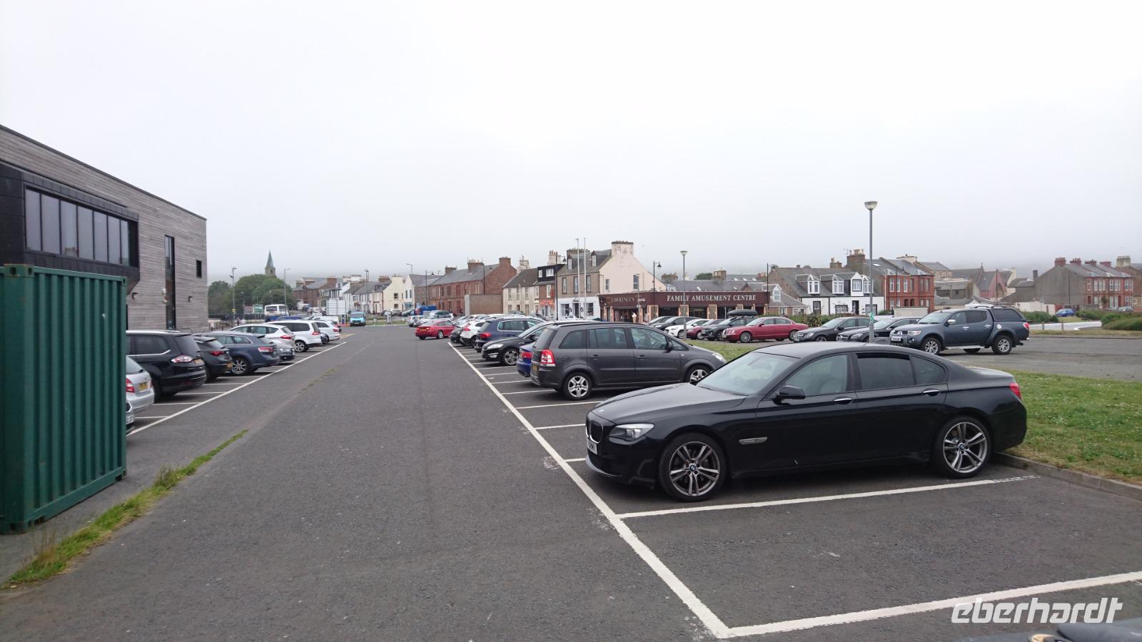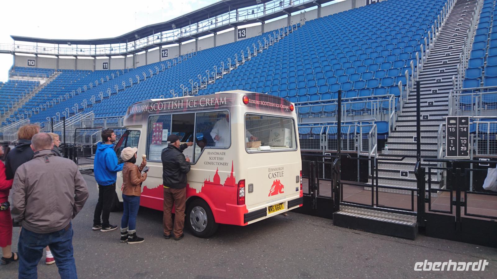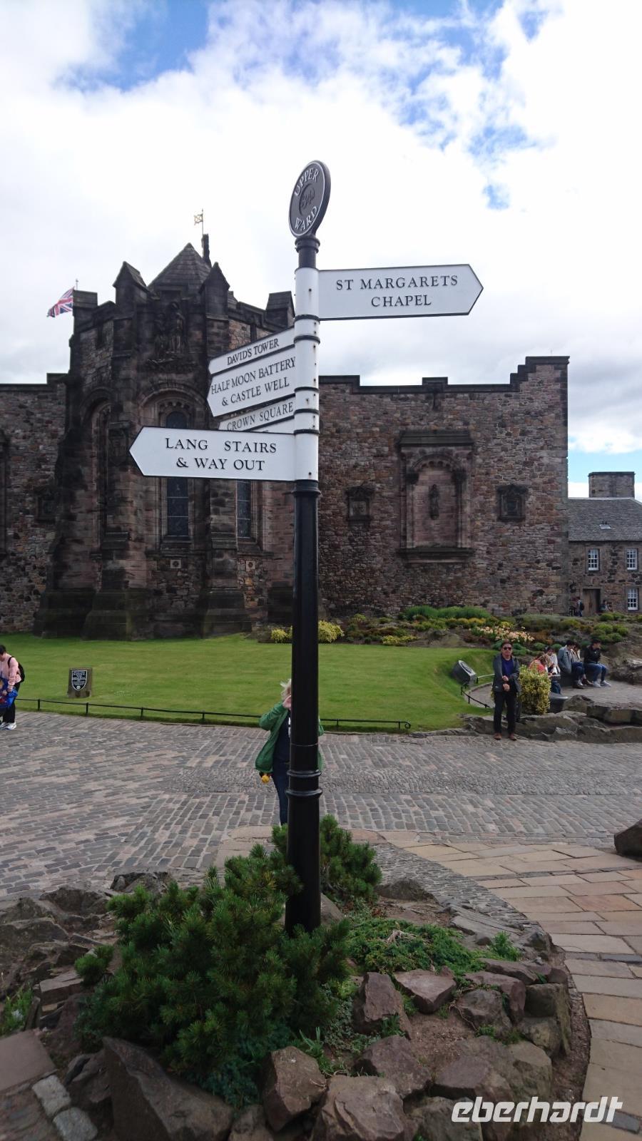 Ein ausgiebiges Frühstück nach dem Wecken stärkte uns an Bord der Fähre kurz vor der Landung in Newcastle upon Tyne. Wir tragen uns alle auf Deck 8, wo nach Stefans Erfahrungen noch so viel los war, wir also in Rhe auf die letzten Anlegemanöver und dann auch an die Kommandos zum Ausschiffen warten konnten. Bald war es soweit und wir betraten das Terminal der DFDS in Newcastle, erlebten eine recht schnelle und nette Ausweiskontrolle, hoben bei Bedarf noch Geld vom ersten britischen Automaten im Terminal ab und trafen bereits vor dem Terminal auf Holger und unseren Bus. Nach dem Verstauen unseres Fährgepäcks saßen wir bald auf unseren Plätzen und ab ging die Fahrt unter dem Klang der britischen Nationalhymne und dem Schwenken der britischen und englischen Fahnen, die Stefan mitgebracht hatte. Gleich bewunderten wir, wie sicher und versiert Holger auf der für uns falschen Seite der Straße fuhr, doch er meinte nur trocken, dass das hier alle so tun, also fällt es auch nicht schwer. Dann ging es durch Newcastle hindurch und in Richtung englisch-schottische Grenze, die wir nach einiger Zeit erreichten. Hier stimmte uns die schottische Fahne, die geheime Hymne der Schotten und vor allem auch ein Dudelsackspieler am Grenzstein zwischen den beiden Königreichen auf unser erstes wichtiges Reisegebiet ein. Kurz darauf erreichten wir unter vielen Erklärungen zur schottisch-englischen Geschichte und Gegenwart, die Grenzstadt Jedburgh, genossen hier unsere Mittagswürstchen und nutzten den Moment, um die Ruine der alten Grenzkathedrale von Jedburgh zu fotografieren, ehe wir weiter gen Hauptstadt rollten und recht pünktlich unser Hotel in Edinburgh erreichten. Hier warteten bereits unsere Fluggäste, die wir herzlich an Bord unseres Busses begrüßten, sowie unser Stadtführer Peter. Gleich von hier starteten wir zu einer Fahrt durch die schottische Hauptstadt, sahen dabei die Neustadt, die zugemauerten Fenster, die vielen Parks, die königlichen Palast und schließlich auch das Castle, bei dem wir ausstiegen und es dann zu Fuß besichtigten, natürlich eingestimmt von Peter und Stefan. Unsere Stadtführung endete hier, doch unsere Freizeit begann und so nutzten wir die Zeit in der Stadt, ehe wir uns wieder unterhalb des Castle trafen, gemeinsam zum Hotel fuhren, dort eincheckten und später zu Abend aßen, ehe wir uns mit etwas Schlaf fit für kommende Ereignisse machten.