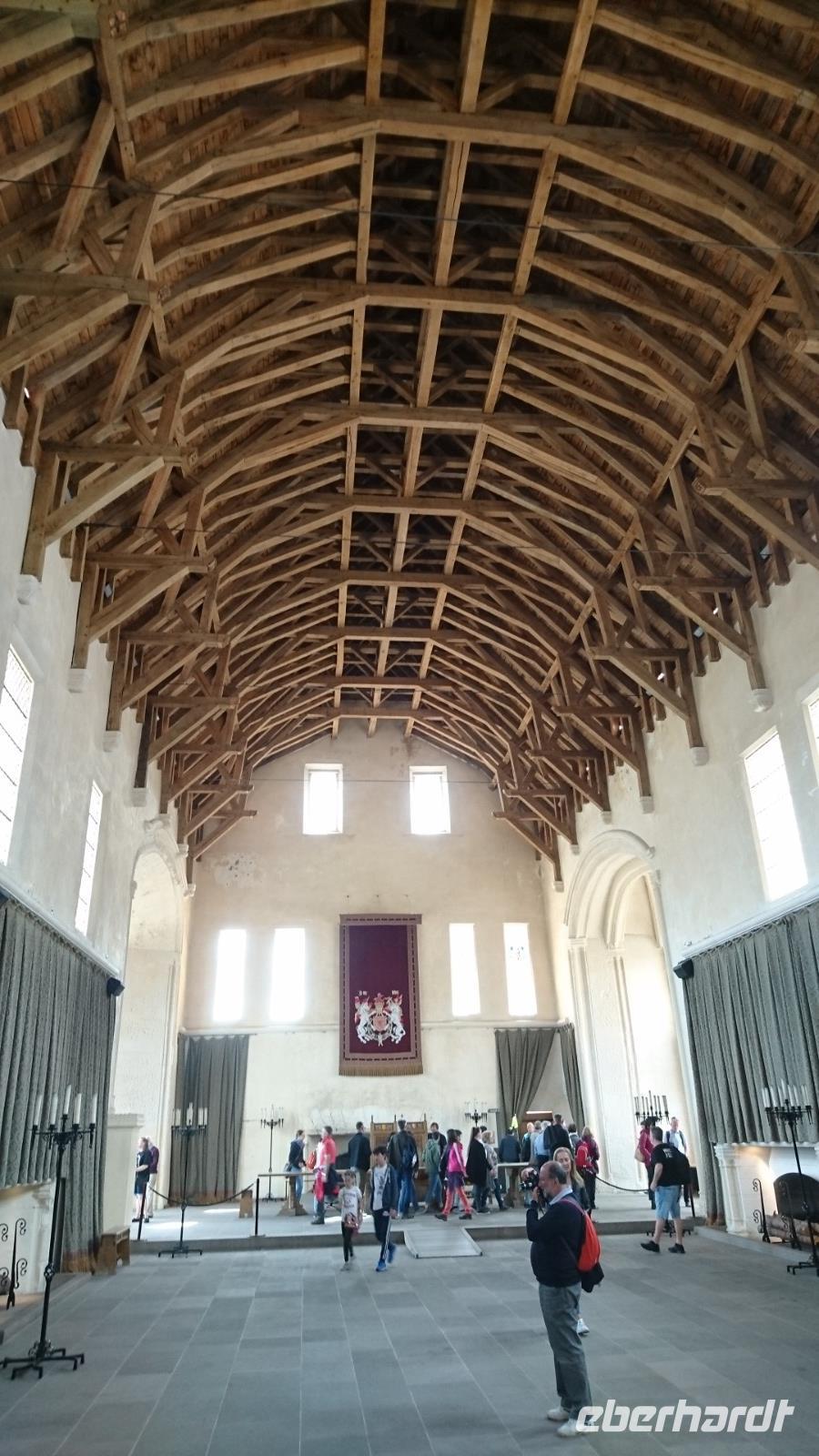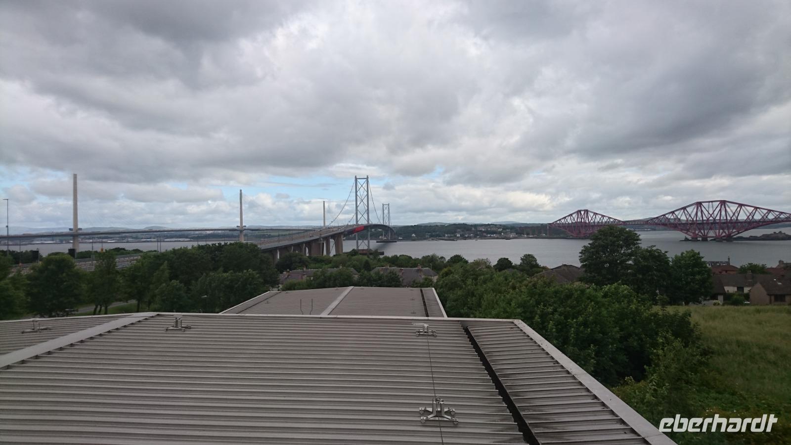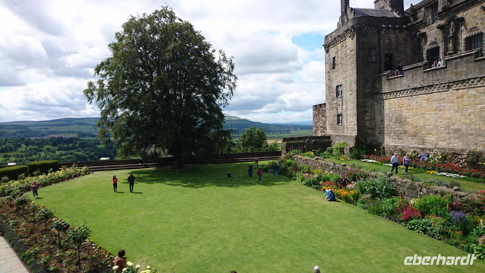 Nach dem Frühstück im Hotelrestaurant hieß es, Koffer zum Bus bringen, denn heute verließen wir Edinburgh. Stefan führte uns, von Holger gesteuert, zu den Brücken über den River Forth, deren tolles Aussehen und die gigantischen Spannweiten uns begeisterten. Dann ging es zu einem weiteren ingenieurtechnischen Highlight. Wir kamen nach Falkirk. Gestern bei Newcastle überquerten wir den ehemaligen Hadrianswall der Römer. Wenige wissen nur, dass es Jahre zuvor schon einen weiteren, nördlicher gelegenen Wall der Römer gab. Den Antoniuswall. Falkirk war ein Ort an diesem Wall und wir besuchten ihn, ohne ihn wirklich zu sehen. Den etwas Anderes war hier für uns ebenso von Belang. Zu Beginn der 2000-er Jahre eröffnete die Queen hier eines der damals modernsten Schiffshebewerke der Welt, das Falkirk Wheel, heute Bestandteil des britischen Kanalsystems und immer noch gigantisch in seiner Form und Funktion. Wir sahen dieses Hebewerk nicht nur, sondern fuhren mit einem Narrowboat darauf, erlebten also eine Hebung, dann eine Fahrt unter dem alten Antoniuswall hindurch und später wieder eine Senkung zurück zum Ausgangspunkt der Tour. Tolle Technik, prima Ausblick, ein schönes Erlebnis. Nun jedoch sollte es in der Geschichte weiter zurück gehen, denn wir wollten die Königsburg der Schotten besuchen, vor der William Wallace einst siegreich für Schottland focht. Stirling Castle. Bald erreichten wir die alte Stadt sahen bereits von Weitem das Castle und fuhren bald mit dem Bus die sehr schmale und gewundene Straße hinauf. Dann stand die Besichtigung des Castles auf dem Programm. Stefan besorgte die Eintrittskarten und zeigte uns vom ersten Innenhof aus, was wir wo fanden, was wir vor allem unbedingt anschauen sollten. Das taten wir dann auch ausgiebig und waren begeistert von den dicken, alten Mauern, tollen Einbauten, handgewebten Tapeten und schönen Blicken von der Burg auf die umliegende Stadt und schon hinein in die Highlands. Später trafen wir uns wieder am Bus und erzählten uns gern gegenseitig, wie toll diese Besichtigung war, ehe unser Bus wieder losfuhr und wir immer weiter in den Norden kamen, direkt hinein in die Highlands, die wir am zeitigen Abend erreichten und später in unserem Hotel in Nethybridge eincheckten, dort unser tolles Abendessen genossen, den Abend noch etwas an der Bar ausklingen ließen und schließlich neue Kraft für nächste Erlebnisse tankten.