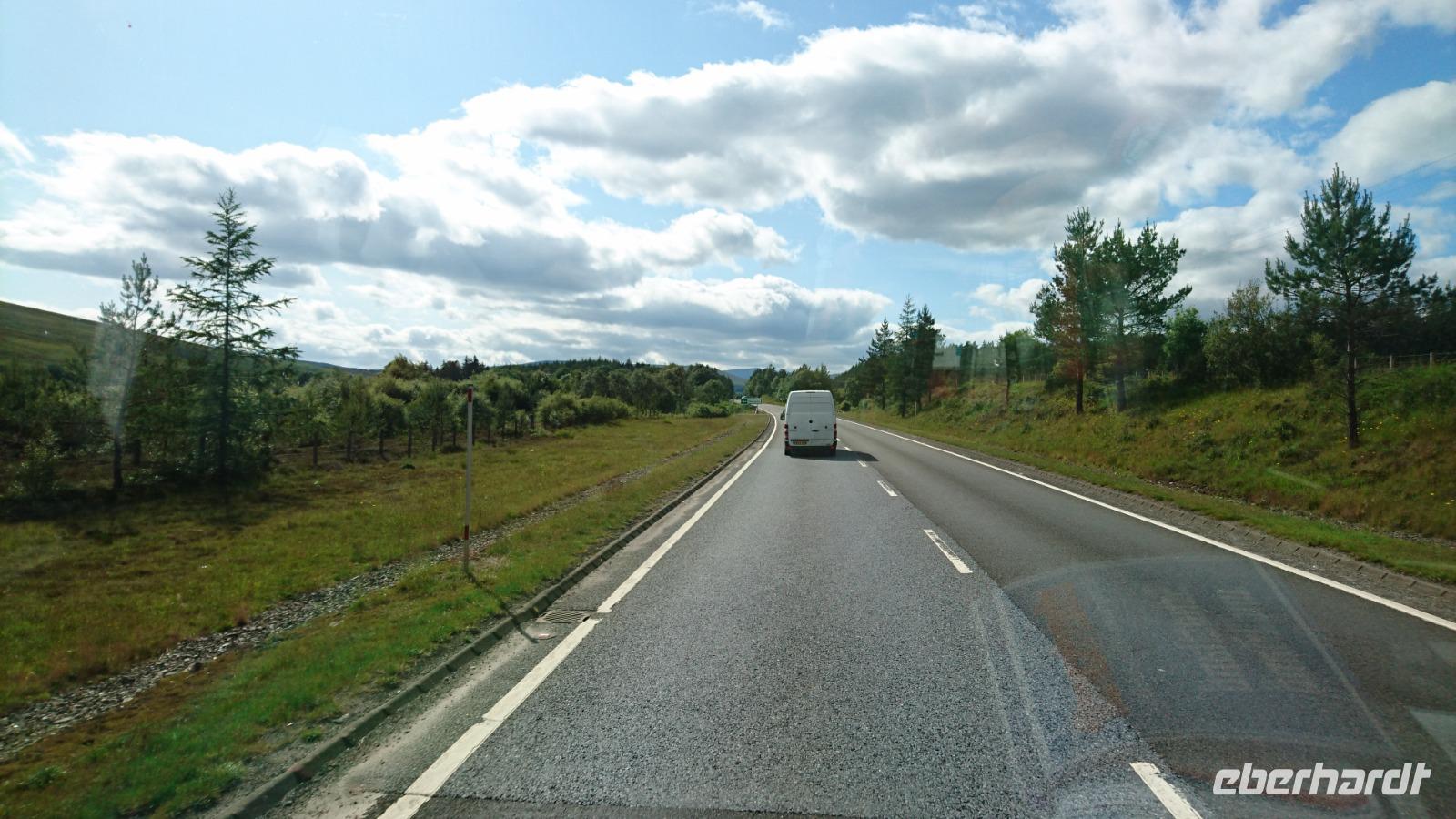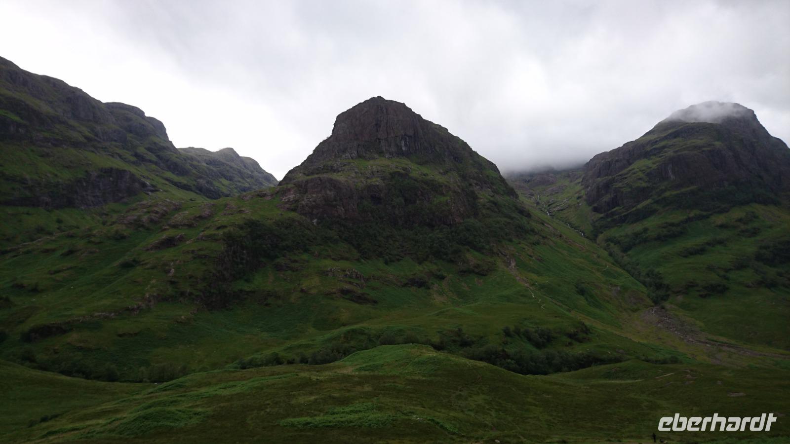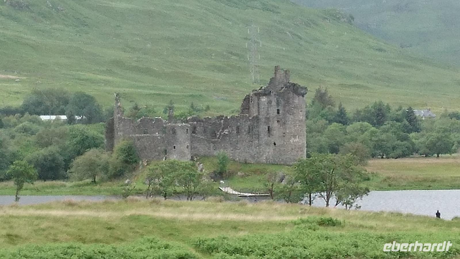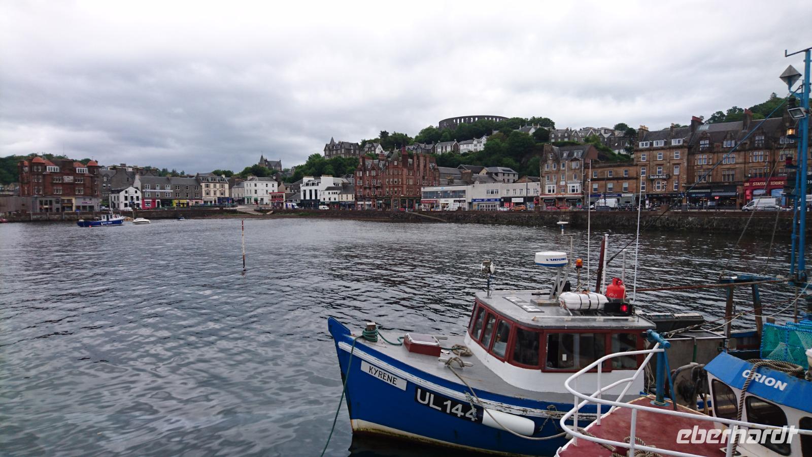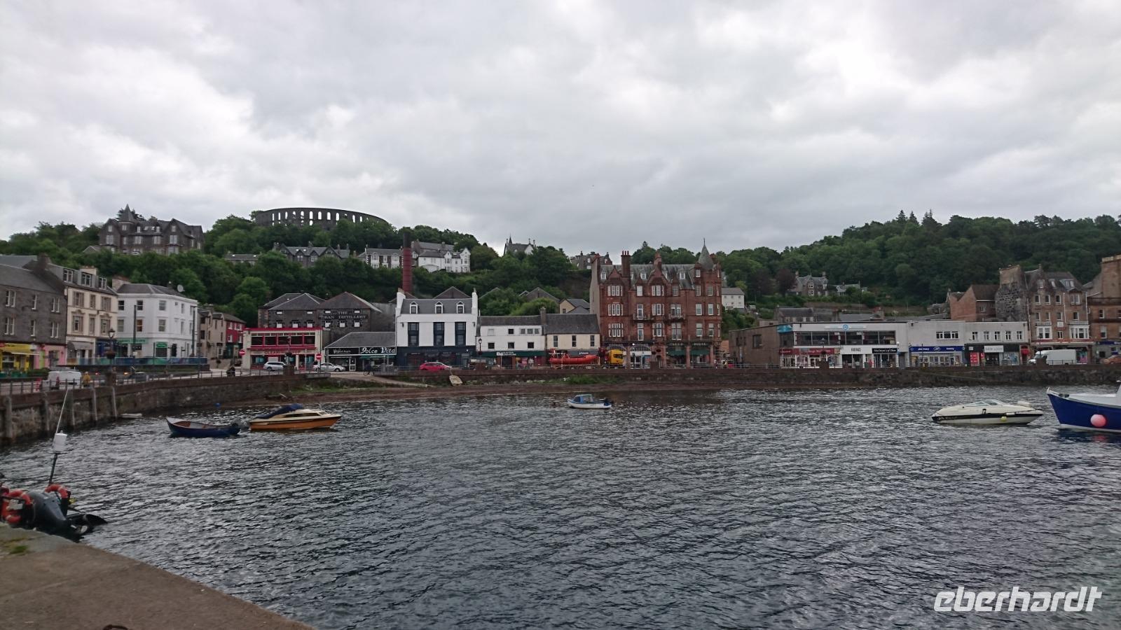 Der Nationalpark um uns herum bestach mit der absoluten Stille in der Nacht. Manch schönes Foto entstand noch nach dem Aufstehen und dann gab es Frühstück und erneutes verladen unserer Koffer. Gern wären wir hier noch geblieben, denn dieses Hotel in Nethybridge begeisterte durch seinen besonderen schottischen Highlandcharme. Aber eine Rundreise heißt ja so, weil man weiterreist. Also führte uns unser Weg heute noch ein Stück nach Norden, nach Inverness, und von da immer am Caledonischen Kanal entlang, den einst die Römer bei einer kurzen Stippvisite in den Highlands bereits planten, den dann jedoch Telford und andere Ingenieure erst in späteren Jahren unter der genialen Nutzung der aus der letzten Eiszeit stammenden langgezogenen Seen zwischen Inverness und Fort William erbauten. Am Clansman-Hotel am Wege sahen wir, wie man Nessi, das angebliche Ungeheuer dieser Gegend, vermarktete, hofften natürlich auf einen Blick zu eben diesem Urvieh, hatten aber nicht alle Glück, erreichten dafür jedoch am Vormittag Urquhart Castle am Loch Ness und sahen hier in einem Video im Besucherzentrum die genial aufbereitete Geschichte des über Jahrhunderte gehaltenen und schließlich doch verlorenen Schlosses am See, wo einst der Heilige Columbian an Land ging und die Christianisierung der Pikten begann. Später ging es weiter am Loch Ness entlang nach Fort Augustus, wo wir uns eine lange Schleusentreppe anschauten, die es den Schiffen auf dem Caledonischen Kanal ermöglichte, die Höhen der Kanal- und Seeabschnitte zu überwinden. Später wollten wir gern den Ben Nevis, den höchsten Berg Schottlands, sehen, doch er hüllte sich beim Stopp am Command Memorial in Wolken und wir fuhren weiter über Fort William ins Glen Coe, dem Heimatort des Riesen Finn McCool sowie dem Ort eines bösen Massakers der Campbells an den McDonalds auf Befehl der Engländer. Die Bergwelt rund um die drei Schwestern im Glen Coe ließ uns jedoch nicht an zu schaurige Dinge denken und da wir danach unsere Fahrt durch die Berge gen Oban fortsetzten, hatten wir noch viele schöne Momente, ehe wir die Hafen- und Whiskystadt erreichten und unser Hotel am Markt bezogen. Manch einer ging am Abend noch an den Pier oder in einen der vielen Pubs im Ort und nach dem Abendessen genossen wir dann wieder die Ruhe für kommende Erlebnisse.