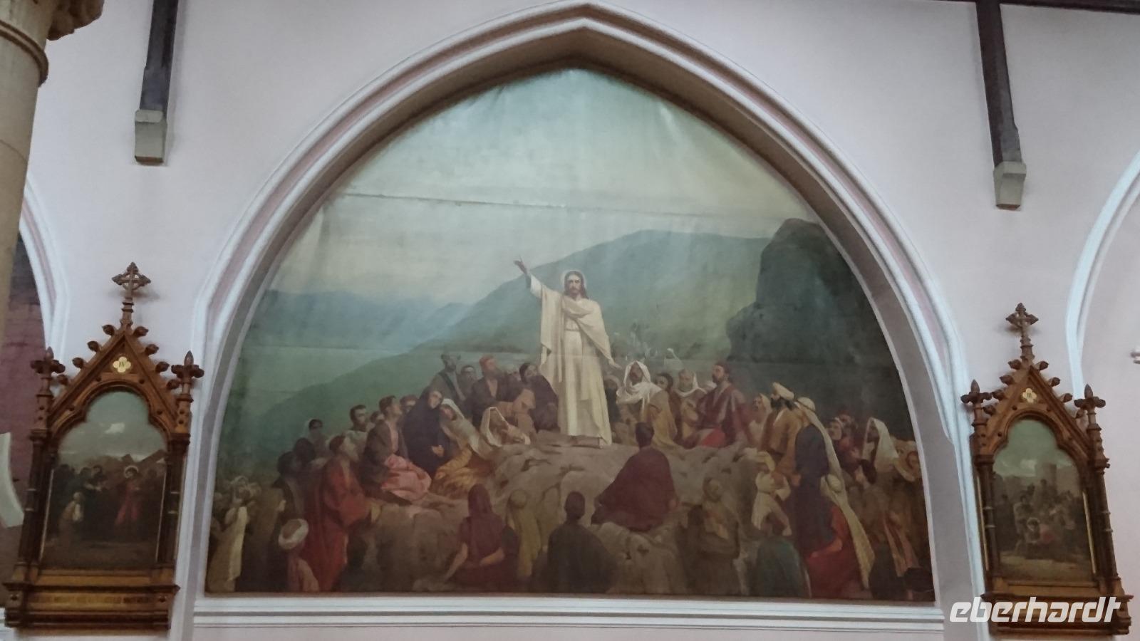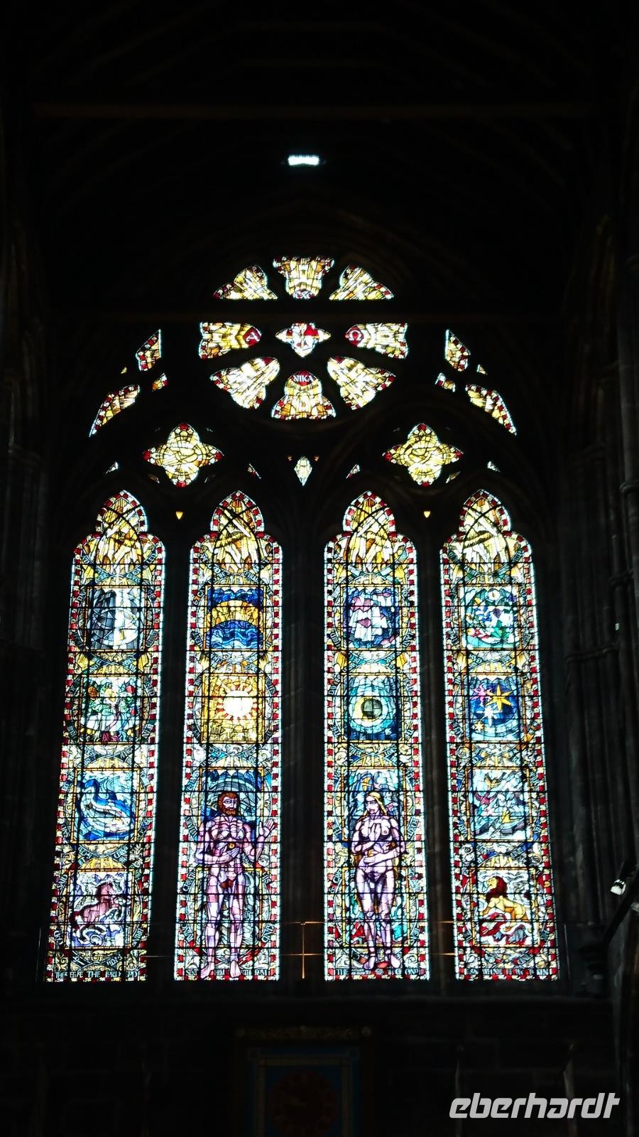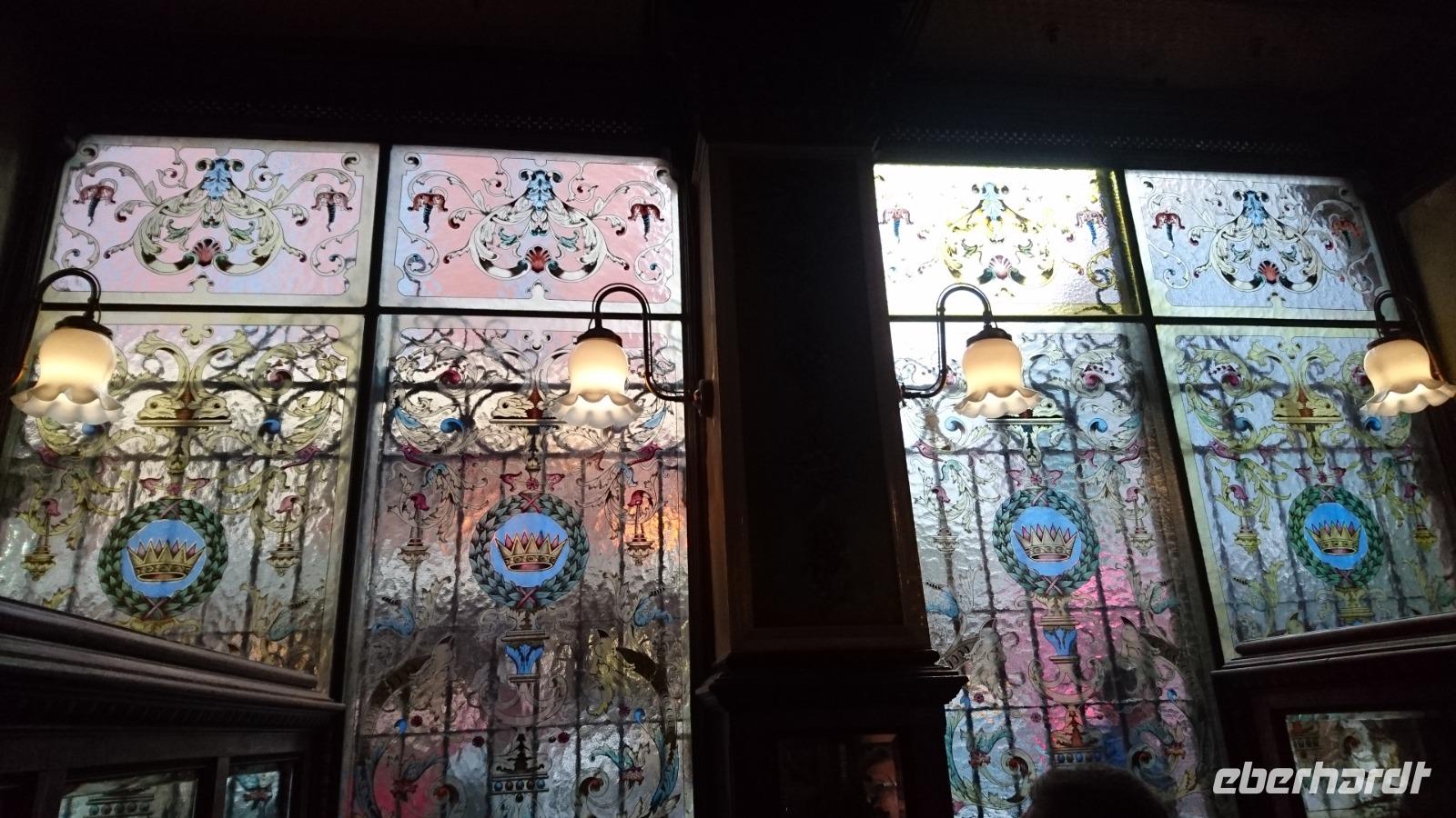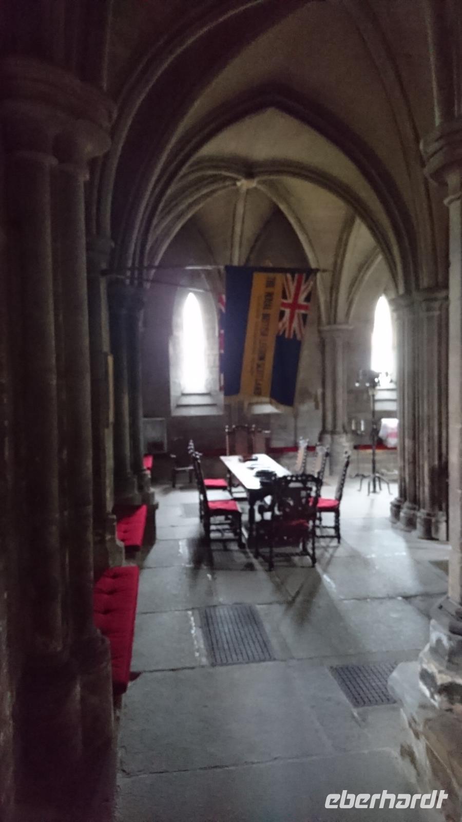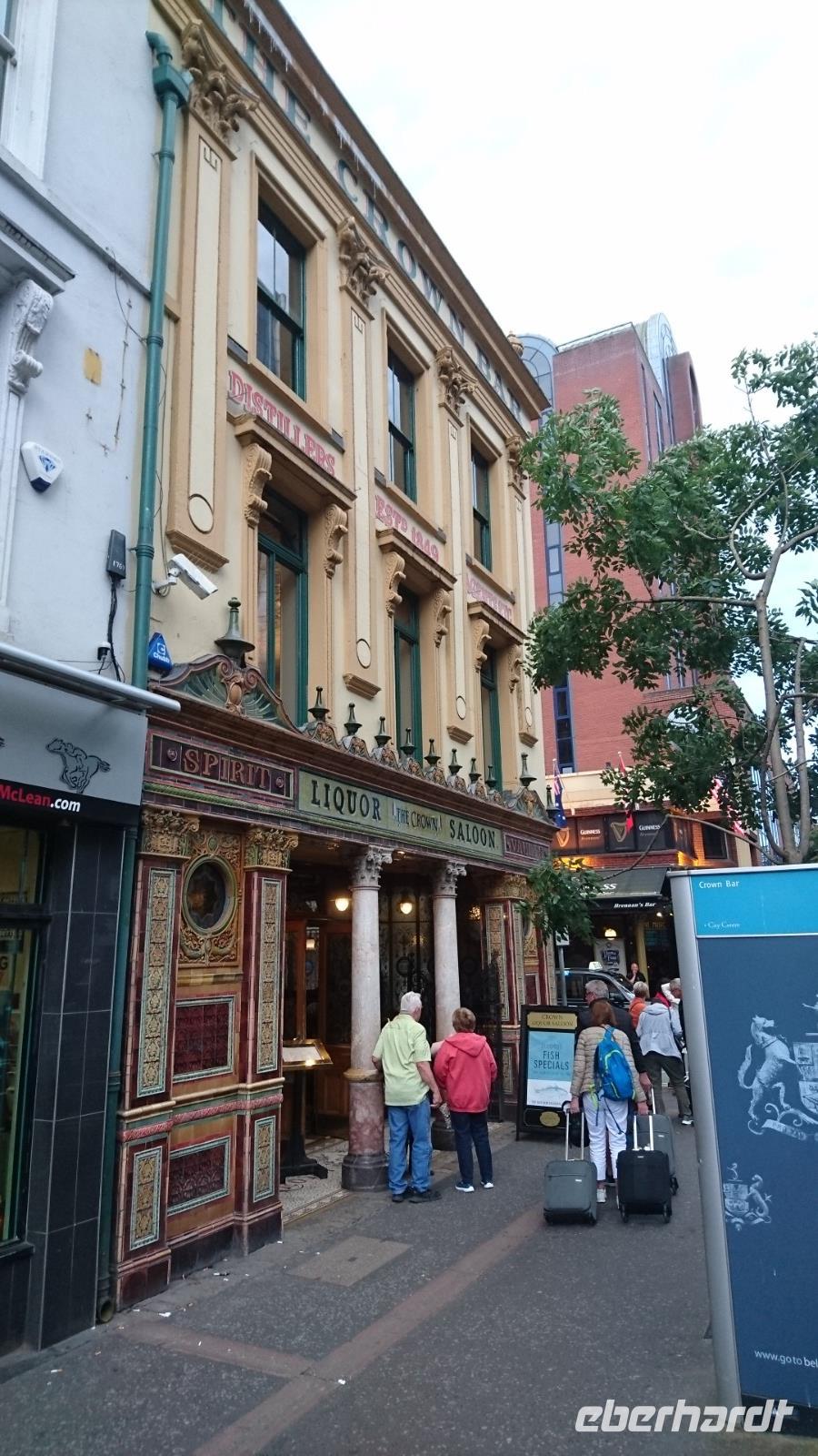Erst einmal luden wir nach dem Frühstück unsere Koffer in die unteren Busklappen, dann fuhren wir das kurze Stück vom Hotel zum St. George Square, stiegen aus und Stefan besprach mit Holger, wo wir später unseren Bus wiederfinden würden. Dann begann unser Stadtspaziergang. Wir besuchten das ehrwürdige und vom einstigen Reichtum der Stadt Glasgow zeugende Rathaus mit seinen herrlichen Mosaiken und Bleiglasfenstern, den marmornen Treppenhäusern und vielen interessanten Gestaltungselementen. Dann zeigte uns Stefan die in Glasgow einst bei Streitigkeiten genutzten Urmaße an der Rathauswand und wir spazierten aus der Altstadt hinein ins Universitätsviertel, bemerkten noch einmal, wie sehr Glasgow auf verschiedene Hügel gebaut wurde und erreichten nach vielen Blicken auf modernste Gebäude die altehrwürdige Kathedrale von St Mungo, dem Schutzpatron der Stadt, die eist katholisch war, später in den Zeiten nach Heinrich dem VIII. und dem Kampf um die richtige Religion in Schottland von den Glasgower Bürgern als Bauwerk gerettet und in die damals neue protestantische Religion umgewidmet wurde. Nach der Besichtigung der Gräber von St. Mungo, Black Adder und anderen, den vielen Eindrücken der hochinteressant erbauten und eingerichteten Kirche, blieb noch etwas Zeit, die weithin sichtbare Nekropole Glasgows zu besichtigen, ehe wir wieder im Bus saßen und weiter gen Südwesten fuhren. Denn heute sollte sie zu Ende gehen, unsere Zeit in Schottland. Vorbei an Ayr ging es zur Mittagspause nach Girvan und schließlich in den Fährhafen der Stena Line nach Cainryan. Nach dem Check-in ging es leider einem unserer Gäste aus privaten Gründen nicht so gut, aber besonnene und schnelle Hilfe durch Holger, Stefan, die herbeigerufene Polizei und einen Notarztwagen konnten Schlimmeres verhindern und alle gemeinsam setzten wir mit höchst ärztlicher Genehmigung die Reise mit der Fährüberfahrt nach Belfast fort. Die nordirische Hauptstadt erreichten wir am späten Nachmittag, fuhren dann von Bord und durch die Hafenanlangen hinüber in die Innenstadt, wo wir unser Hotel bezogen und bald zum Abendessen gehen konnten. Später nutzten wir diesen ersten von zwei Abenden in Belfast, um die Pubs und Gebäude der Innenstadt zu sehen, einige von uns besuchten auch den wohl schönsten Pub der Stadt, The Crown, ehe wir wieder Kraft für den kommenden Tag tankten.