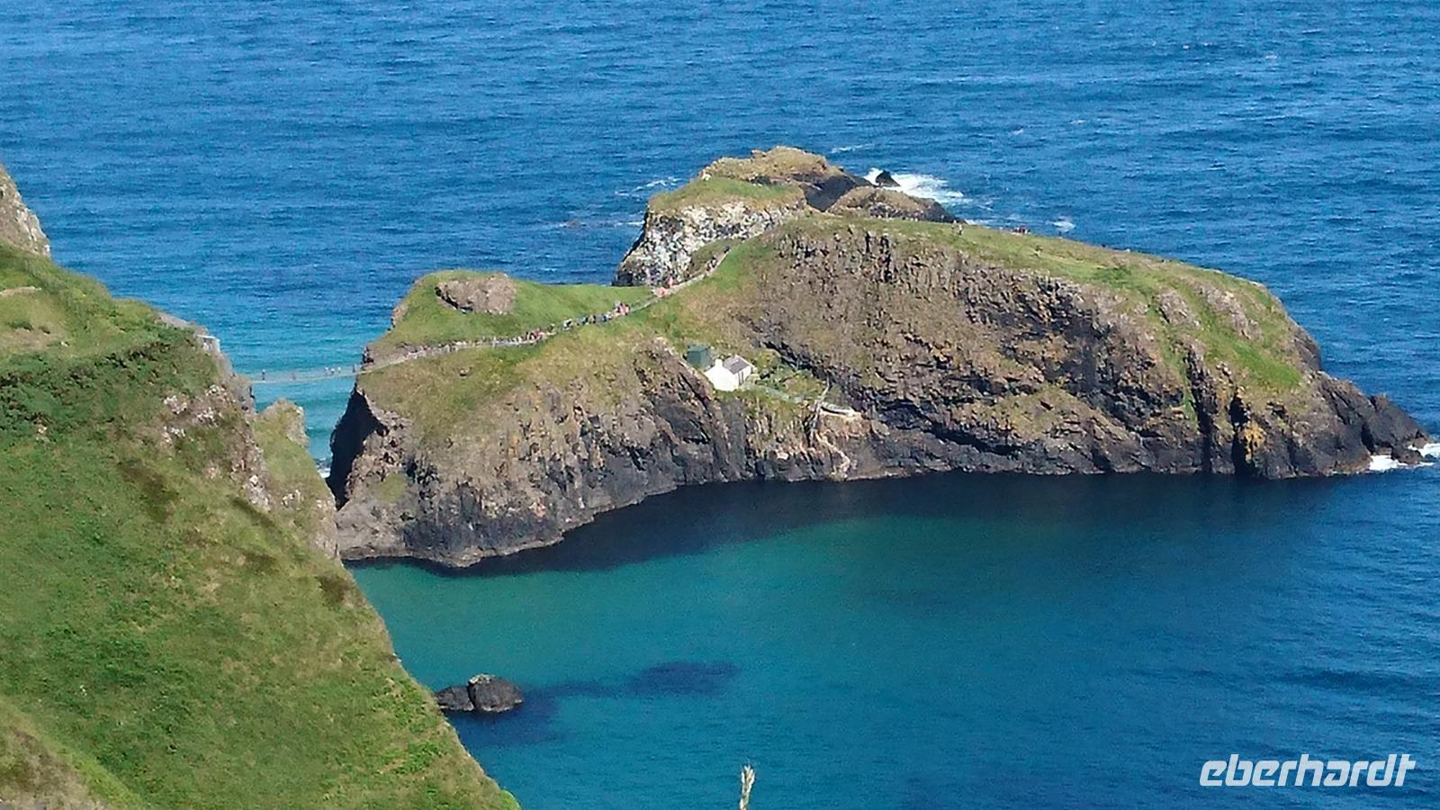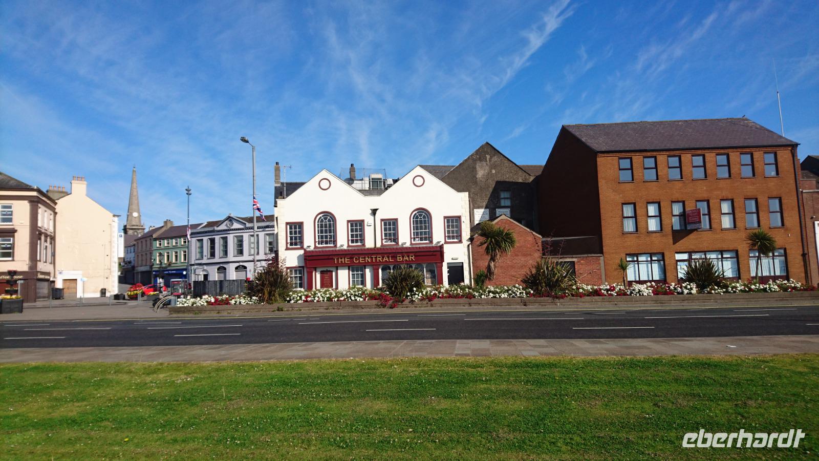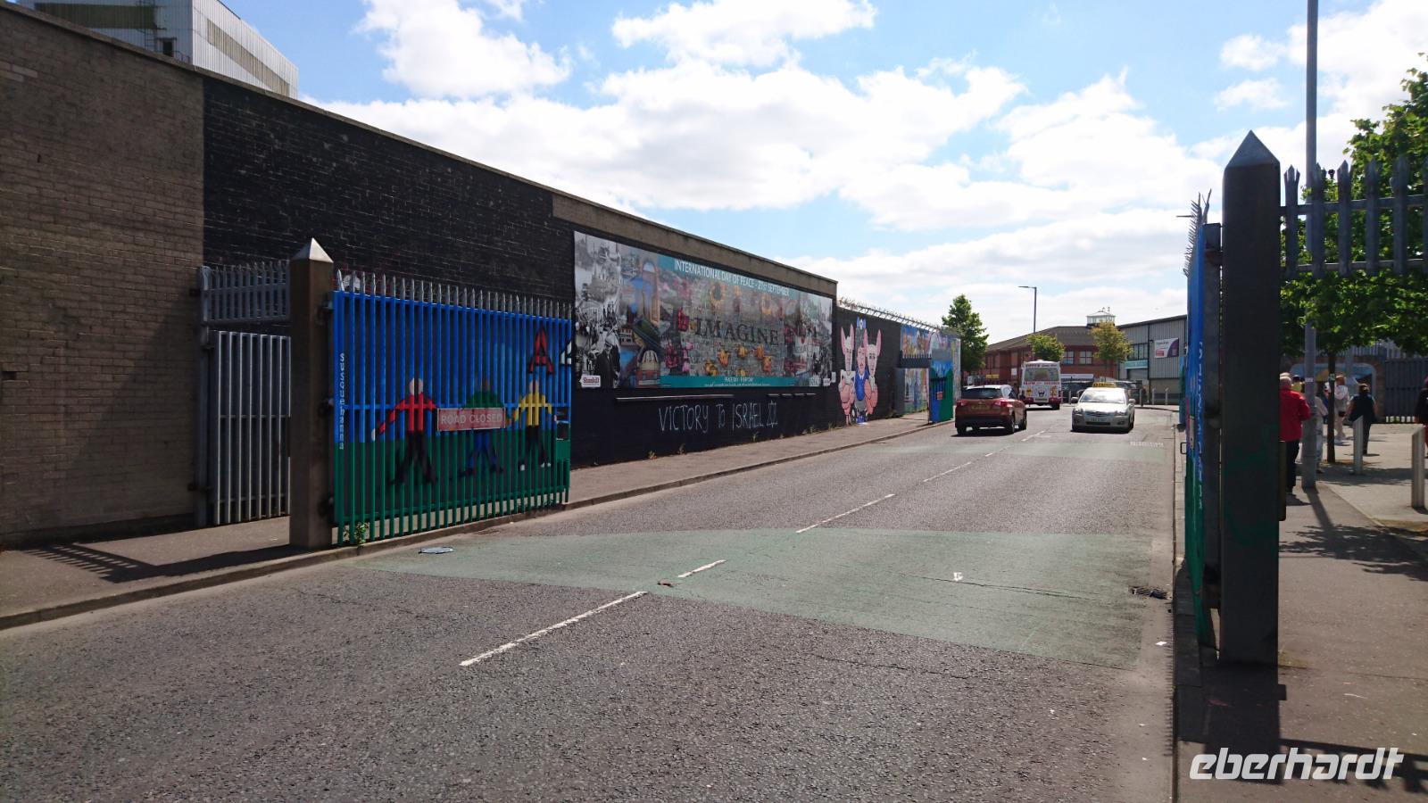 Heute hieß es am Morgen wieder, Koffer laden. Dann fuhren wir ab und freuten uns auf Natur pur. Das Wetter spielte wieder hervorragend mit. Bald schon stoppten wir im kleinen Ort Carrickfergus, dort am imposanten Normannen-Castle, welches samt des Titels eines Baron von Carrickfergus Queen Elisabeth II ihrem Engel William zur Hochzeit schenkte, was wiederum die Nordiren sehr erfreute, denn sie vermissten lange Zeit die Fürsorge der Krone etwas, obwohl doch ein großer Prozentsatz der Nordiren treu zur Krone in London steht. Mit schönen Fotos im Gepäck ging es weiter, immer die Causeway Coastal Route entlang der Antrim Küste nach Norden. In Carnlough war ein kleiner Zwischenstopp. Hier konnten wir neben etwas Entspannung auch den Drehort einer wichtigen Schlüsselszene der Serie Game of Thrones besichtigen, ehe wir weiter die Küste hinauf zur Carrick-a-Rede Rope Bridge mit Blick nach Rathlin Island und Schottland fuhren. Unterwegs überraschte und Stefan mit einem schottischen Keksgruß und dem Video der Wings Mull of Kintyre, denn nichts anderes von Schottland sahen wir eben hinter der Bumerang-Insel Rathlin Island im Nebel liegen. Nach der Weiterfahrt erreichten wir bald den Damm der Riesen und sein Besucherzentrum. Giants Causeway hat eine erdgeschichtliche und eine mystische Geschichte, letztere hing wieder mit Finn McCool aus dem Glen Coe in Schottland zu tun, erstere natürlich mit Vulkanen und dem Triften der Landmassen in grauer Vorzeit. Wir bekamen jeder einen Audioguide und genügend Zeit für eine kleine Spazierwanderung vom Besucherzentrum zum Damm und wer wollte auch zurück über die Steilküste. Für die weniger guten Läufer gab es einen preiswerten Shuttlebus hinter dem Besucherzentrum. Nach einem Imbiss, vielleicht gar mit Irish Stew, dem Nationaleintopf der Iren, trafen wir uns am Nachmittag wieder am Bus und weiter ging die Fahrt mit tollen Erlebnissen, gleich zu einem weiteren Fotostopp, dem Dunluce Castle oder eher der Ruine dessen, einer Burg, die aus Irland herüber gekommene Wikinger der Familie der McDonalds einst errichteten. Ein tolles Motiv auf der Steilküste. Die Fahrt, auf der wir nun entschieden, welche fakultativen Besuche wir ein paar Tage später in Dublin wahrnehmen wollten, ging nun immer weiter gen Westen, unterhalb der Küste entlang und vorbei an Golfplätzen, unberührter Natur, kleinen Ortschaften in eine Stadt, über deren wirklichen und offiziellen Namen man sich in verschiedensten Kreisen nicht wirklich sicher ist. Daher benennt man diese Stadt in Nordirland unweit der Grenze zur Republik Irland gern als die Stadt mit dem Schrägstrich, Derry/Londonderry. Dass dies nicht nur ein Spaß ist, mussten wir wenig später in dieser Stadt erkennen. Stefan führte uns über die alte und vollständig erhaltene Stadtmauer und erläuterte uns die noch weitaus rigorosere Teilung der Stadt in Londonderry und den Stadtteil Bogside, also Derry. In Erstem leben die Royalisten und Protestanten, in Letztem die Republikaner und Katholiken und sie arbeiten nicht gemeinsam, leben nicht gemeinsam, haben sogar eine geteilte Stadtregierung, die sich im Monat nur einige Male trifft, um zu versuchen, übergreifende Fragen zu klären. Nachdem uns Stefan auch noch den Checkpoint Charlie in Derry/Londonderry zeigte, wussten wir Bescheid. Hier die Teilung zu beenden, würde noch viel Kraft fordern. Wie jedoch all dies nach einer eventuell zu errichtenden EU-Außengrenze zwischen dem zum Vereinigten Königreich gehörenden Nordirland und der eigenständigen EU-Republik Irland weitergehen würde, wenn das Vereinigte Königreich wirklich den Brexit zulässt, weiß wohl derzeit niemand auf der ganzen Welt. Schlimme Idee kommen bei vielen Iren herauf, Erinnerungen an IRA und Kämpfe. Hoffen wir, dass man zwischen London und Brüssel noch einen Weg findet, Schlimmstes abzuwenden. Wir jedenfalls verließen nun Nordirland für einige Stunden und machten Hotel-Station in der ersten größeren Stadt im Distrikt Donegal, in Letterkenny. Nach dem Abendessen besuchten einige noch das geschäftige Pub-Viertel und dann ruhten wir für den nächsten Tag aus.