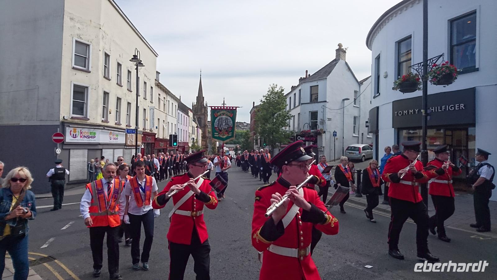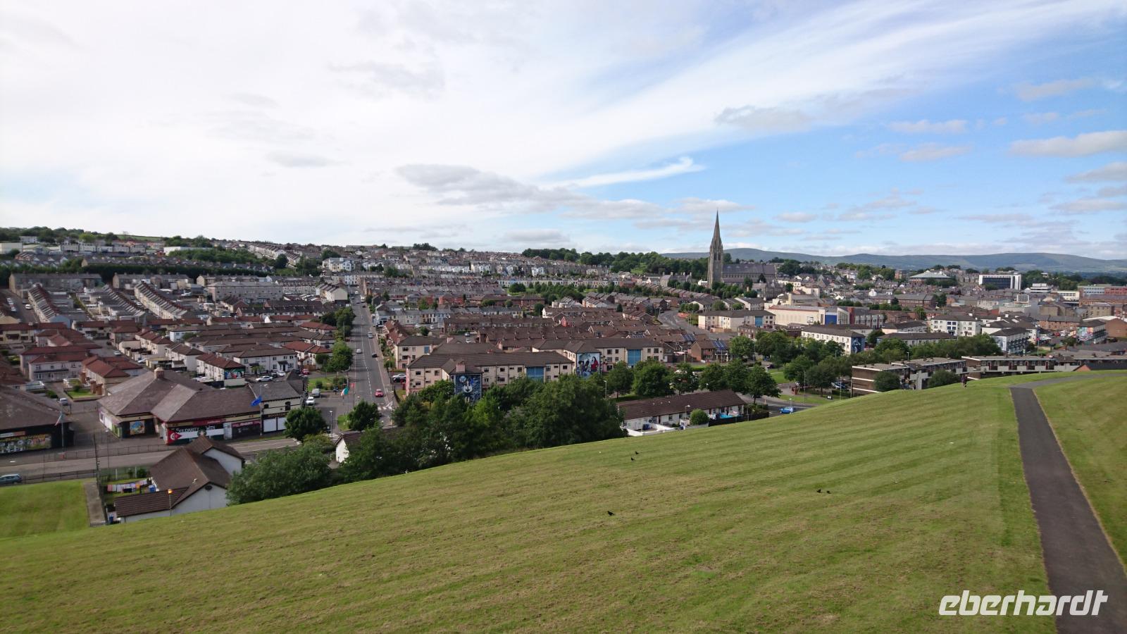 8. Reisetag, Sonntag, 07.07.2019 – 240 km Entlang der nordirischen Antrim Coast über Carrickfergus und Giant's Causeway, Besuch der Stadt mit de Schrägstrich, Derry/Londonderry, und Übernachtung in Letterkenny in der Republik Irland
