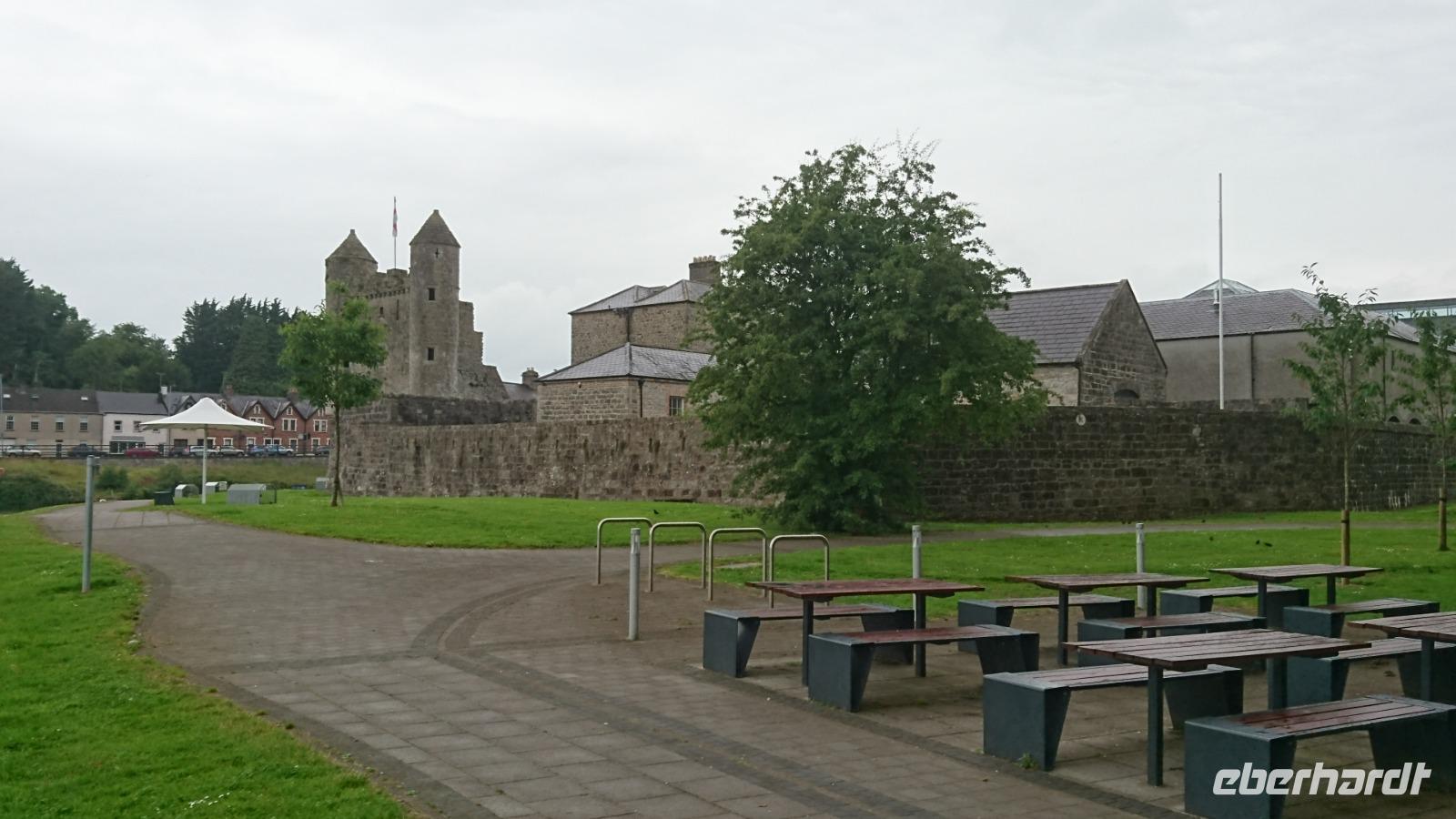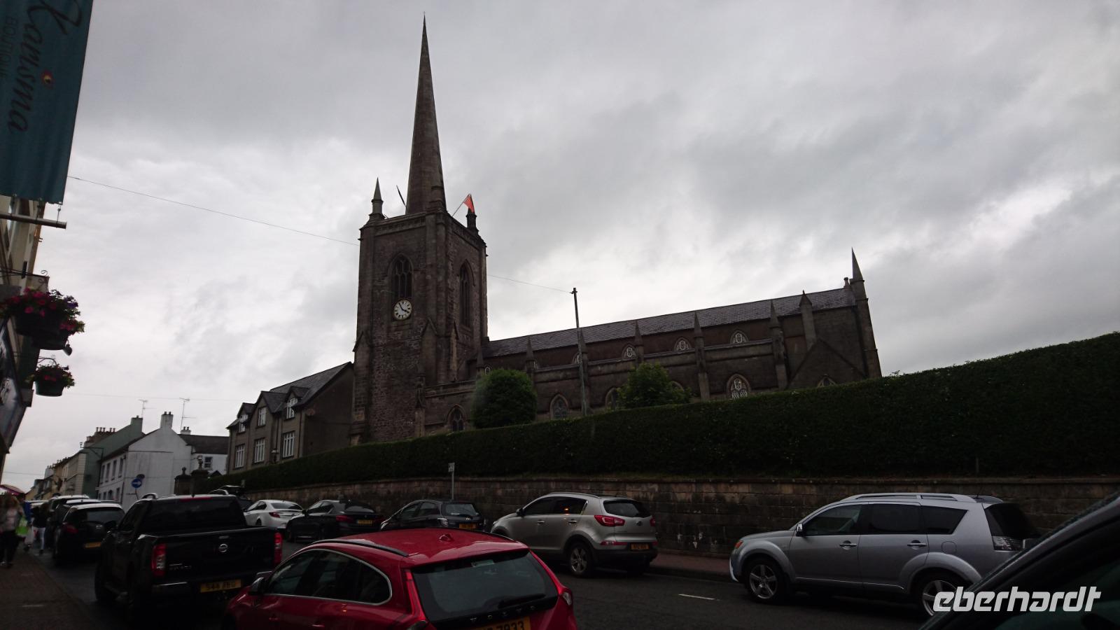 Heute ging es wieder zwischen den Grenzen hin und her. Jedes Mal, wenn wir eine Grenze überfuhren, zeigte uns Stefan die entsprechende Fahne des eben erreichten Gebietes und ließ die Nationalhymne, ob nun offiziell wie in Newcastle und Letterkenny, oder inoffiziell wie in Schottland und Nordirland, erklingen. Nach dem Frühstück jedoch ging es erst einmal ein Stück durch die Republik und in den schönen Glenveagh Nationalpark. Dort angekommen, sahen wir den Film zum Park und erfuhren Vieles zu seiner Entstehung und heutigen Pflege. Im Castle führte uns Stefan und erläuterte die Räume und deren ursprüngliche und letzte Nutzung, ehe wir noch Freizeit im ummauerten Garten und im weitläufigen Park hatten. Im Besucherzentrum nutzten einige von uns das Imbissangebot und gut gestärkt ging es dann auf einer abenteuerlichen Fahrt durch die Randgebiete des Nationalparks und schließlich wieder hinein nach Nordirland. Hier erreichten wir den von oben wie eine Sanduhr aussehenden geteilten Lough Erne und die in seiner Mitte liegende Stadt Enniskillen. Etwas Shoppingtime sollte sein, wir wollten ja noch einige britische Pfund ausgeben, ehe wir dem Pfundgebiet den Rücken kehrten. Der Ort hatte alte Häuser, sogar einen Drehort von Game of Thrones, chöne Kirchen und viele Läden, ein großes Shoppingcenter und gutes Eis zu bieten. All das probierten wir mehr oder weniger und schließlich, vielleicht auch nach einem Castle-Besuch am See, saßen wir wieder im Bus und fuhren gen Süden, heraus aus Nordirland und zurück in die Republik, wo wir heute in einem noblen Hotel in Cavan übernachten würden. Dort angekommen, bezogen wir bald unsere Zimmer und trafen uns später beim Abendessen wieder, genossen dann natürlich die Vorteile eines so tollen Hauses und mussten doch irgendwann zu Bett gehen, um uns für den kommenden Tag zu wappnen.