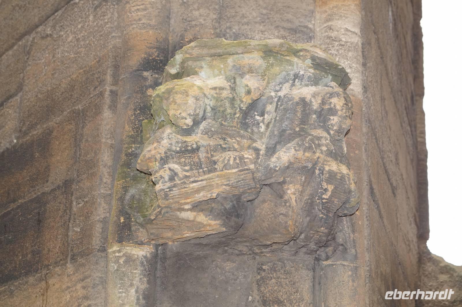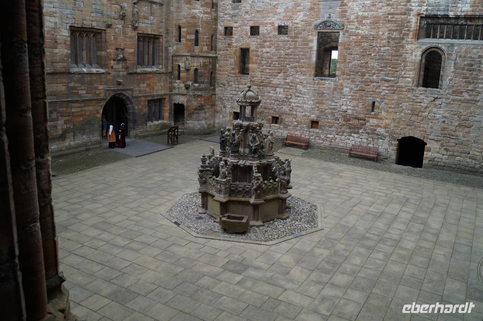 Zuerst zeigten die beiden uns den Brunnen im Innenhof des Schlosses und erklärten seine Symbolik als Hochzeitstorte mit den Wappentieren Schottlands, dem Einhorn und dem Löwen, seiner Darstellung von verschiedenen Schichten der schottischen Gesellschaft des 16. Jahrhunderts und dass der König, symbolisiert durch die oben aufgesetzte Krone über allem stehe, außer über Gott, der durch das Kreuz auf der Krone dargestellt sei. Im Anschluss führten sie uns durch diverse Festsääle, die Privaträume von König und Königin und zeigten uns in der Schlosskapelle die verschiedenene Engel mit ihren Musikinstrumenten: Trompete, Harfe und ... Elektro-Keyboard.