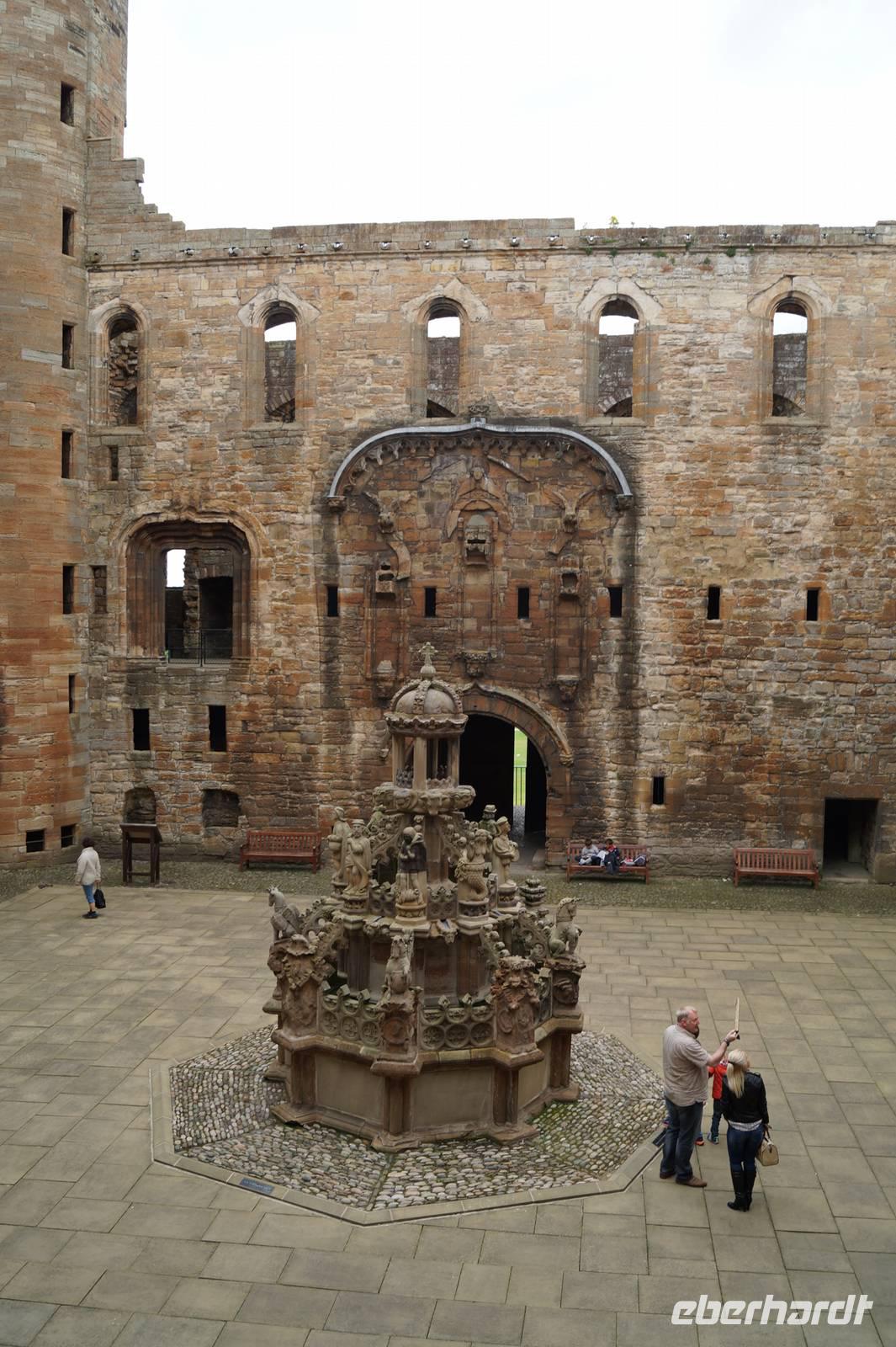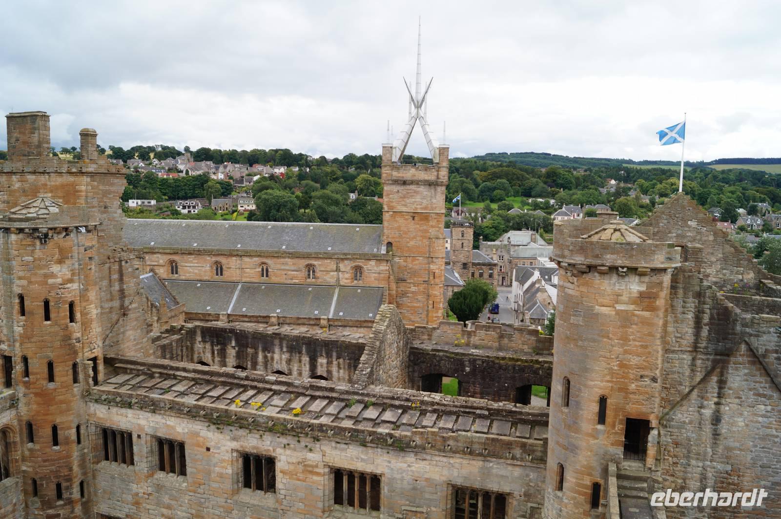 Nach Landung und Inbesitznahme unseres Busses begaben wir uns nach Linlithgow in den Linlithgow Palace, wo wir von „Sir" Adam und „Sir" David durch die Räume der Renaissance-Schlossruine geführt wurden.