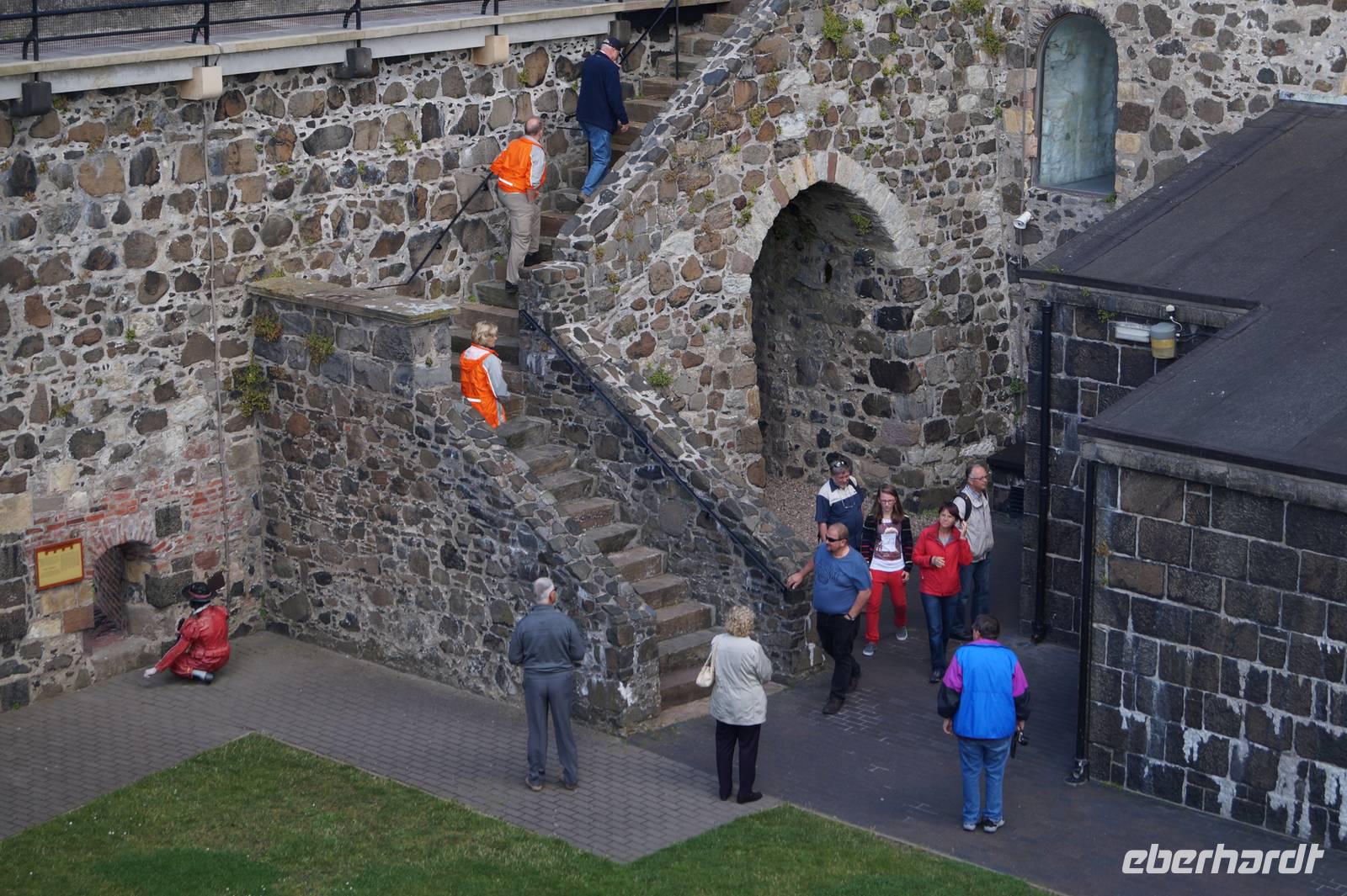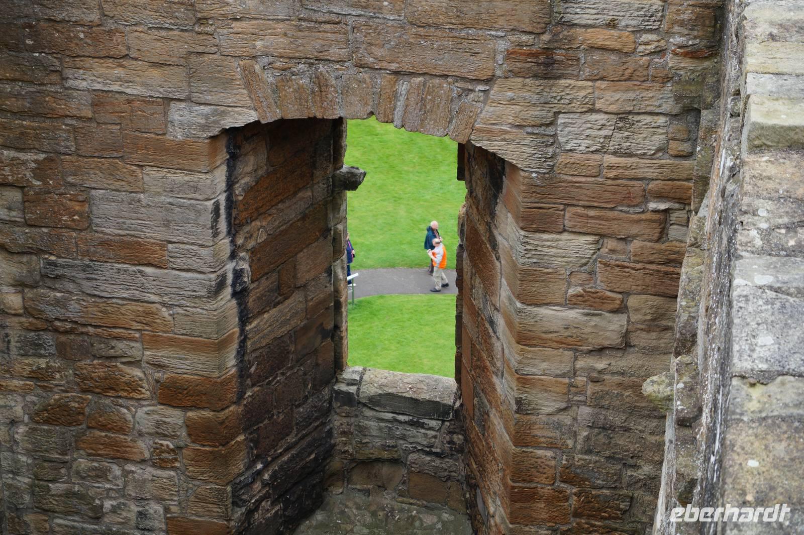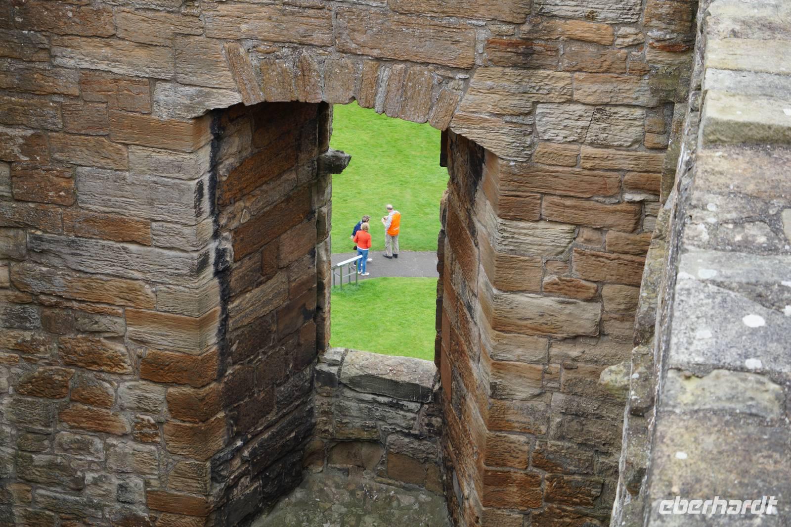 Bei den beiden handelte es sich um Schüler von ca. zwölf und fünfzehn Jahren, Volontäre, die in ihren Schulferien beim lokalen Ableger von Historic Scotland in historische Gewandungen gekleidet unentgeltliche Führungen anboten (natürlich erhielten unsere Helden in Strumpfhosen nachher ein üppiges Trinkgeld).
