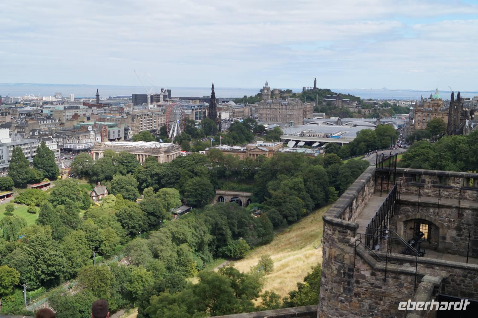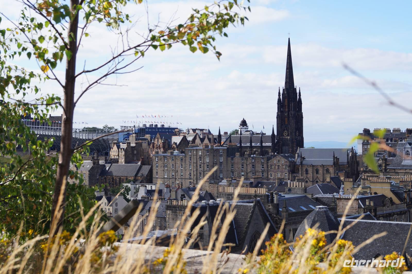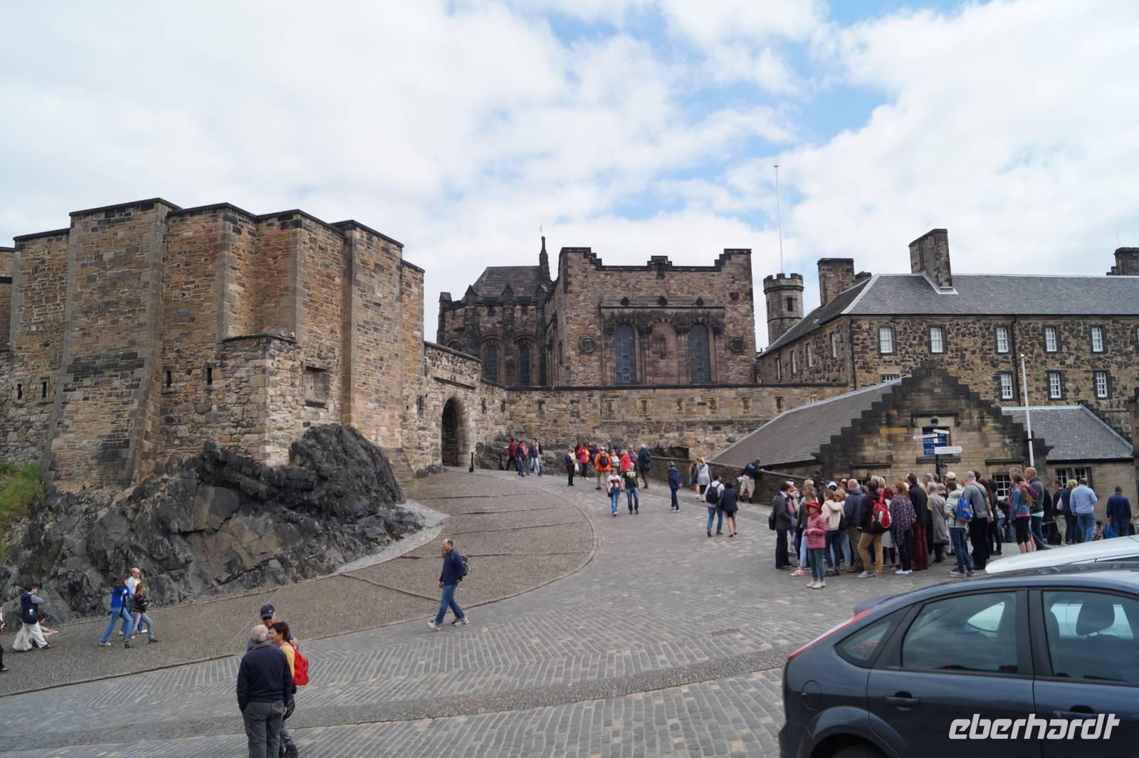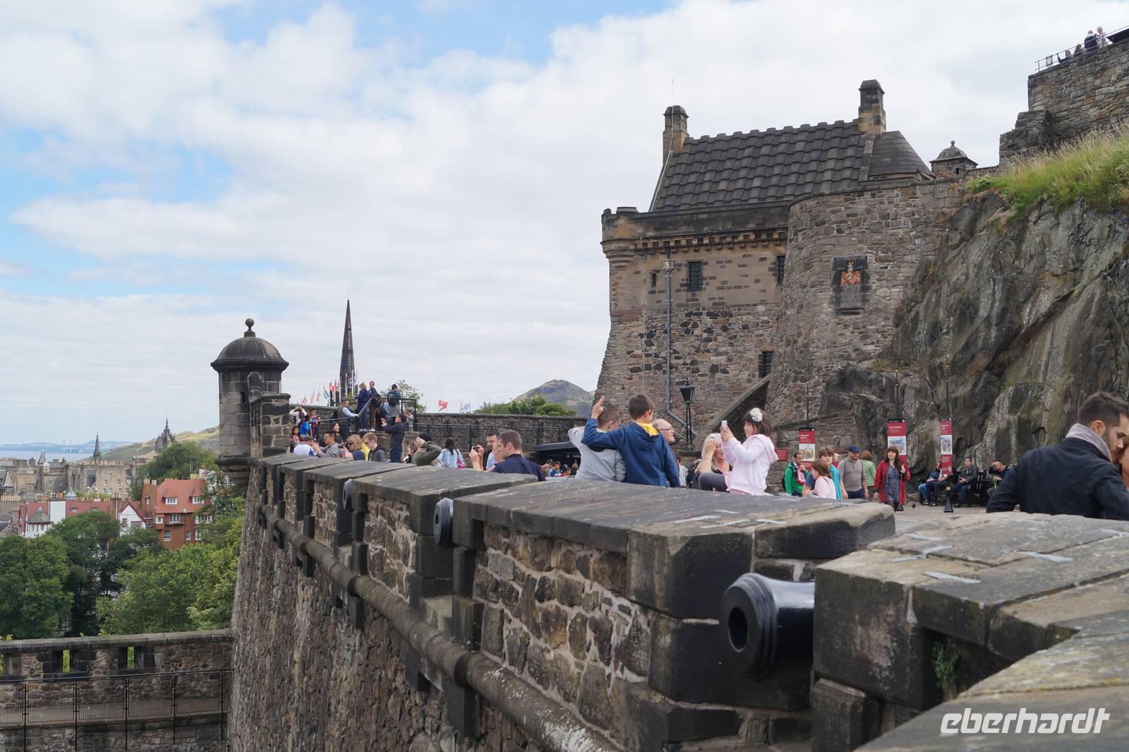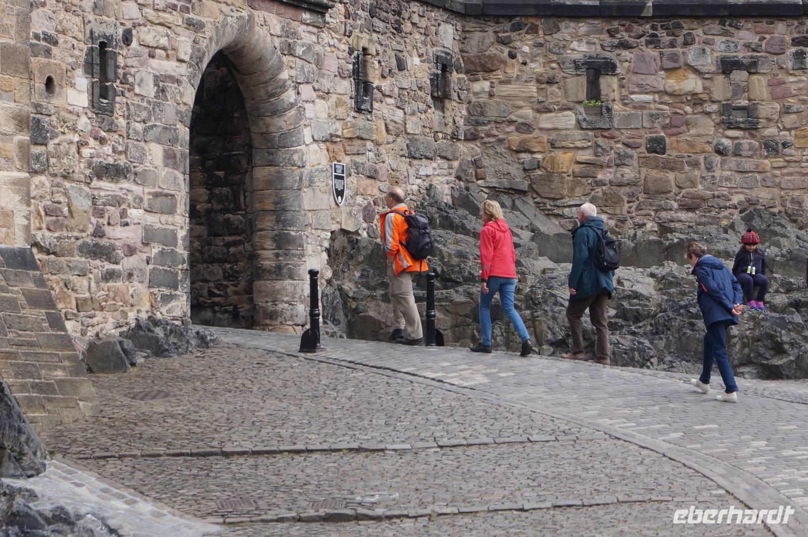 Zurück ging es über die London Street in die Altstadt, vorbei am Holyrood Palace und Parlament, von dort aus die Royal Mile hoch, von dieser in die South Bridge Street, vorbei am National Museum of Scotland am Denkmal des Greyfriar's Bobby vorbei, jenes Polizei-Terriers, der dreizehn Jahre lang das Grab seines Herrchens bewachte, zum Grassmarket, wo 1780 die letzte Hinrichtung stattfand. Von dort aus fuhren wir hoch zur Burg, wo bereits die Tribünen für das Military Tattoo Festival aufgebaut waren. L. Römer verabschiedete sich dort, wir eroberten uns dagegen die Burg.