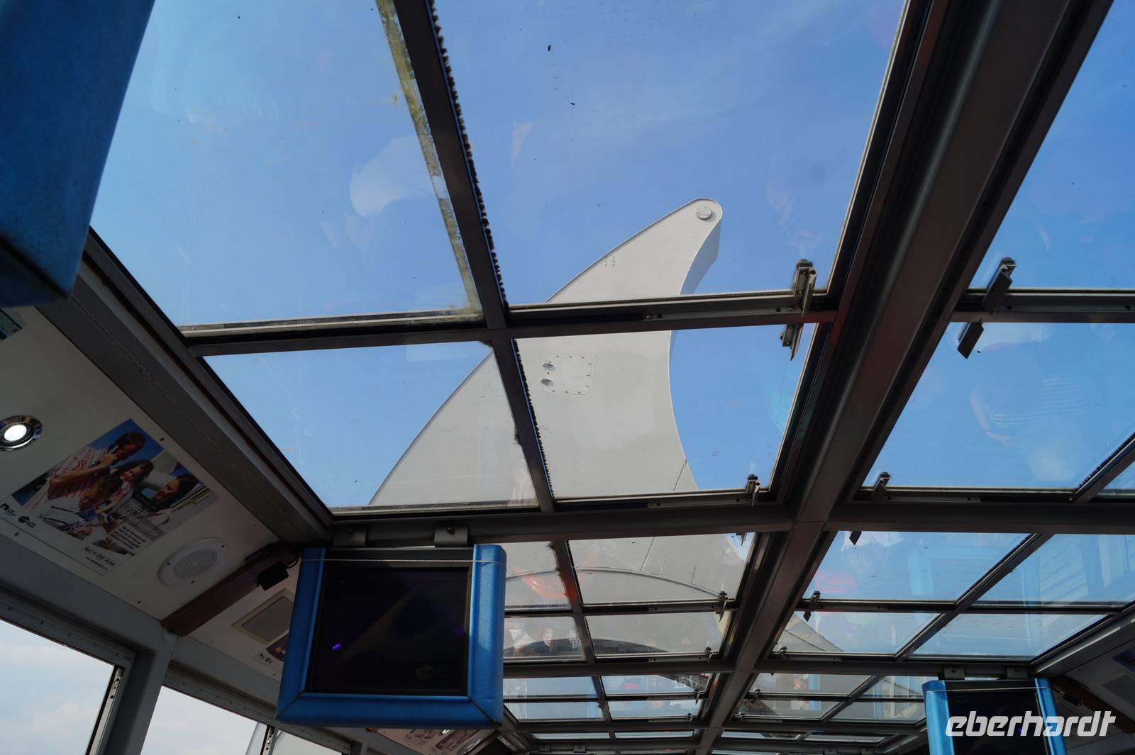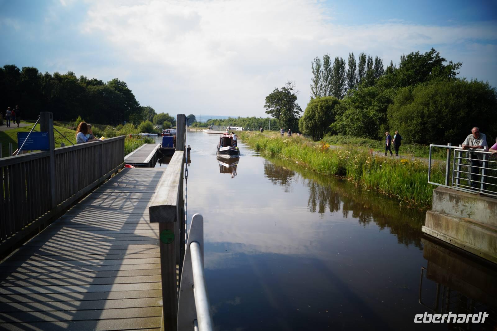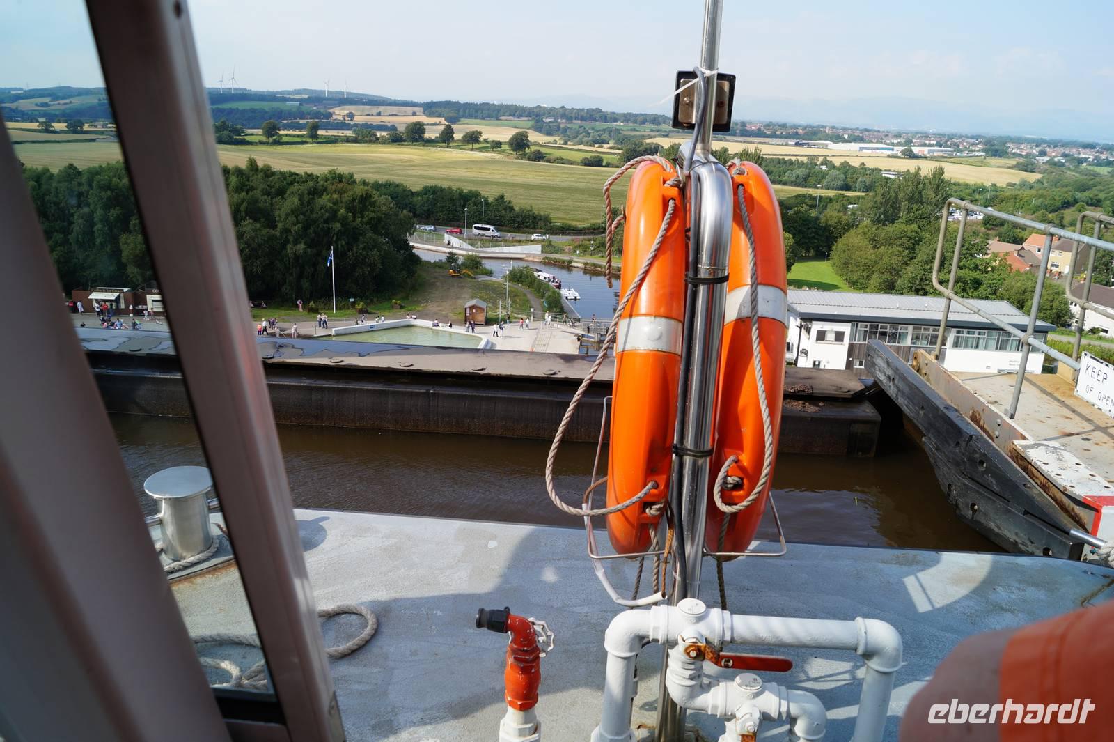 Wir erlebten diese Fahrt auch selbst und fuhren mit dem Boot vom Union Kanal in den Firth-and-Clyde-Kanal und wieder zurück. Bei gutem Wetter hatten wir, als wir in der oberen Gondel standen einen wunderbaren Ausblick auf die Umgebung bis zu den Ochil Mountains bei Stirling und dem Firth of Forth.