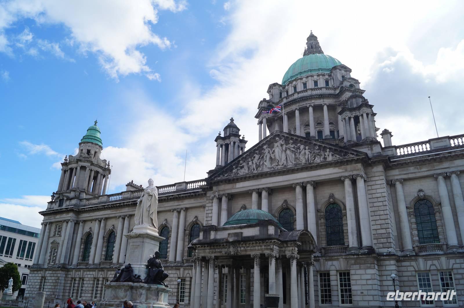 Morgens erhielten wir eine Führung in der Burg von Carrickfergus, die uns die verschiedenene Bauphasen der Anlage näherbrachte. Im Anschluss daran trafen wir uns mit B. Hahn an der Belfaster City Hall zu einer Stadtführung. B. Hahn ist eine mit einem Nordiren verheiratete Deutsche, die uns neben den Sehenswürdigkeiten so auch noch aus dem gesellschaftlichen Leben der Nordiren zu berichten wusste. Nachdem wir die City Hall besichtigt, die Peace Wall beidseitig befahren und uns die Universität angesehen hatten, fuhren wir ins Hafengebiet von Belfast, wo wir schließlich in jenem eisbergartigen Gebäude, das die Titanic-Ausstellung beherbergt, diese auch besichtigten. Von der Entwicklung der Siedlung Belfast zur Werftstadt mit ihren sozialen Problemen kamen wir zur Entwicklung und zum Bau des Schiffs und seiner Schwesterschiffe und schließlich über die Ausstattung zum Untergang und zur Auffindung der Fundstelle, multimedial für die Besucher aufbereitet. Aber auch die Rezeption des Untergangs spielte eine große Rolle, nicht nur der bekannte Film von 1997 sondern so manch anderer mehr, neben Büchern und Liedern. Selbst die Nazis haben den Stoff 1943 in einem Propagandafilm verwurstet.