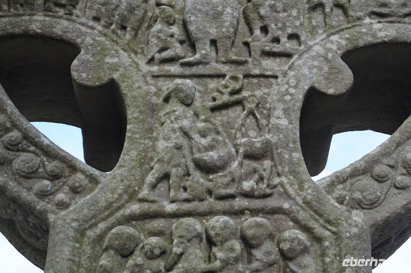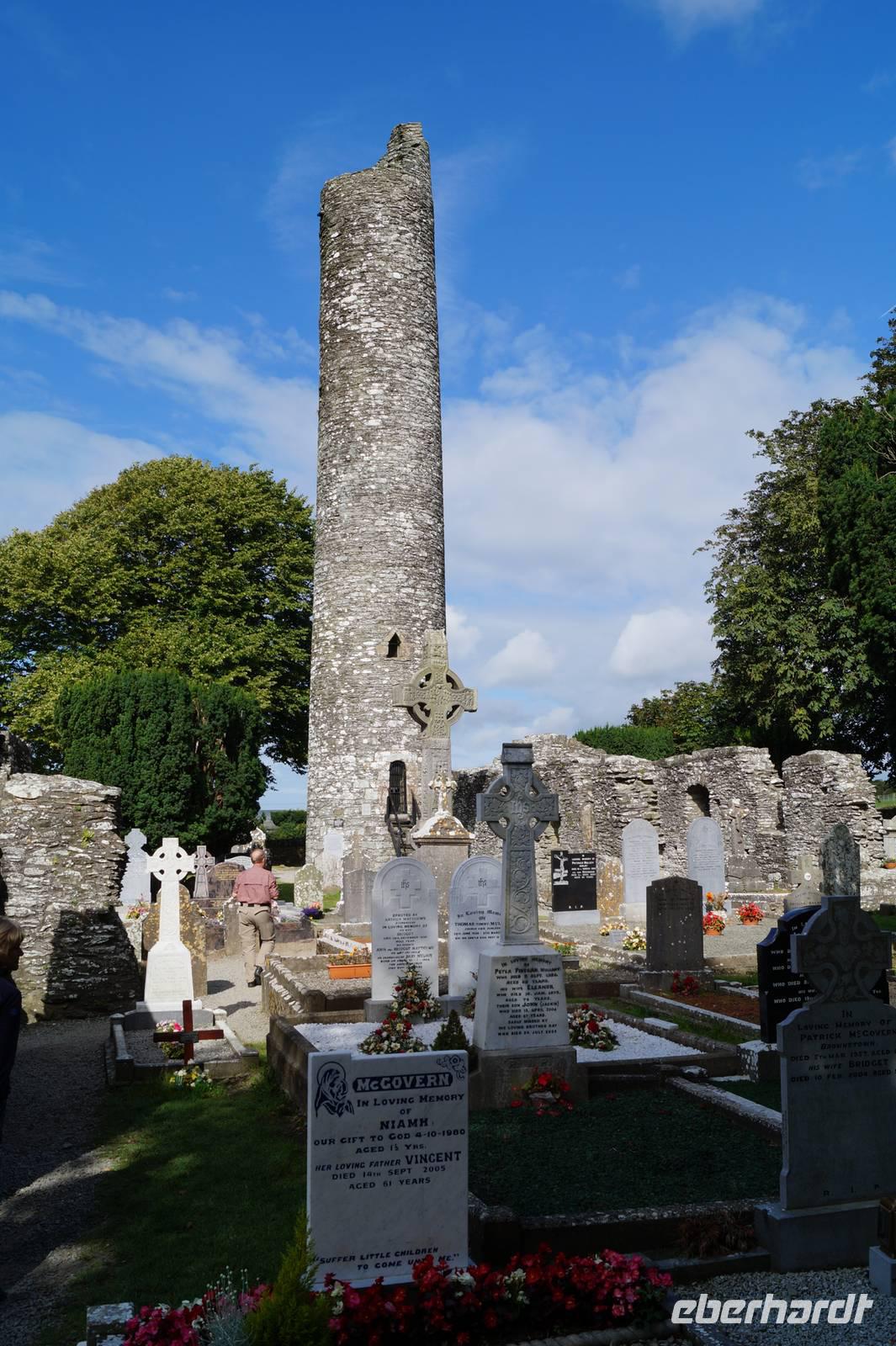 Von der jüngeren Geschichte machten wir einen Abstecher ins frühe Mittelalter, als wir Monasterboice mit seinen drei berühmten Hochkreuzen besuchten. Monasterboice, heute ein kleiner Friedhof verfügt über eine kleine Klosteruine und einen dieser für die irischen Klöster so typischen hochaufgeschossenen schmalen Rundtürme, die als Rückzugsraum vor Wikingerüberfällen dienen sollten.