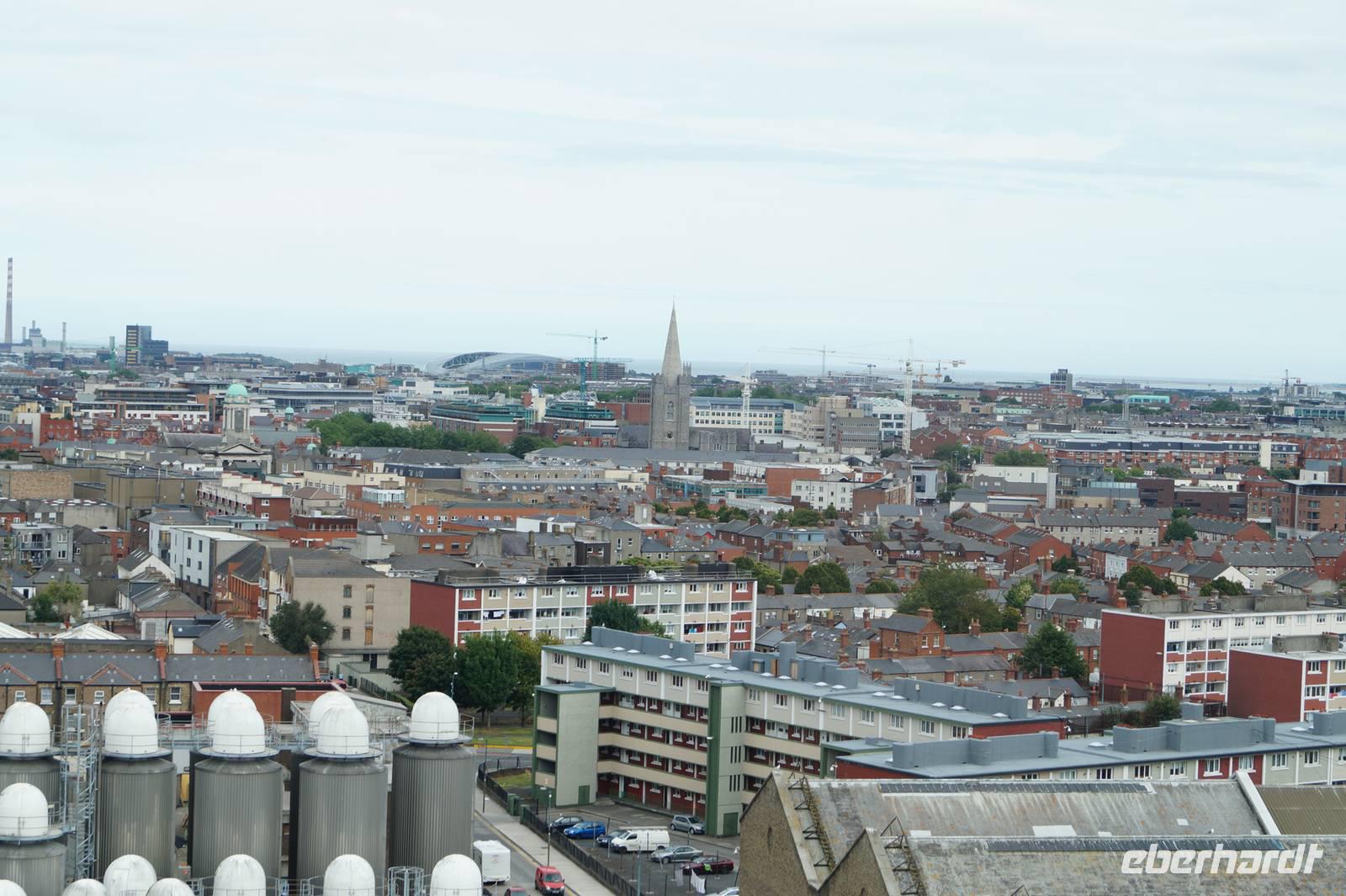 Gegen Mittag erreichten wir Dublin, wo wir im am Trinity College unsere Stadtführerin trafen, die uns nach einem Überblick über die Stadt zum Guinness Store House brachte. Nach einer Einführung in die Kunst des Schwarzbierbrauens, die dem Prozess der Whisky-Herstellung bis zu dem Punkt, wo Hopfen dazugegeben wird recht ähnlich ist, durften wir schon mal ein Schlückchen Guinness probieren. Später sollte es dann noch mal ein Pint für jeden geben.