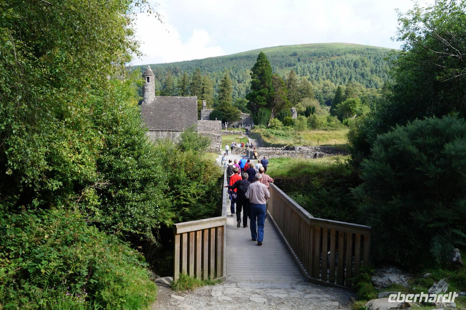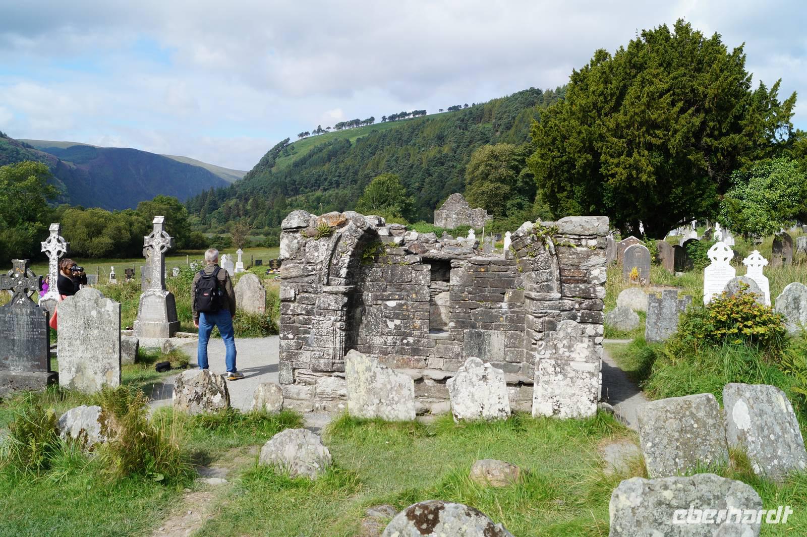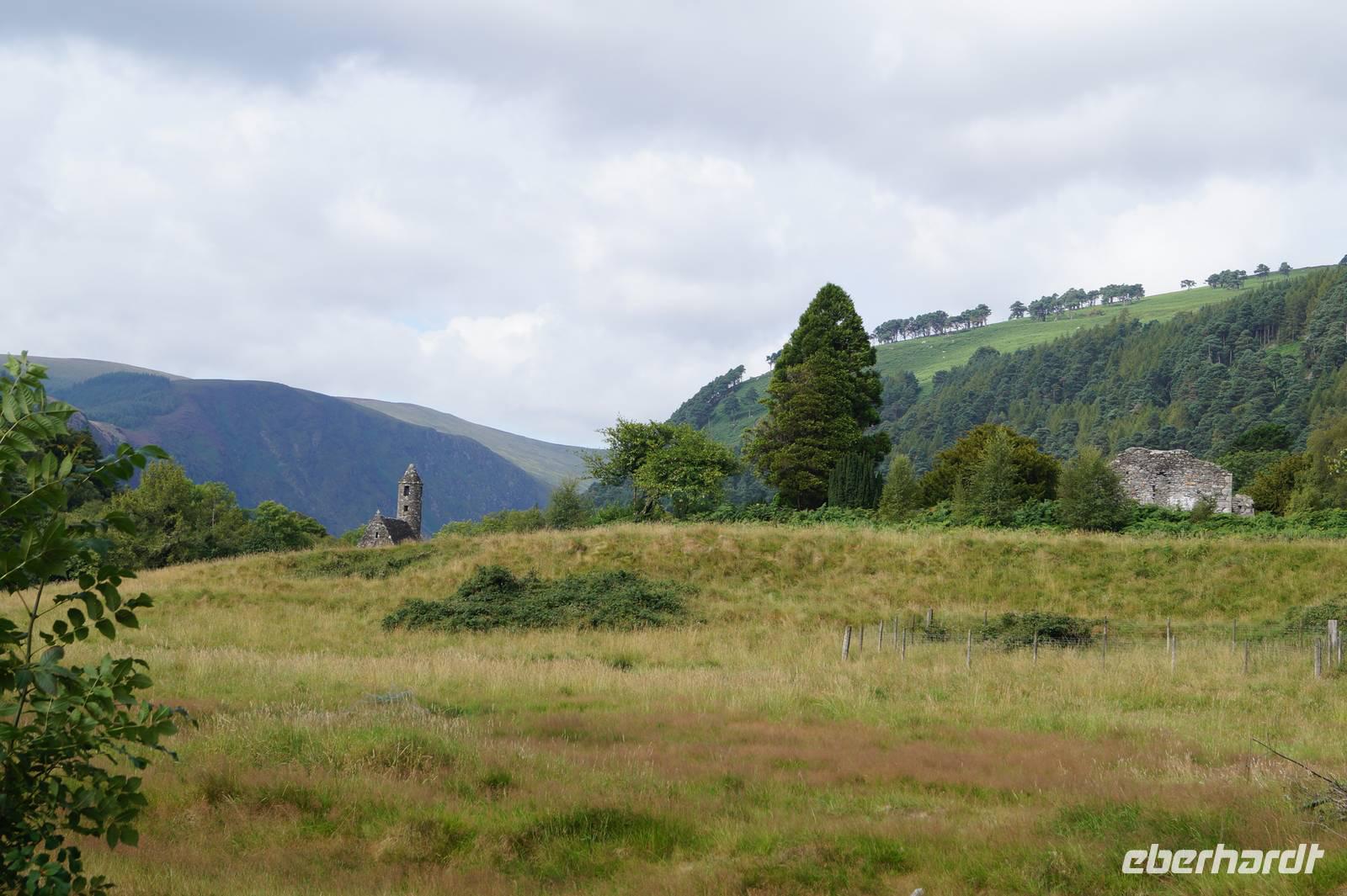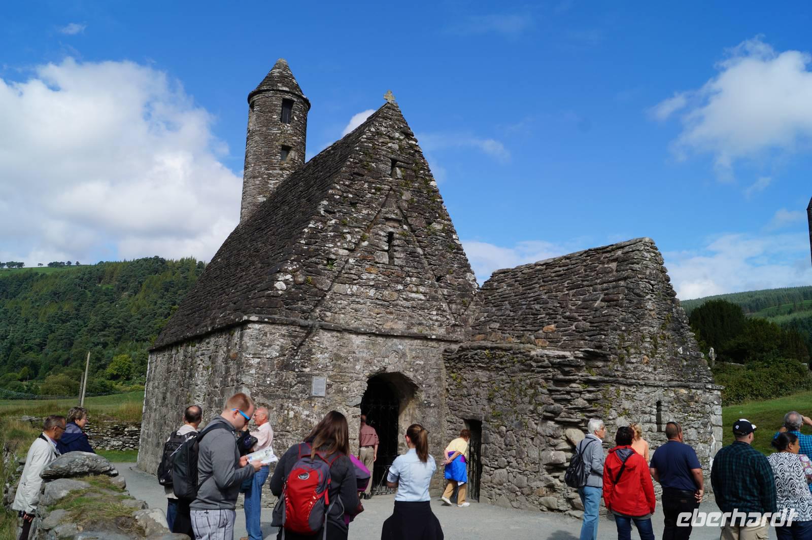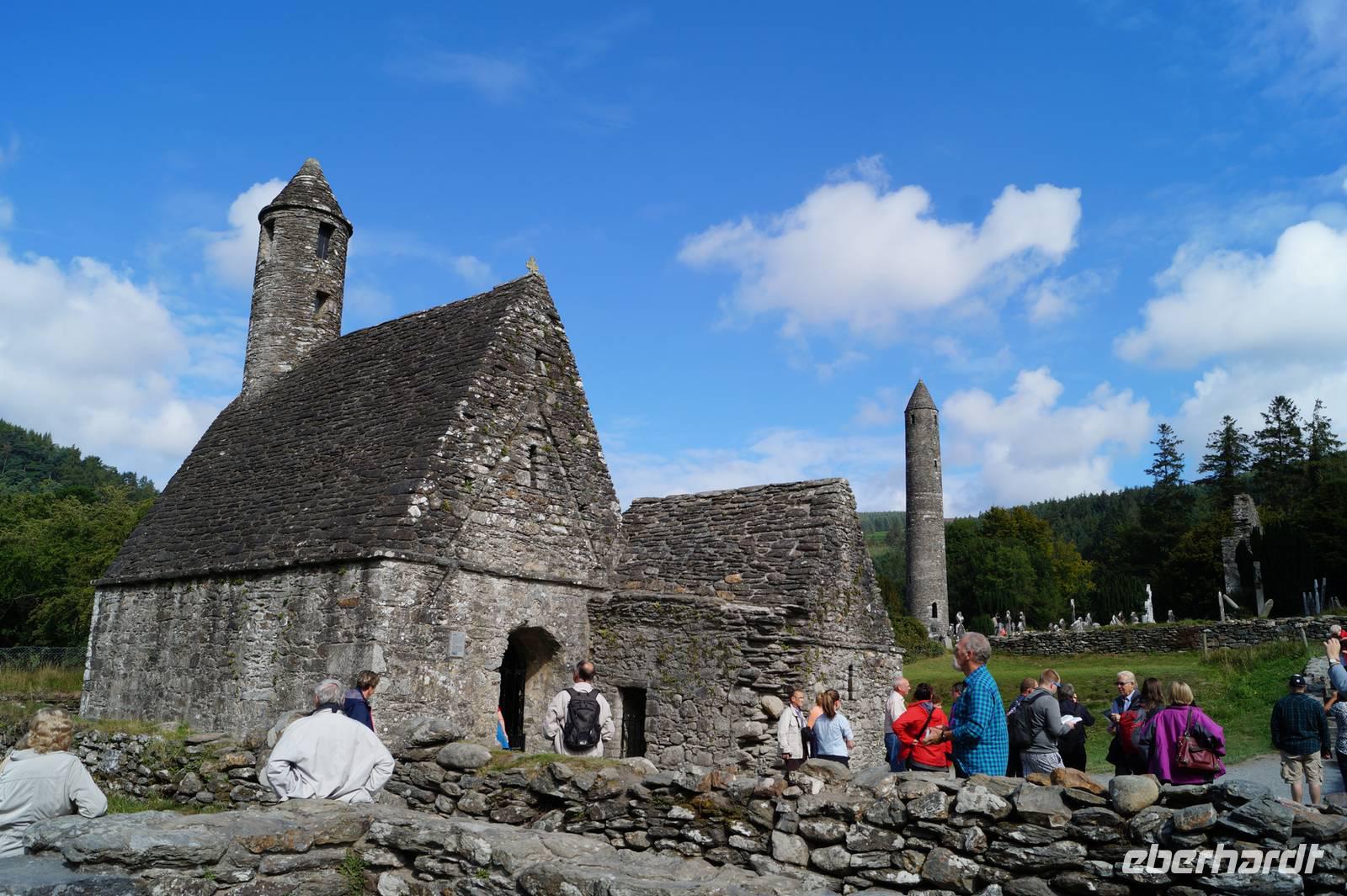 Dort genossen wir kurz die Ruhe am Upper Lake, stiegen den Pfad zum Poulanass-Wasserfall hoch und besuchten die mittelalterliche Klosterruine mit ihrer Peter-and-Pauls-Kathedrale und der Kirche, die wegen des kaminartigen Aussehens ihres Turms nur als Kevin's Kichen (Küche) bekannt ist.