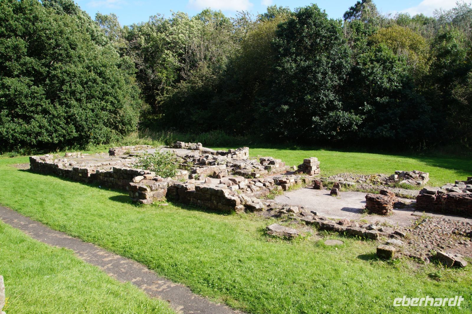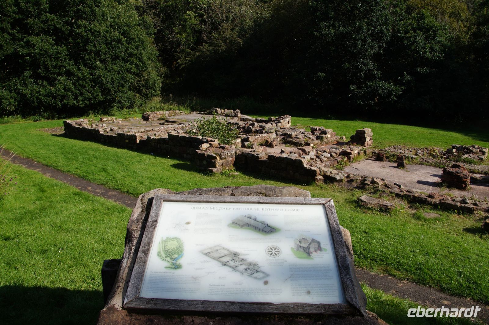 In der Zwischenzeit waren einige schon durch Hamilton gewandert und dann zum Chatelherault Country Park. Der Verfasser dieser Zeilen war am Hamilton Mausoleum vorbei in Richtung Motherwell gewandert, um dort die Ruinen eines römischen Badehauses zu sehen, dass an der Strecke zwischen dem Hadrians- und dem Antoninuswall nahe einem Militärlager errichtet wurde.