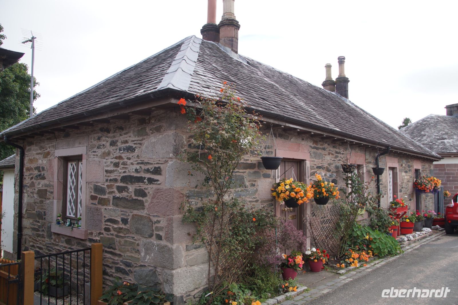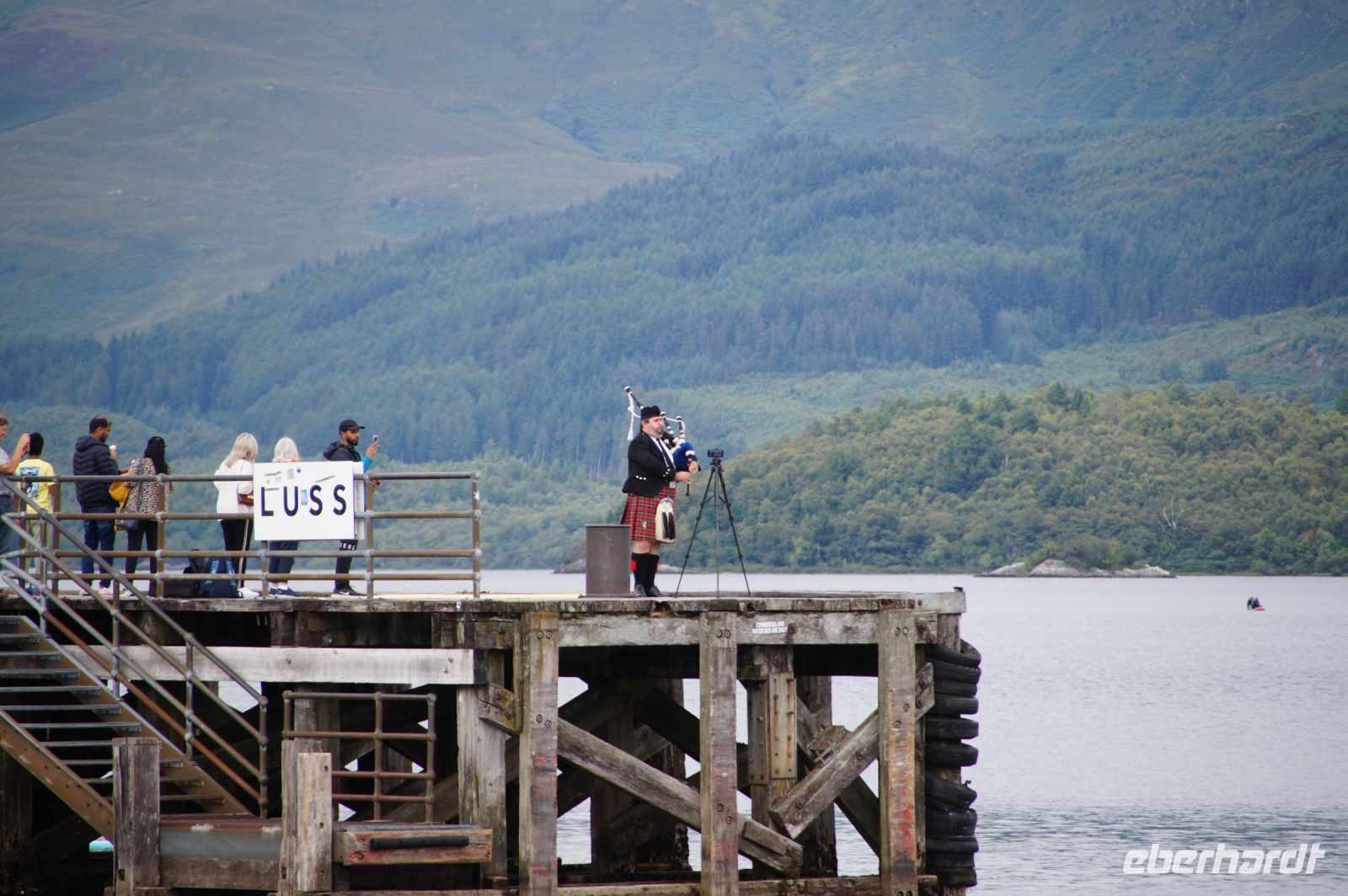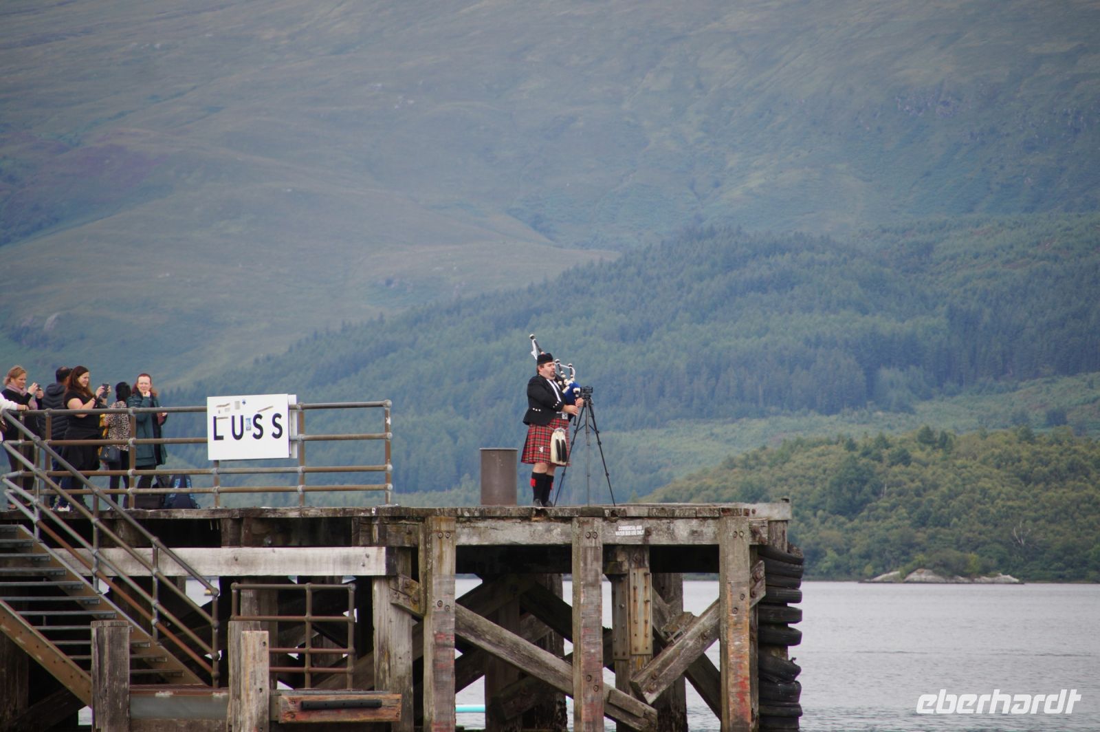 Wir fuhren nicht sehr weit, bereits in Luss stiegen wir wieder aus, einige besichtigten die Hogbacks, die angeblichen Wikingergräber auf dem Kirchhof, andere flanierten am Strand, liefen durch die Außenkulisse der Soap Opera "Take the High Road" oder hörten einem Dudelsackspieler am "Pier" von Luss zu.