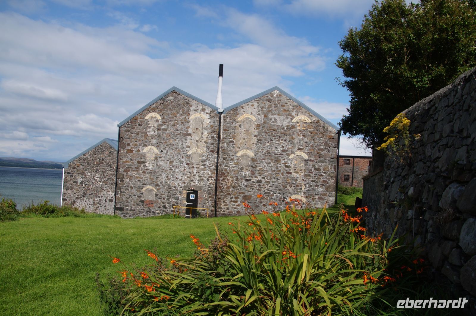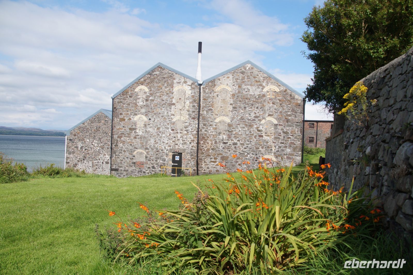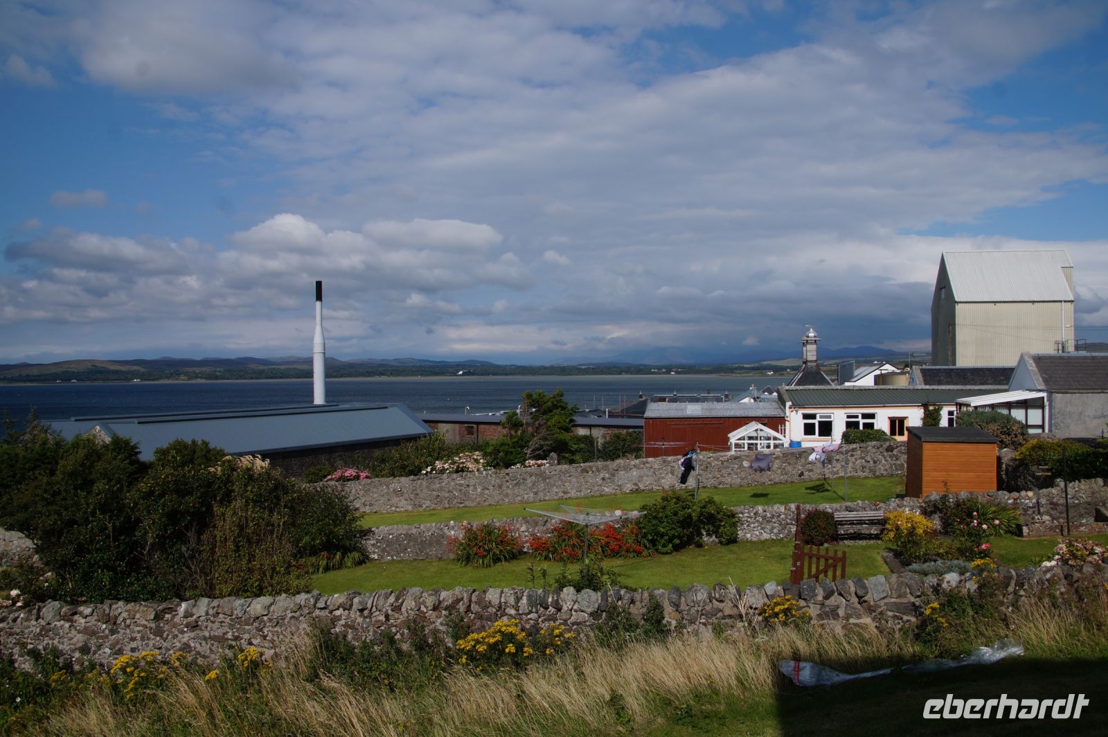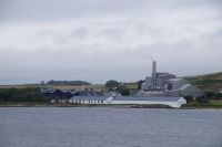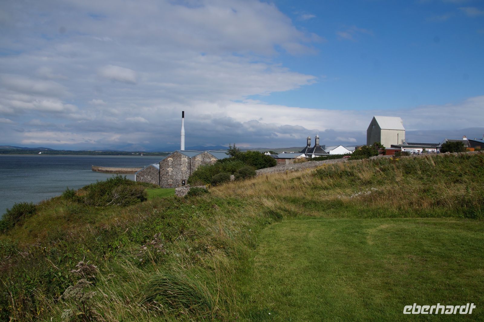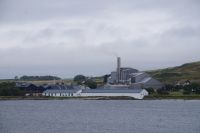 An der Einmündung zum Hafen von Port Ellen dann auch noch die gleichnamige ehemalige Destille, die als Darre einige der Destillerien der Insel mit Grist (geschrotetes Korn der gemälzten Gerste) versorgt. Irgendwann soll aber auch hier wieder der Betrieb des Whiskybrennens aufgenommen werden.