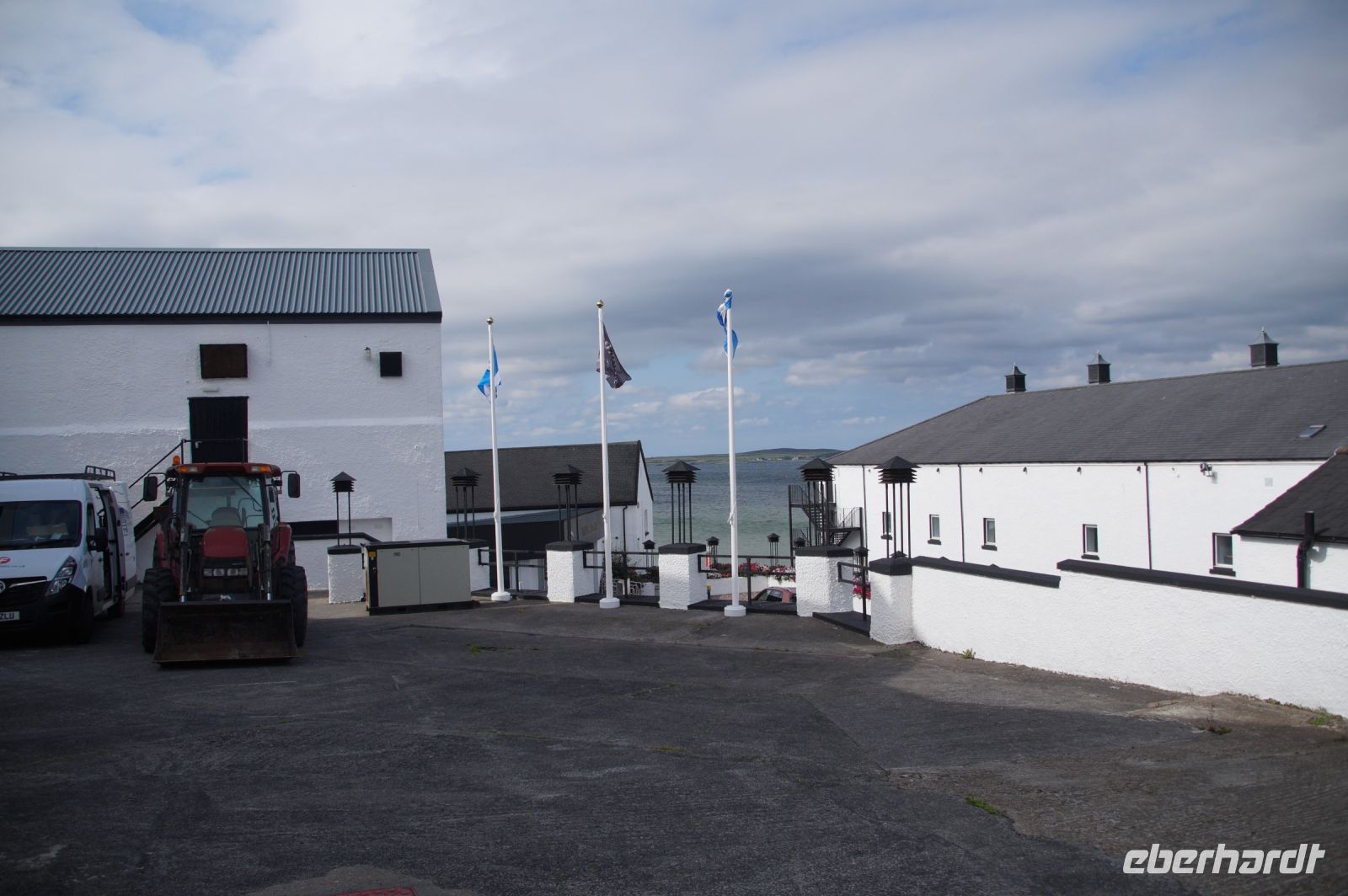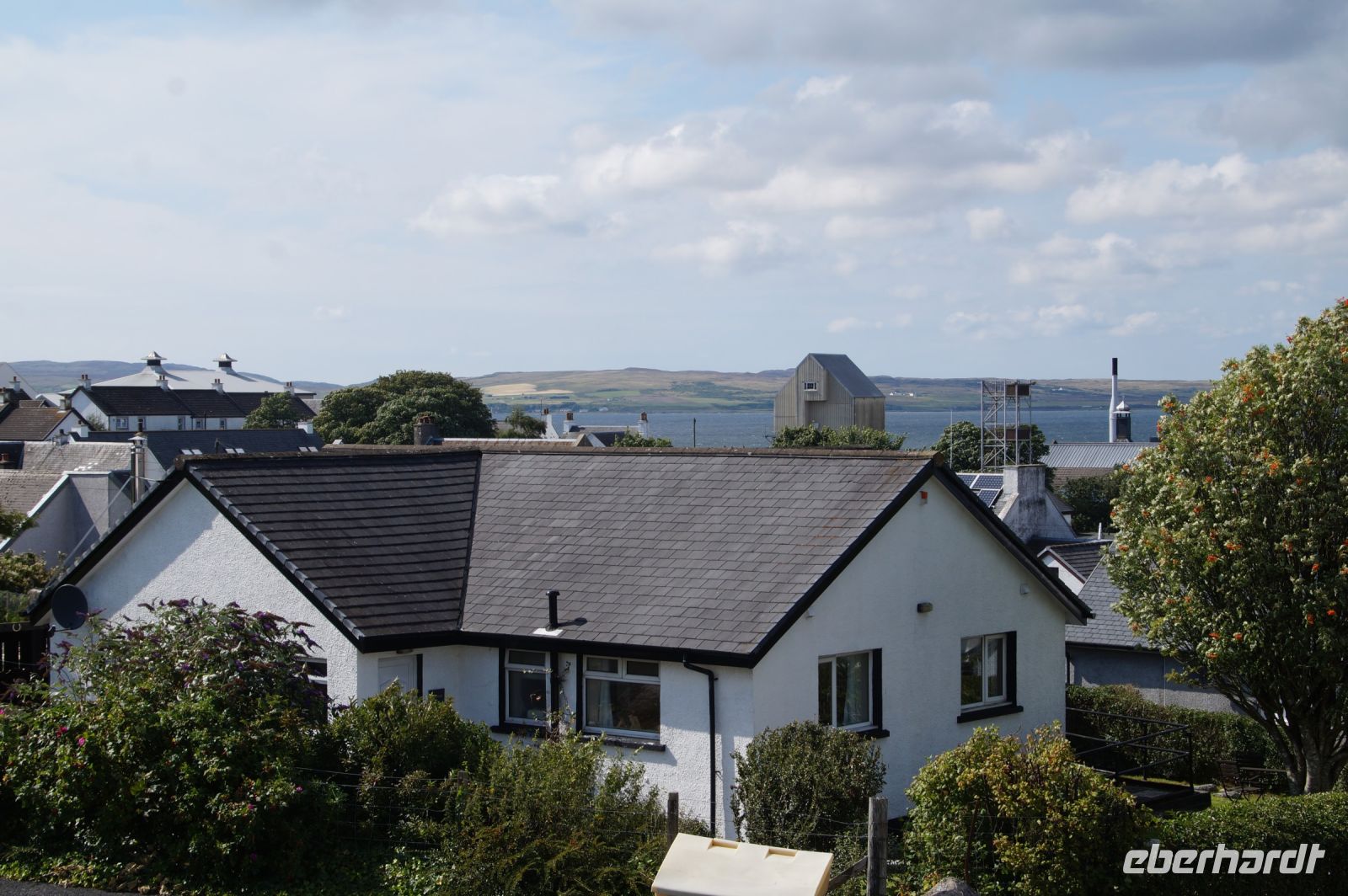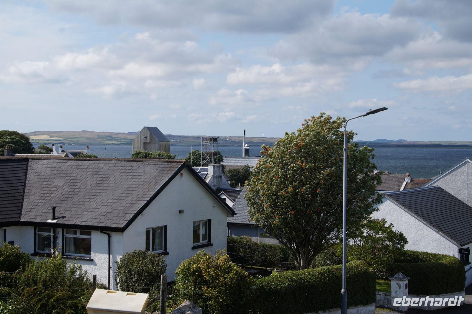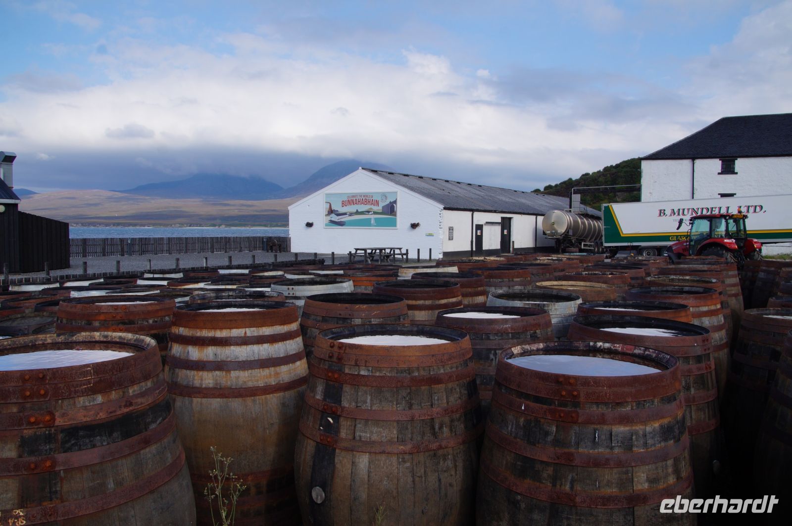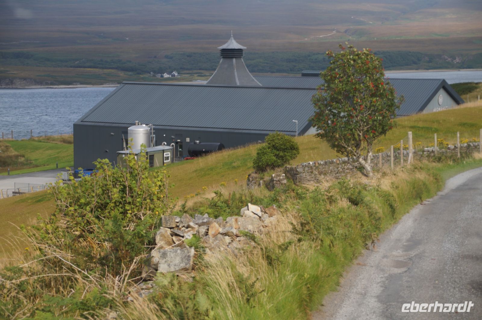 An der Einmündung zum Hafen von Port Ellen dann auch noch die gleichnamige ehemalige Destille, die als Darre einige der Destillerien der Insel mit Grist (geschrotetes Korn der gemälzten Gerste) versorgt. Irgendwann soll aber auch hier wieder der Betrieb des Whiskybrennens aufgenommen werden.