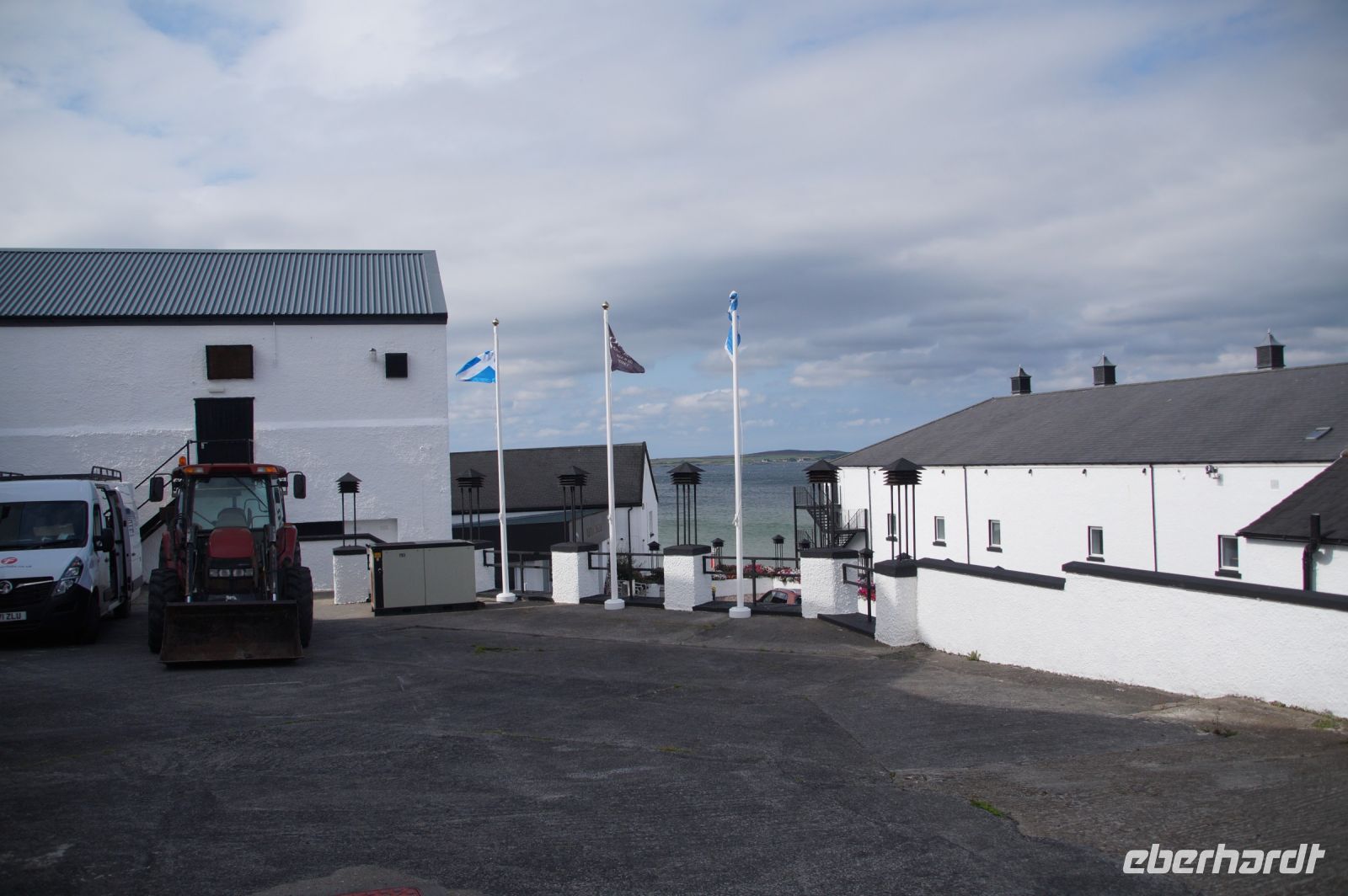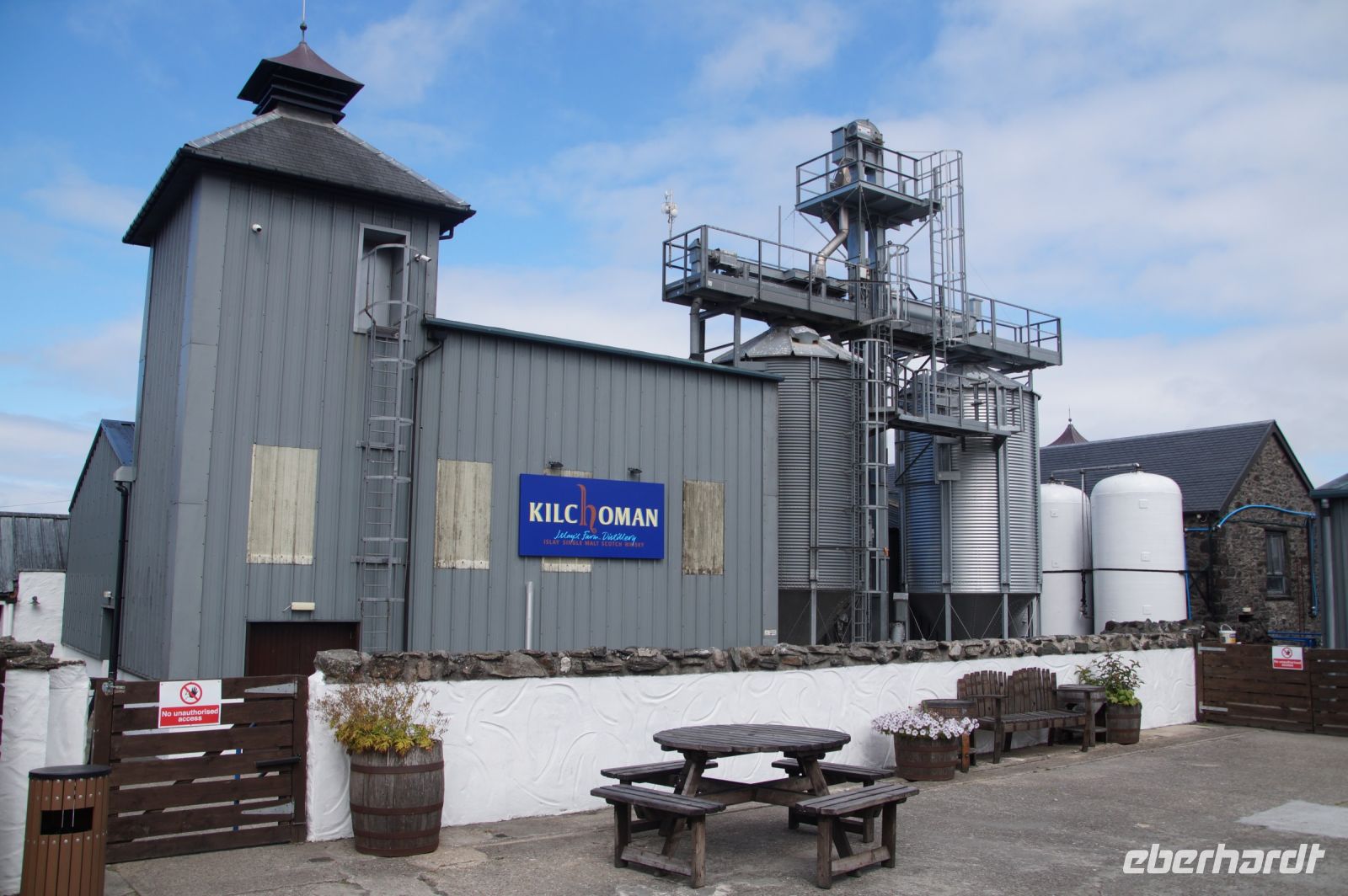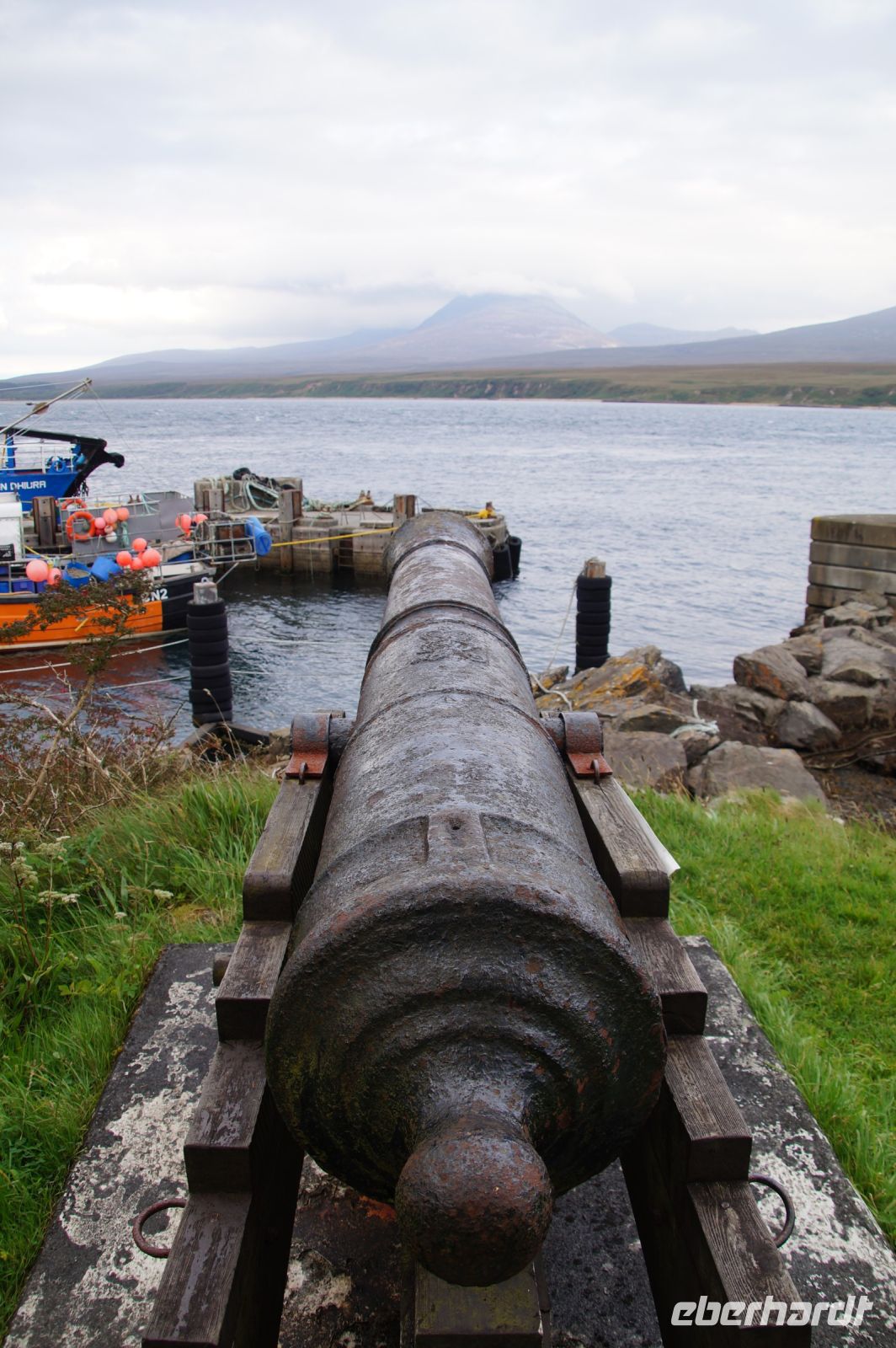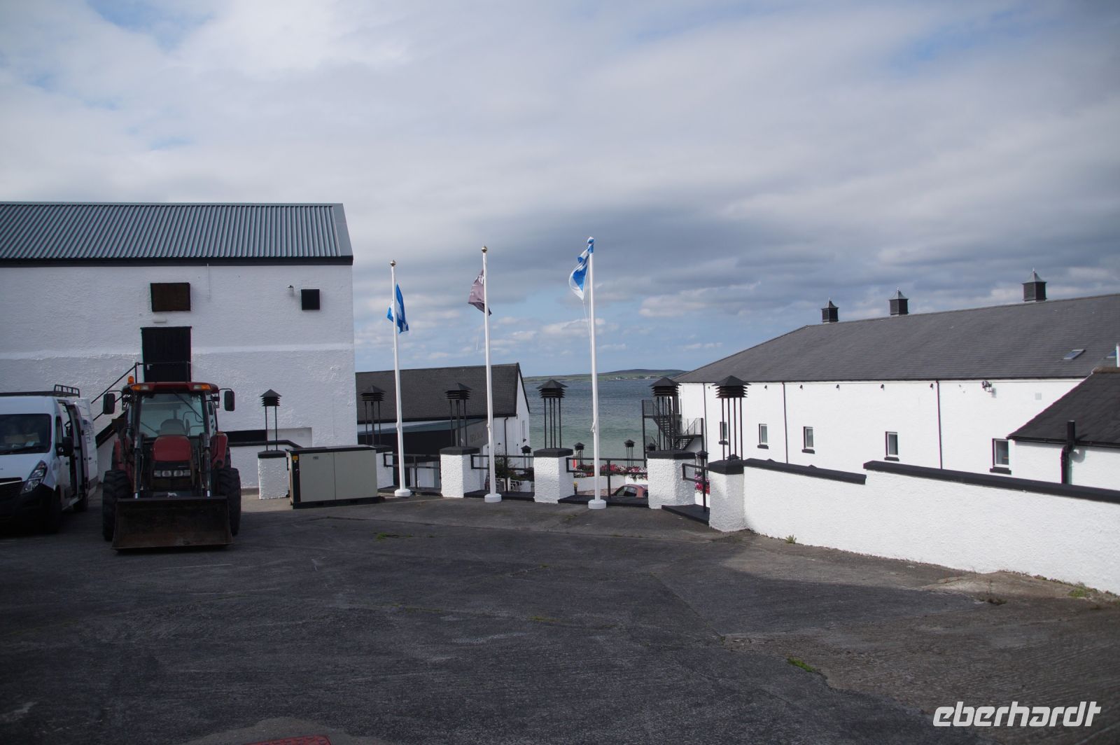 An der Einmündung zum Hafen von Port Ellen dann auch noch die gleichnamige ehemalige Destille, die als Darre einige der Destillerien der Insel mit Grist (geschrotetes Korn der gemälzten Gerste) versorgt. Irgendwann soll aber auch hier wieder der Betrieb des Whiskybrennens aufgenommen werden.