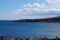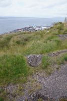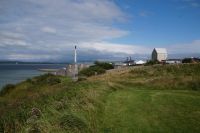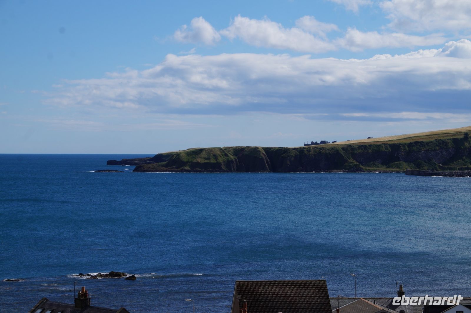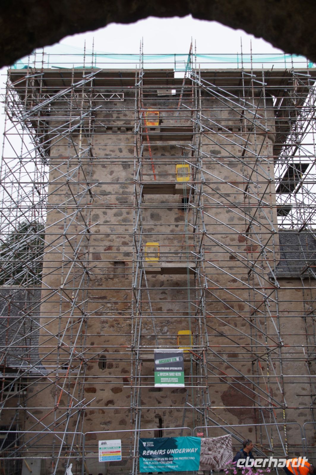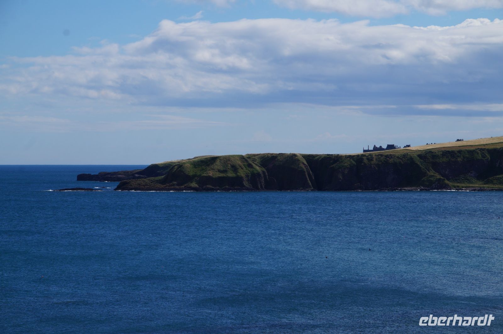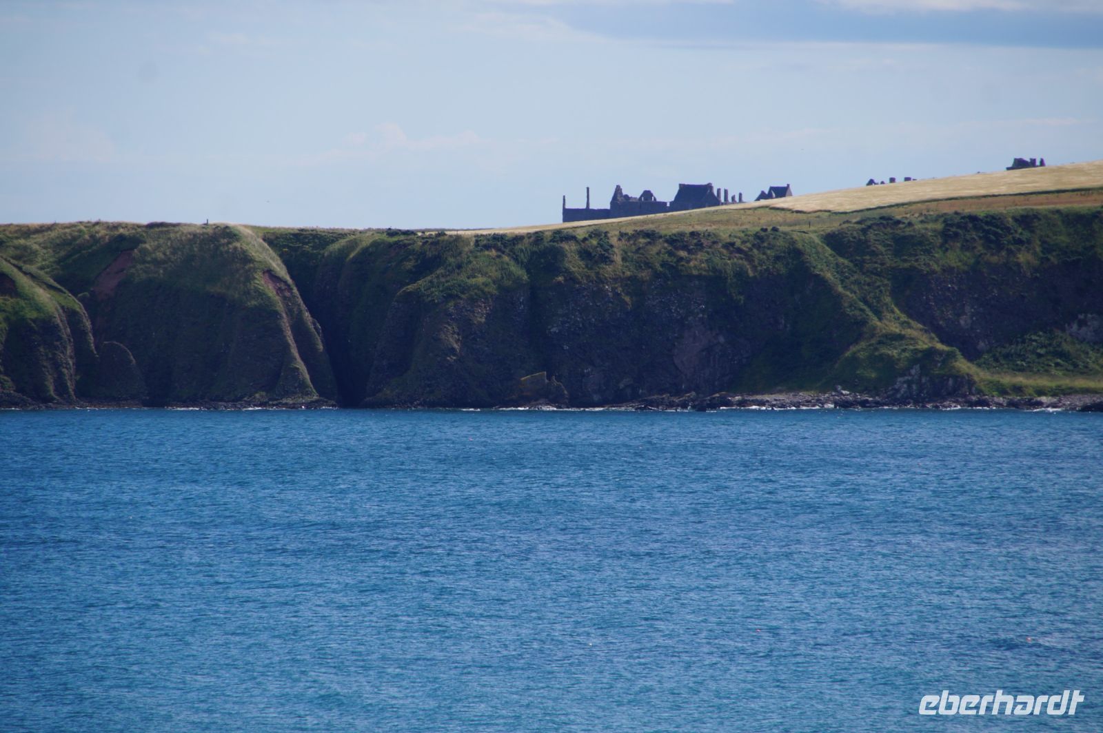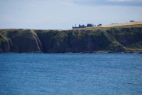 Jetzt ging es in Richtung von Stonehaven an die Küste, denn südlich von Stonehaven liegt auf einem ins Meer hineinagenden Felsvorsprung die geschichtsträchtige Burg Donnottar Castle, die mal als Brückkopf, mal als Gefängnis diente. Hierzu muss man zunächst hinabsteigen, fast bis hinunter zum Strand, um dann wieder hinaufzusteigen. Es kamen nicht alle mit in das weitläufige Gelände dieser natürlichen Burg. Manche blieben einfach auf der Klippe sitzen und genossen die Aussicht, den blauen Himmel und das gute Wetter. Leider hat hier meine Kamera versagt.