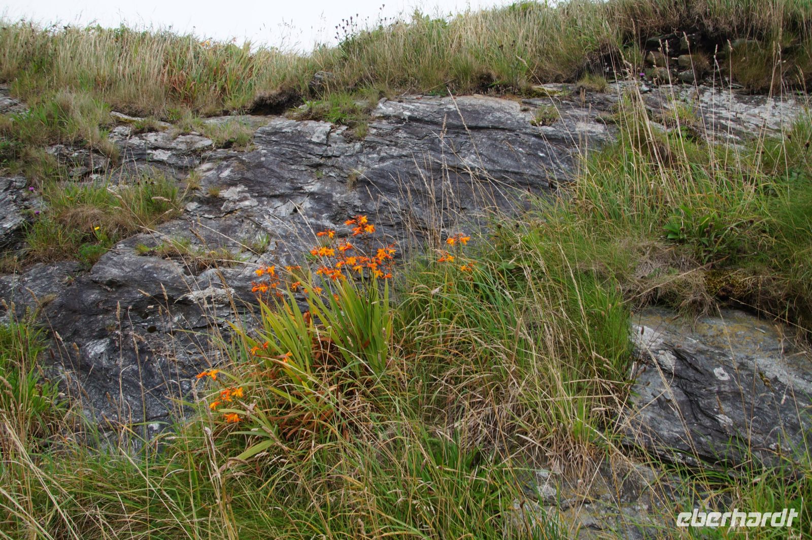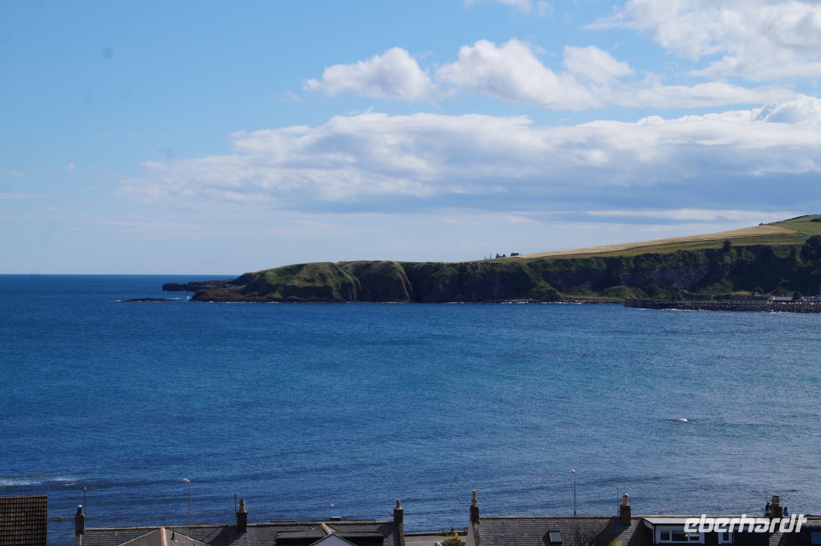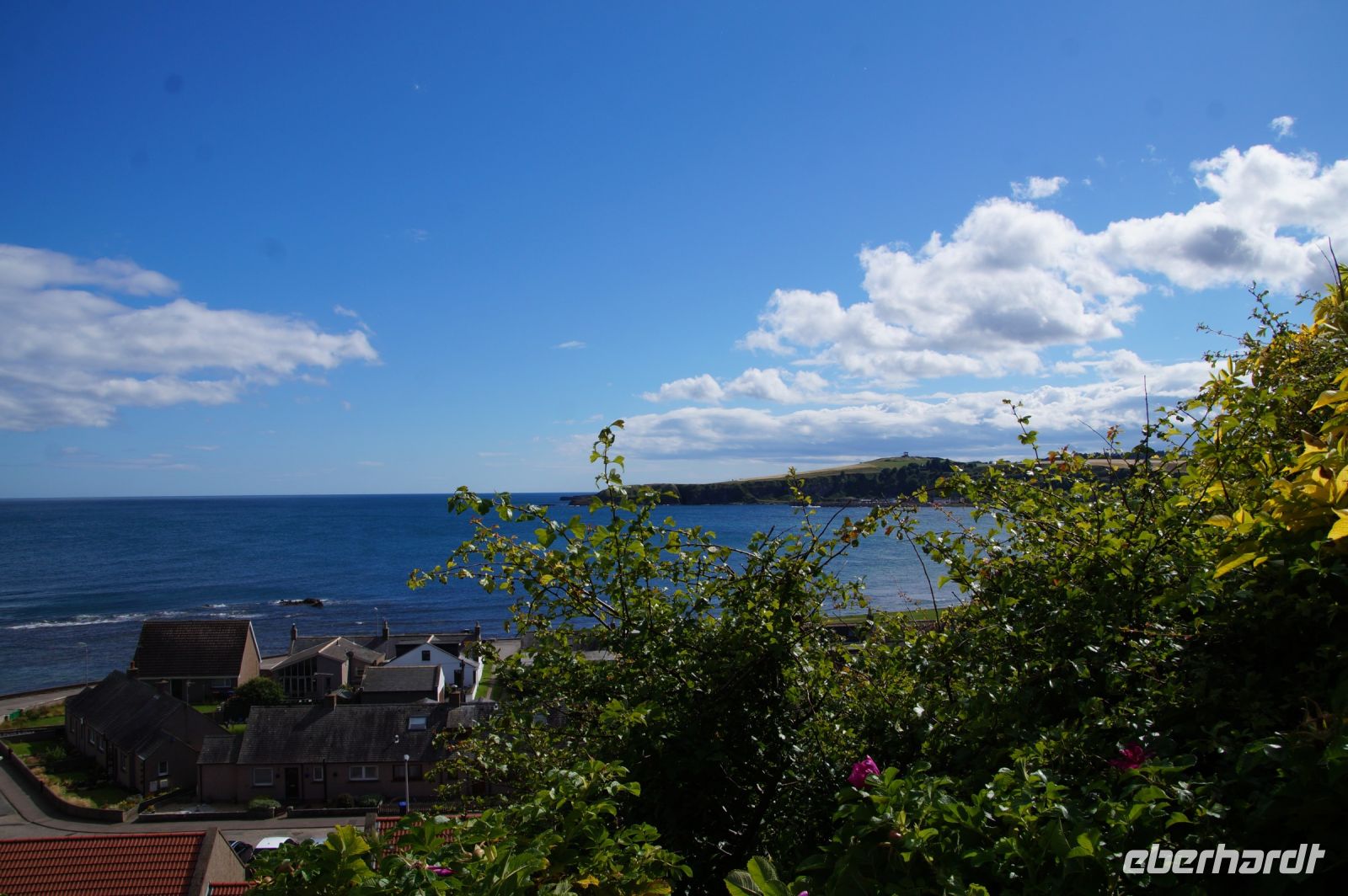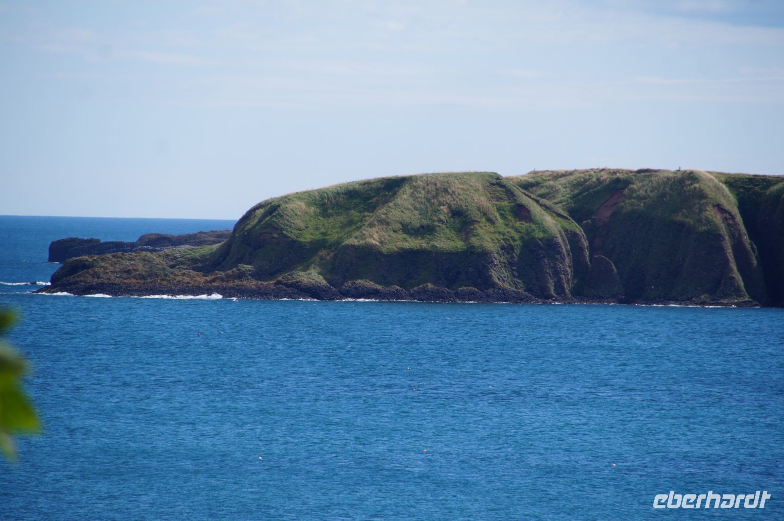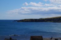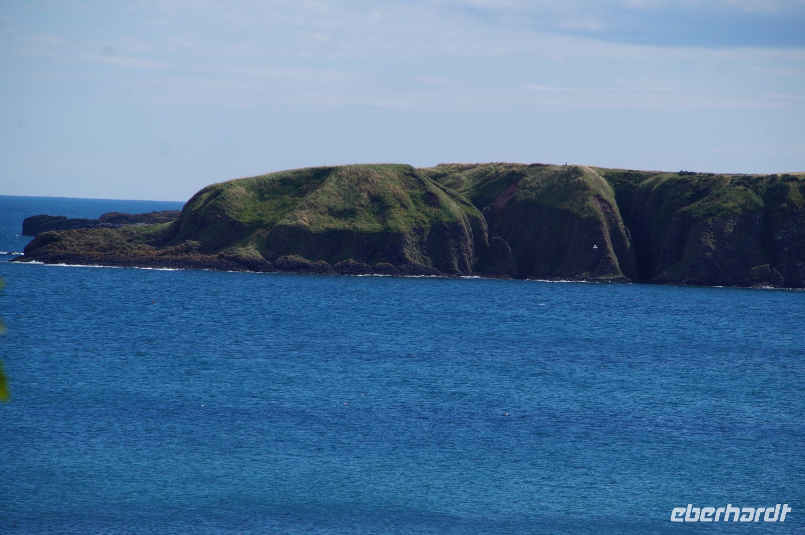 Jetzt ging es in Richtung von Stonehaven an die Küste, denn südlich von Stonehaven liegt auf einem ins Meer hineinagenden Felsvorsprung die geschichtsträchtige Burg Donnottar Castle, die mal als Brückkopf, mal als Gefängnis diente. Hierzu muss man zunächst hinabsteigen, fast bis hinunter zum Strand, um dann wieder hinaufzusteigen. Es kamen nicht alle mit in das weitläufige Gelände dieser natürlichen Burg. Manche blieben einfach auf der Klippe sitzen und genossen die Aussicht, den blauen Himmel und das gute Wetter. Leider hat hier meine Kamera versagt.