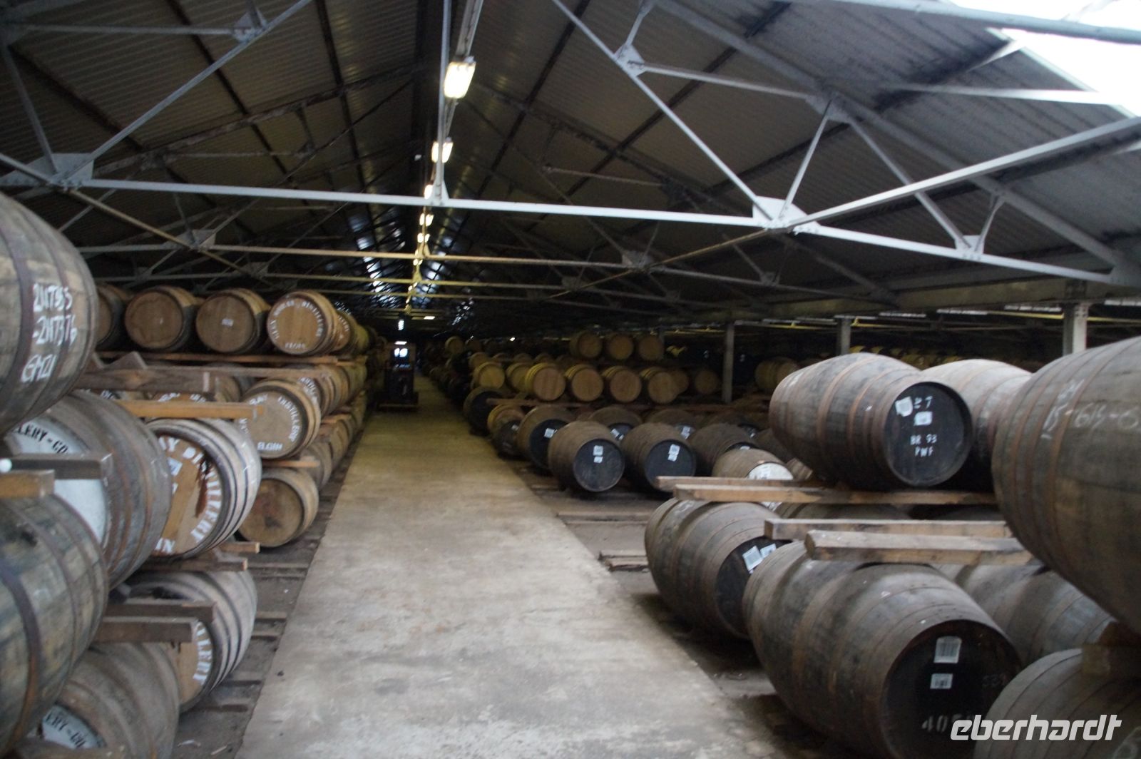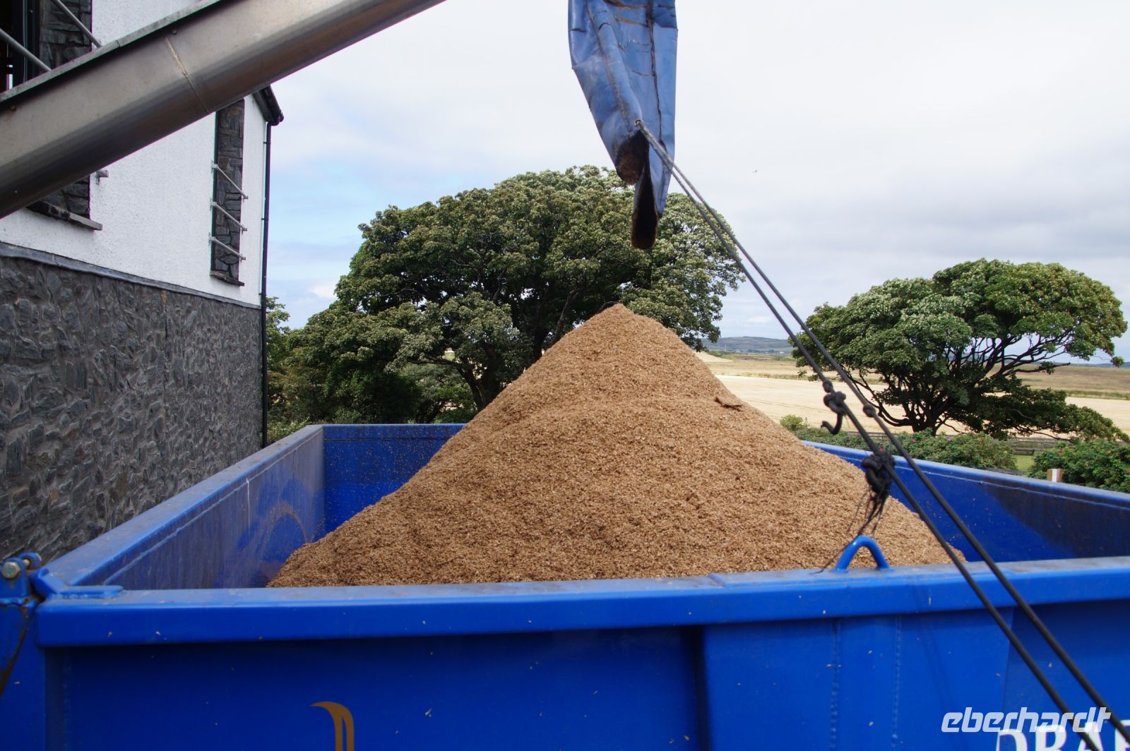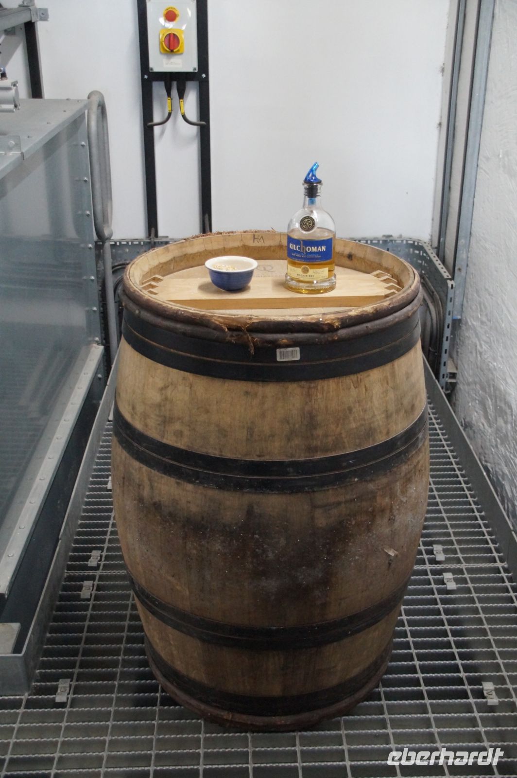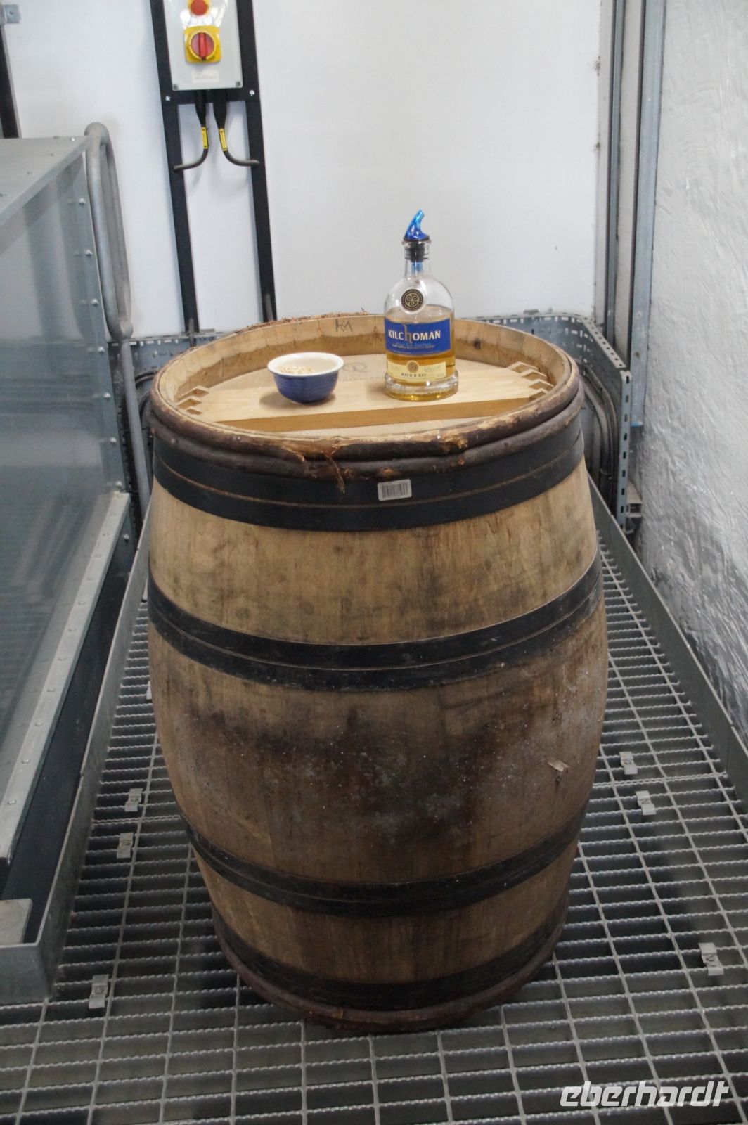 In Kilchoman wird wirklich alles selber gemacht, so standen wir vor (und z.T. sogar auf) der zu keimenden Gerste (Malting, Mälzen) und die junge Dame aus dem Vistor Center, die sich unser angenommen hatte, zeigte uns die verschiedenen Keimungsgrade der Gerstenkörner. Anschließend führte sie uns am Torfofen vorbei in dem mit zu einem Teil getrockneten, zu einem Teil nassen Torf (peat) die gekeimte Gerste gedarrt wurde. Der Torf würde auf der Insel selbst gestochen. (Große Teile Schottlands sind Torfmoore, allerdings wird das Torfstechen immer weiter eingeschränkt, mal abgesehen davon, dass ein Torffeuer wenig angenehm ist, bindet Torf Kohlenstoff und ist daher als Mittel gegen den Klimawandel interessant - und gibt ihn naturgemäß ab, wenn er verbrannt wird, nur schmeckt der Whisky aus über heißer Luft gedarrtem Grist ganz anders, als der über Torf gedarrtem Grist, was eben den Markenkern einiger Whiskies ausmacht, gerade für Liebhaber des rauheren getorften Whiskies!).