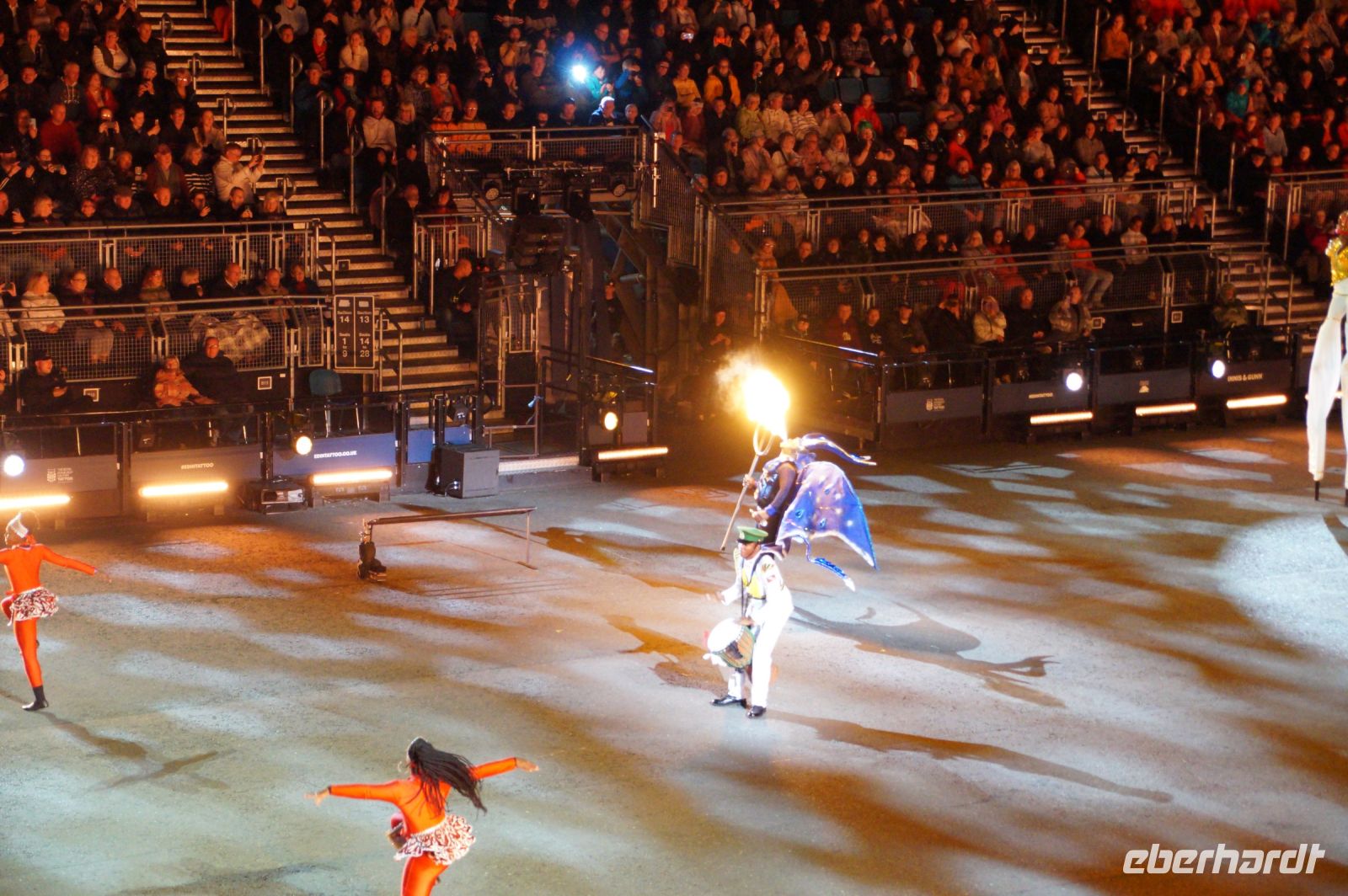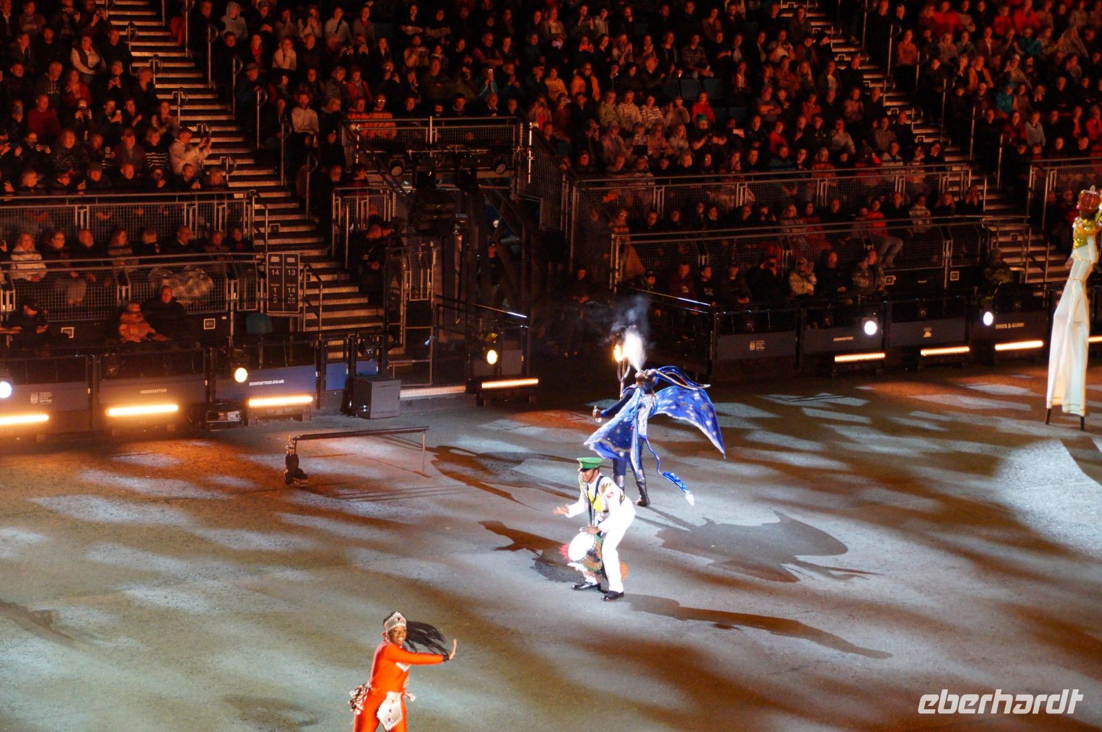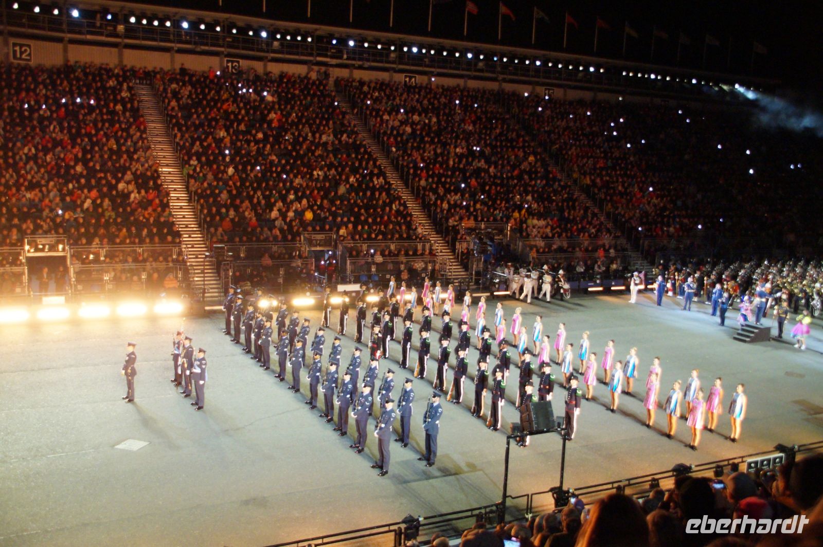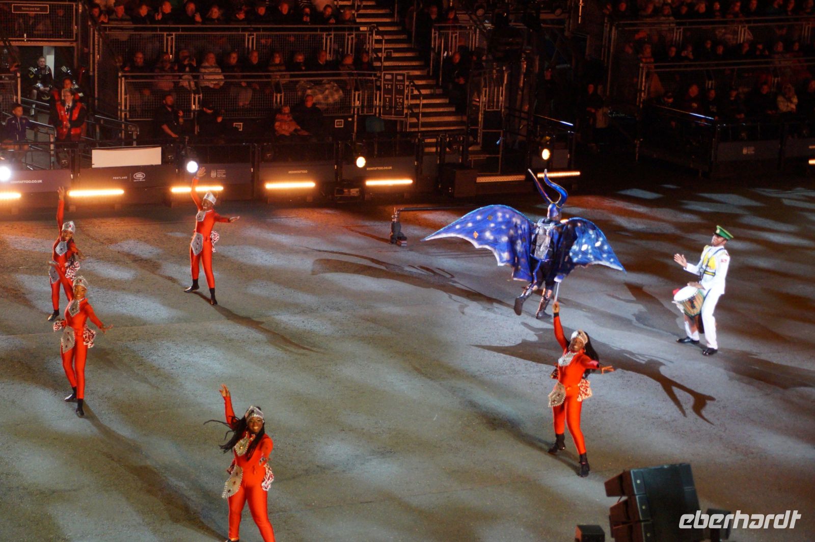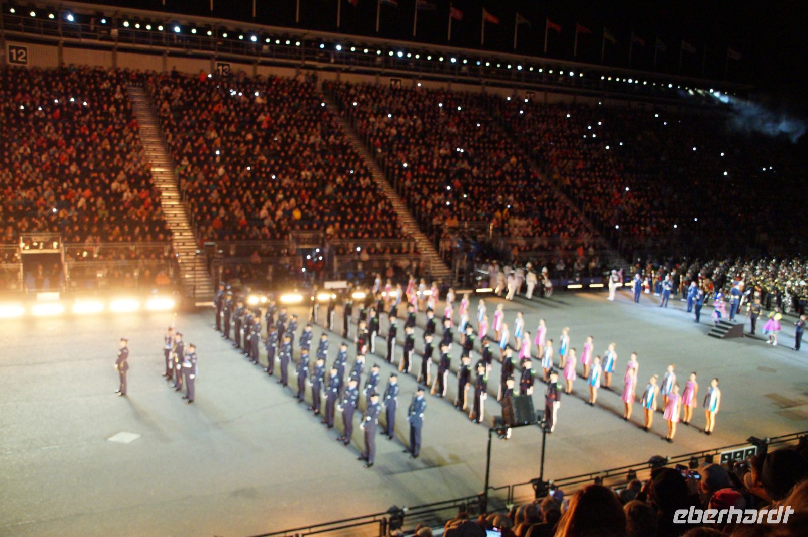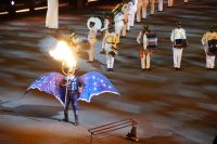 Das Thema des Royal Military Tattoo (RMT) in diesem Jahr hieß Stories (Geschichten) in erste Linie ging es um die Royal Air Force, weswegen der Start der Veranstaltung auch durch den Überflug einesd Jagdbombers initiiert wurde. Ich glaube, das ging so schnell, dass viele das gar nicht mal mitbekamen.