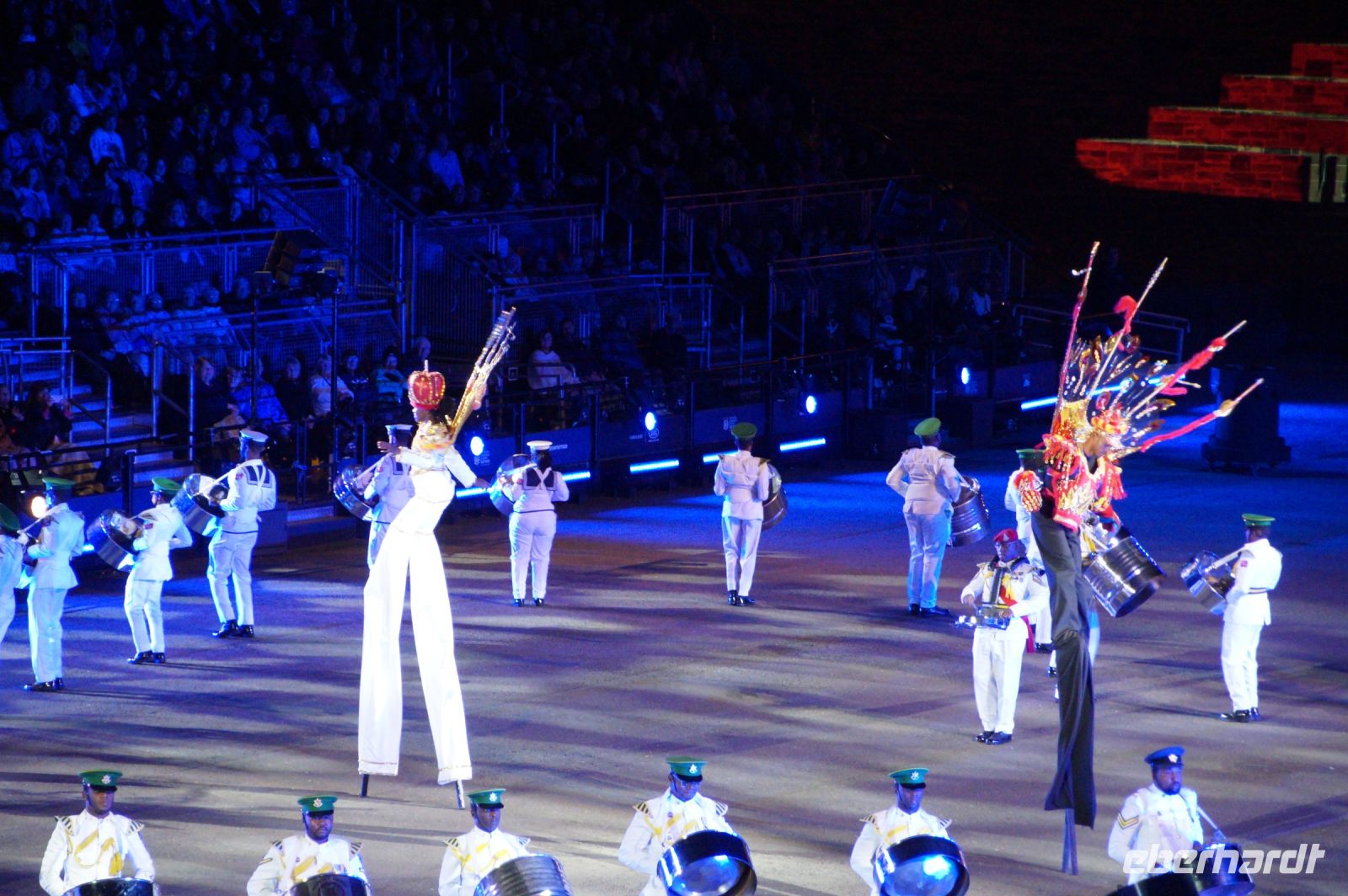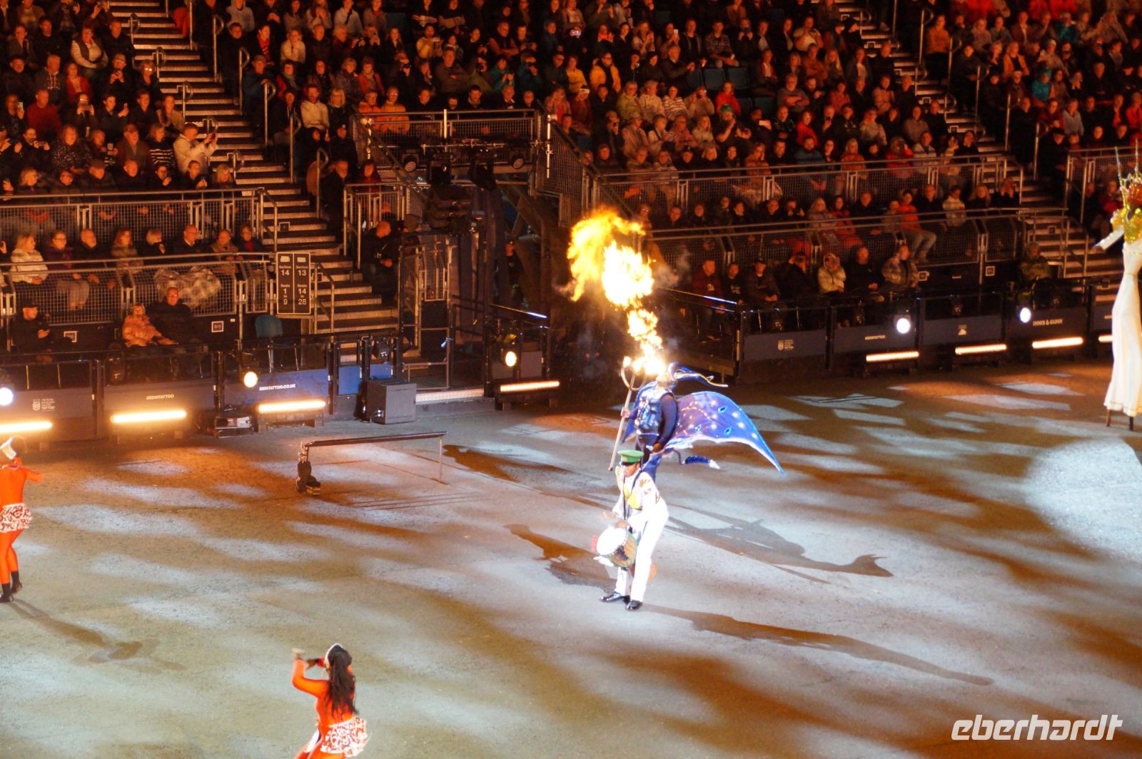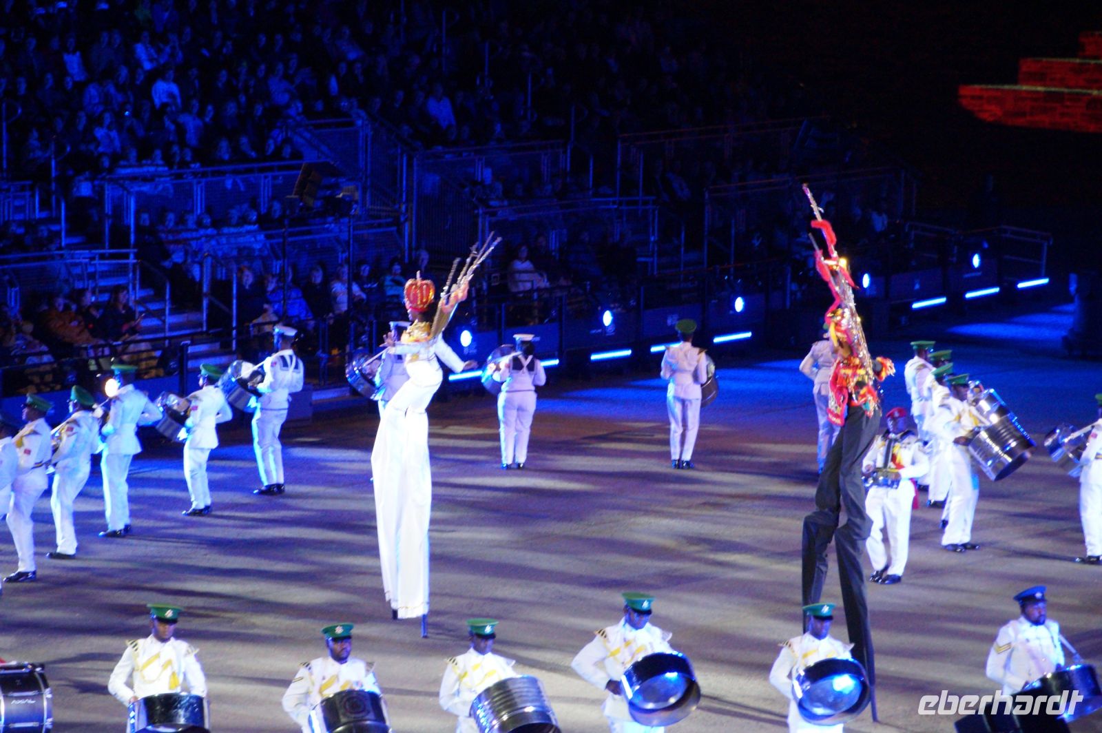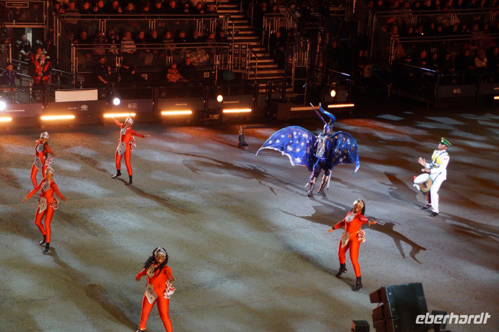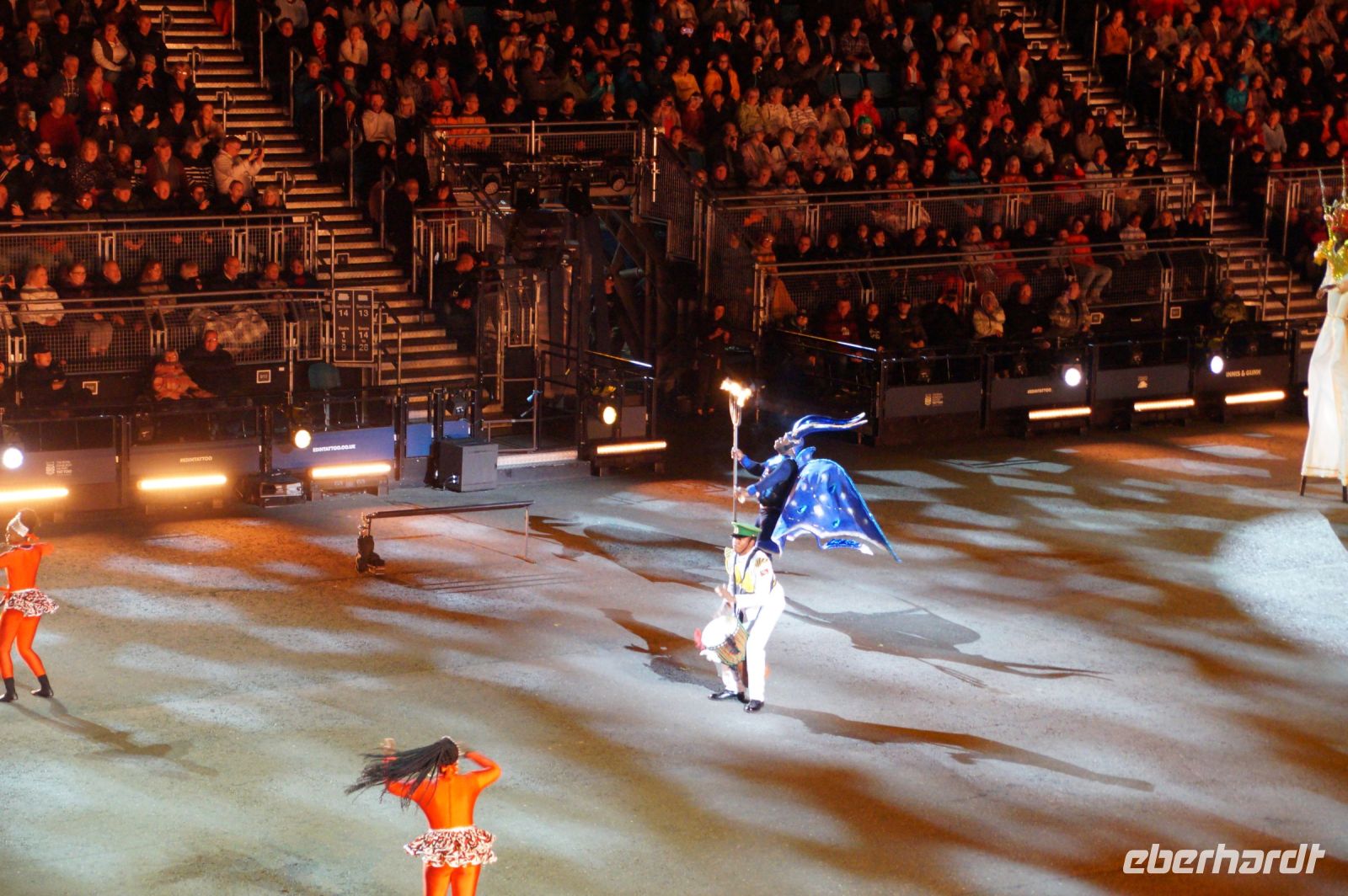 Das Thema des Royal Military Tattoo (RMT) in diesem Jahr hieß Stories (Geschichten) in erste Linie ging es um die Royal Air Force, weswegen der Start der Veranstaltung auch durch den Überflug einesd Jagdbombers initiiert wurde. Ich glaube, das ging so schnell, dass viele das gar nicht mal mitbekamen.