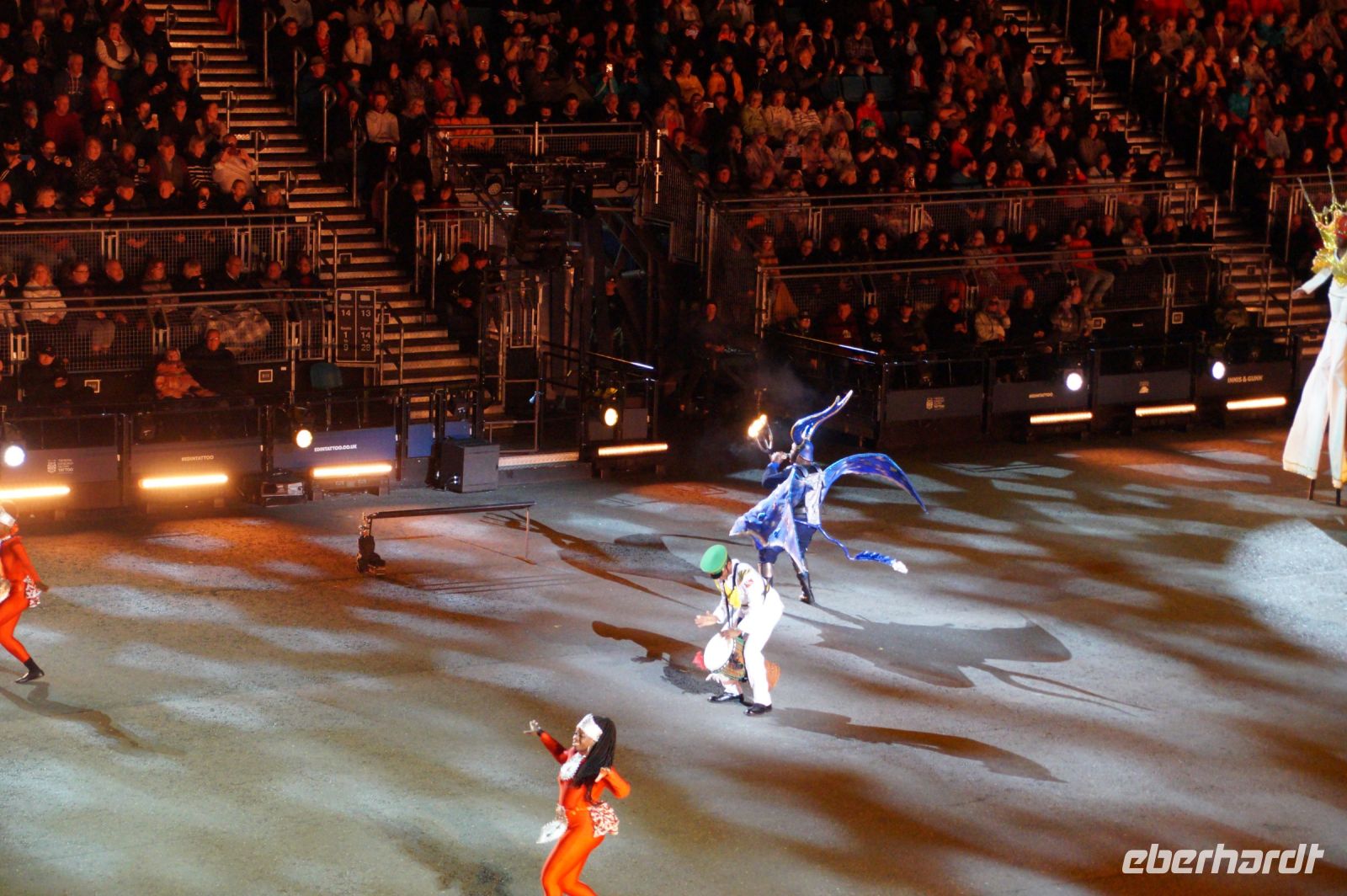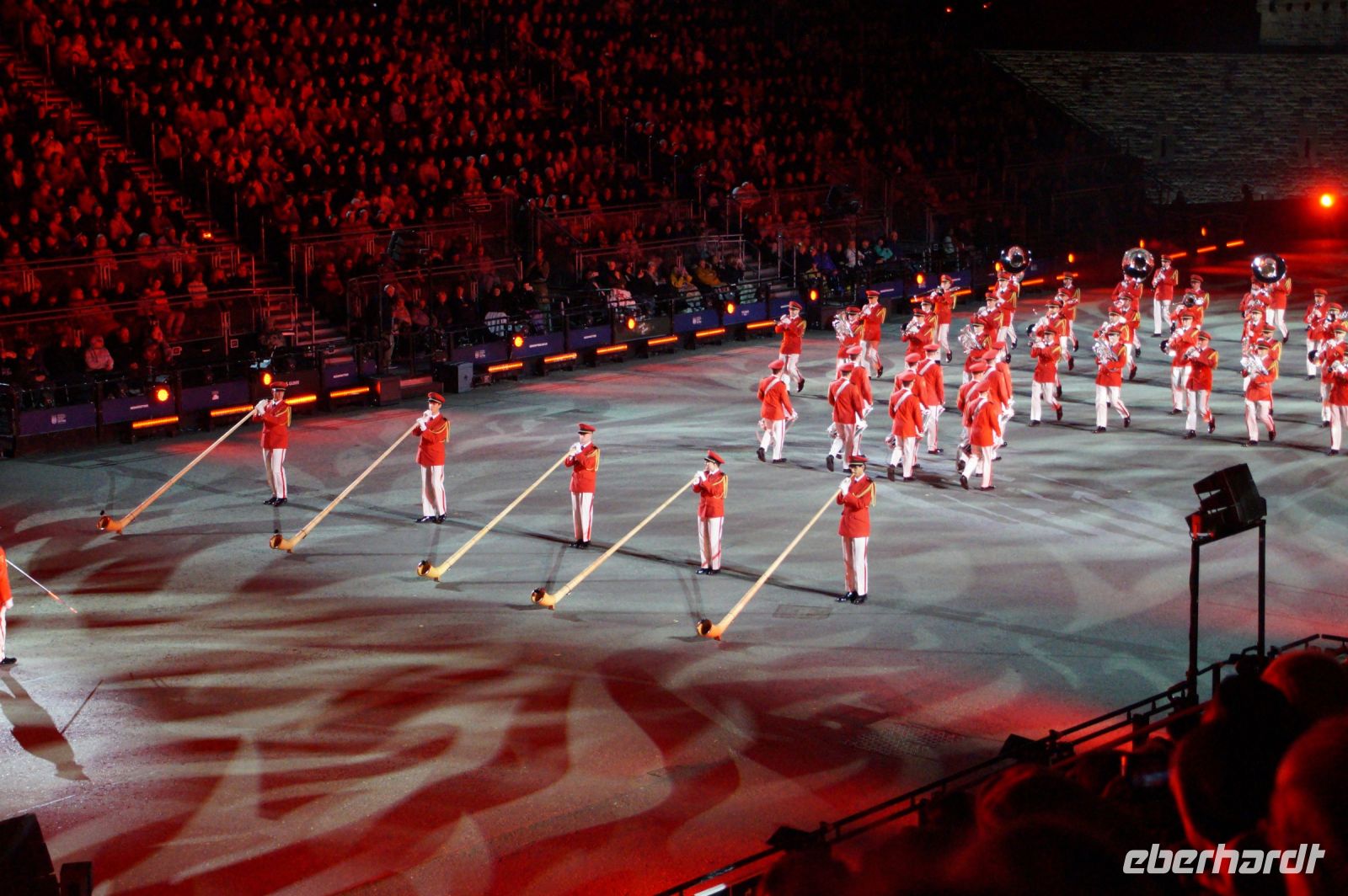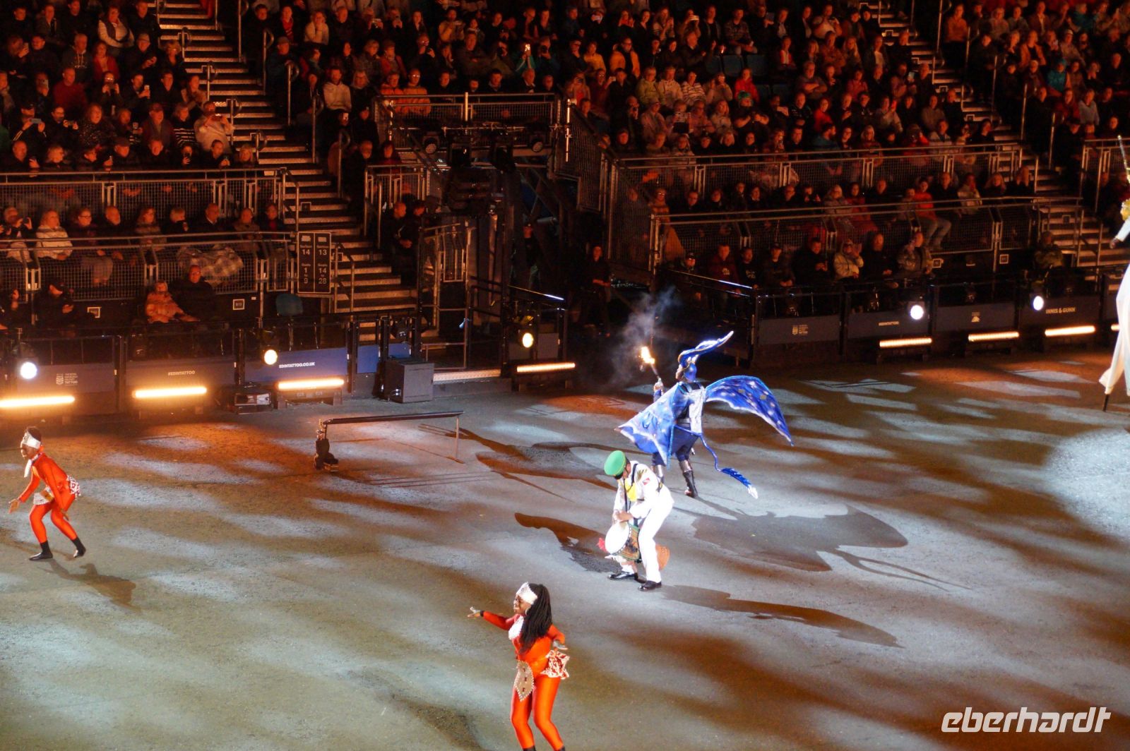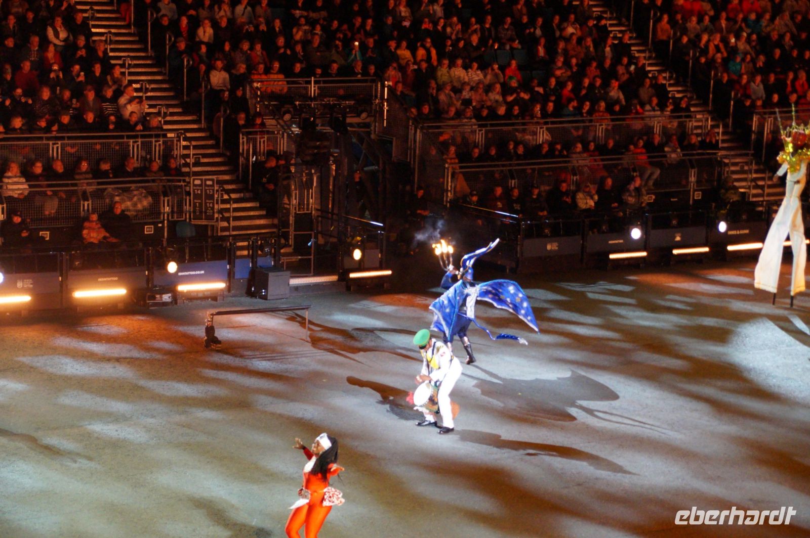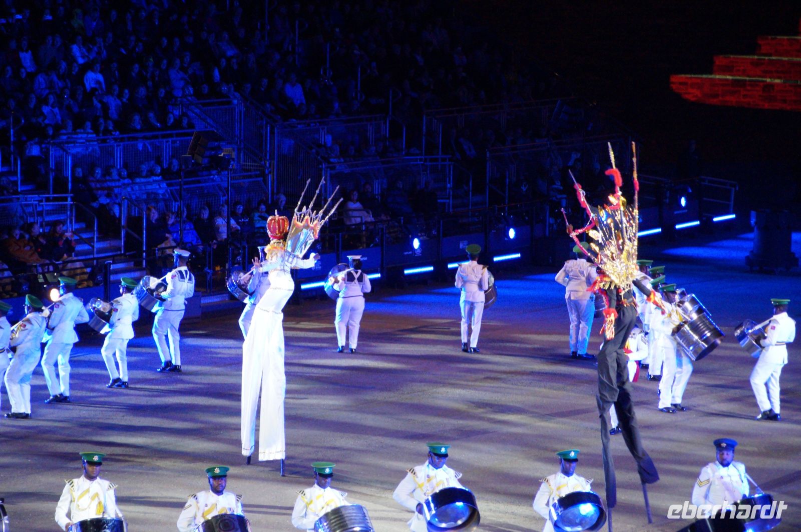 Das Thema des Royal Military Tattoo (RMT) in diesem Jahr hieß Stories (Geschichten) in erste Linie ging es um die Royal Air Force, weswegen der Start der Veranstaltung auch durch den Überflug einesd Jagdbombers initiiert wurde. Ich glaube, das ging so schnell, dass viele das gar nicht mal mitbekamen.