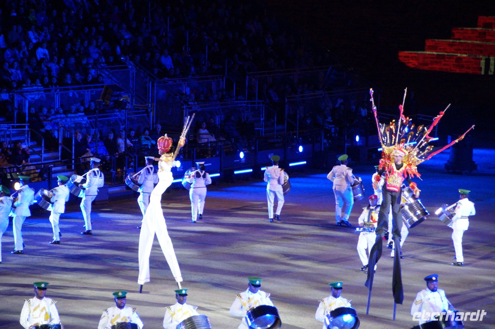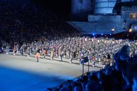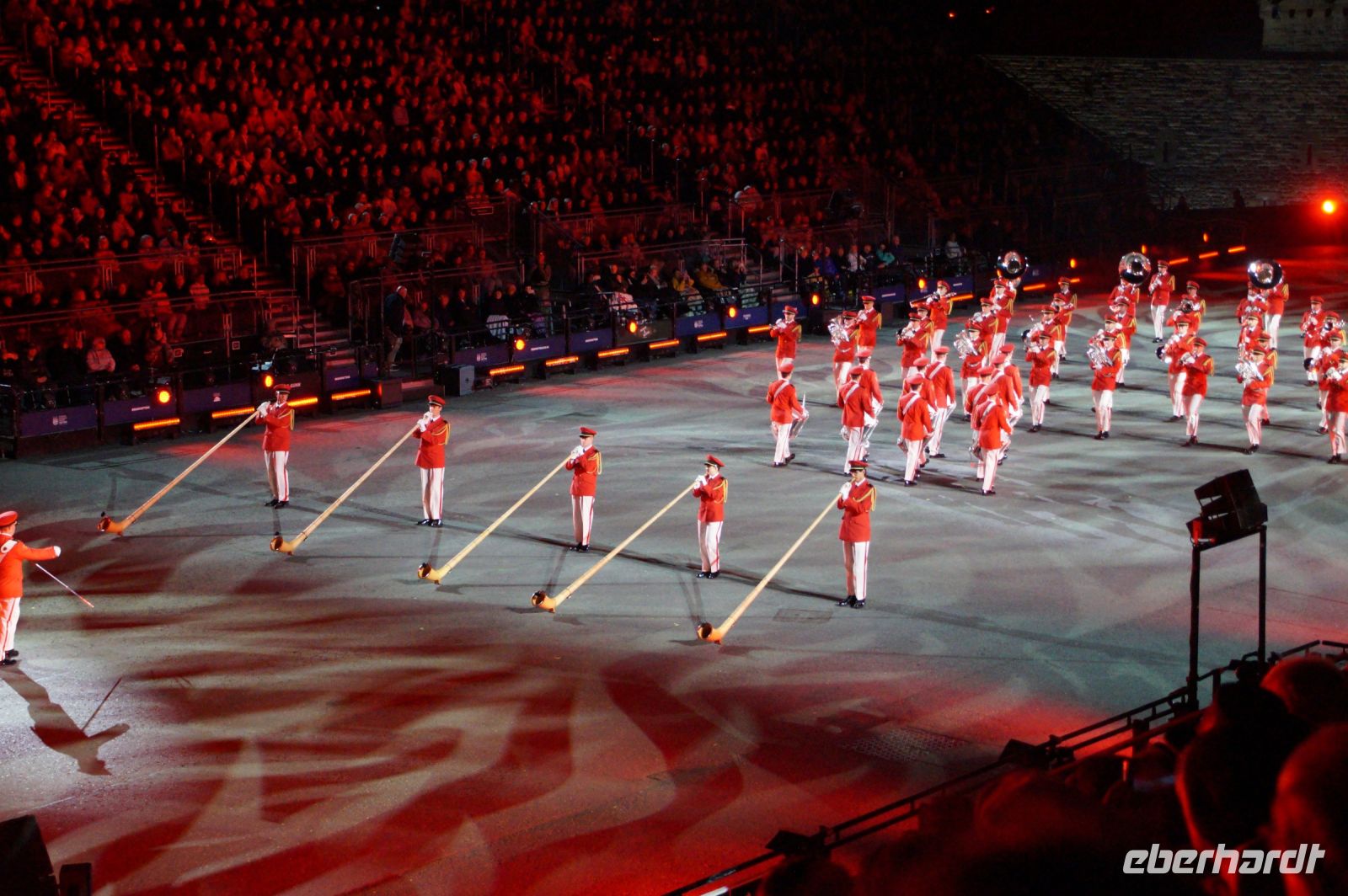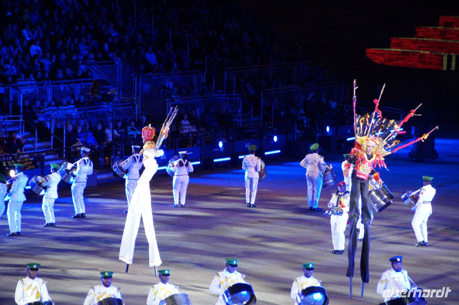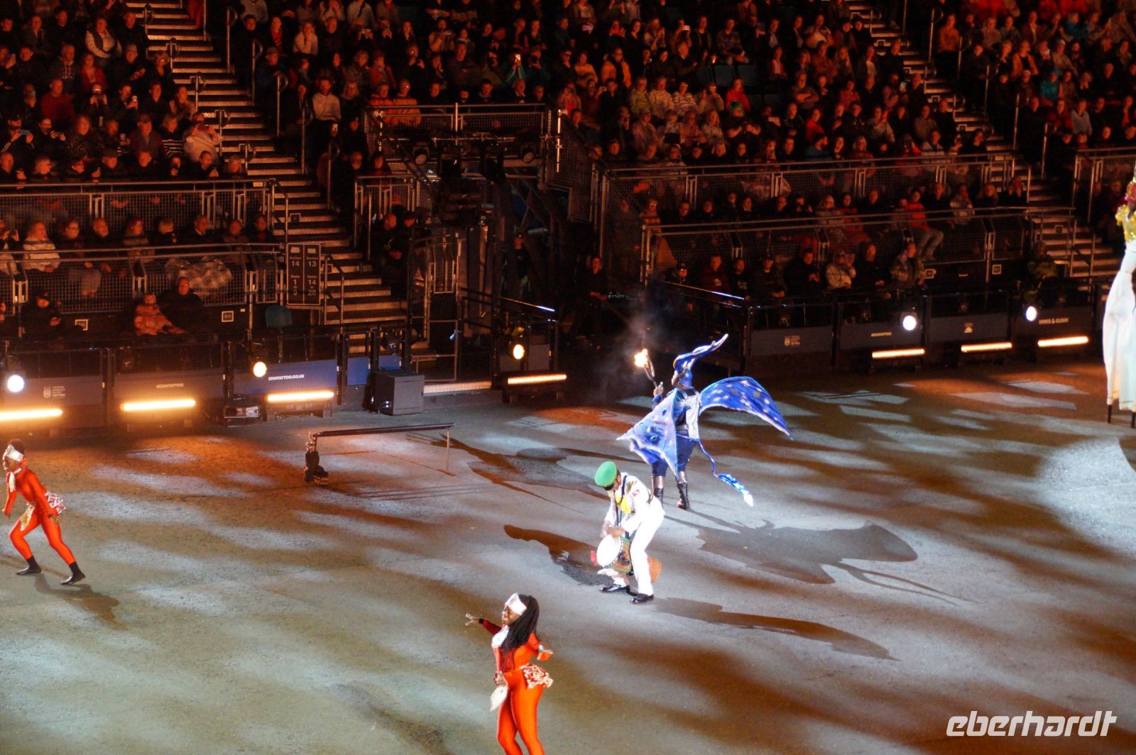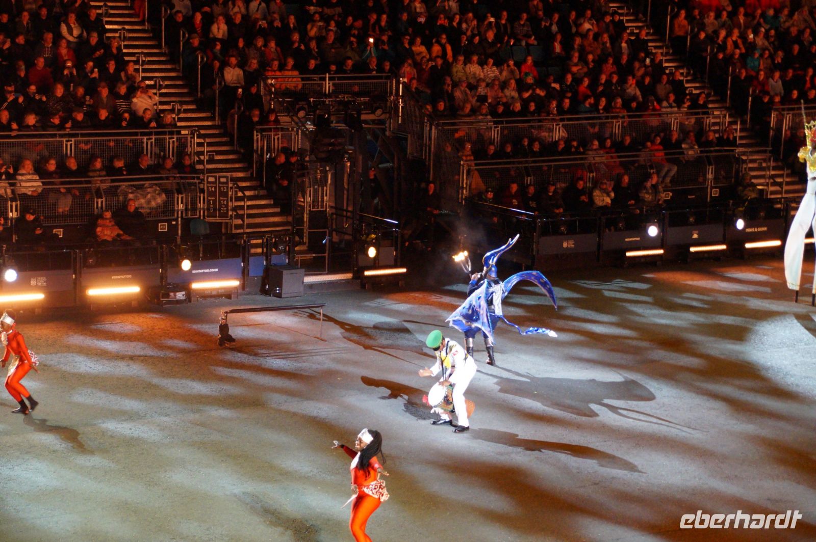 Das Thema des Royal Military Tattoo (RMT) in diesem Jahr hieß Stories (Geschichten) in erste Linie ging es um die Royal Air Force, weswegen der Start der Veranstaltung auch durch den Überflug einesd Jagdbombers initiiert wurde. Ich glaube, das ging so schnell, dass viele das gar nicht mal mitbekamen.