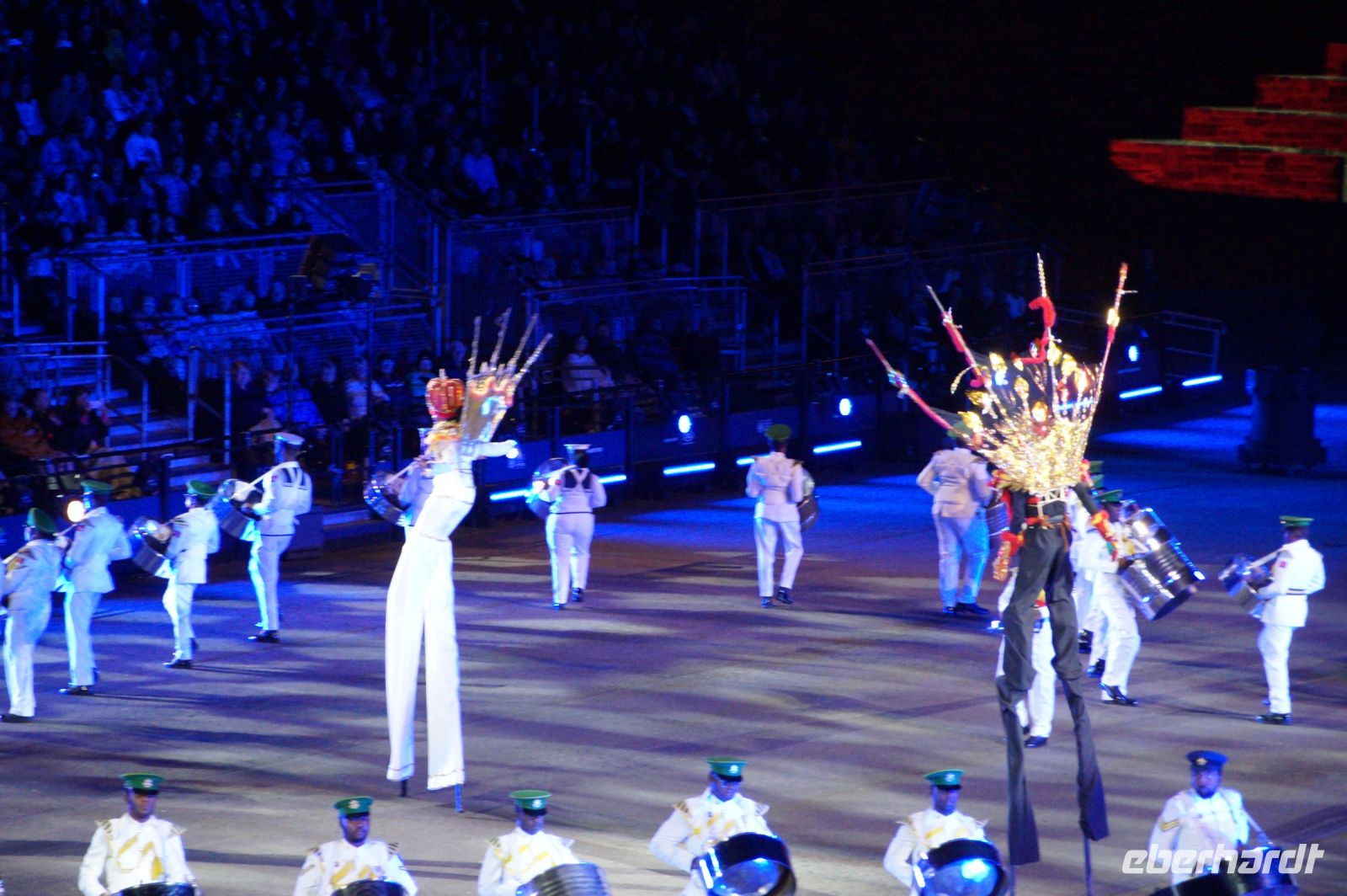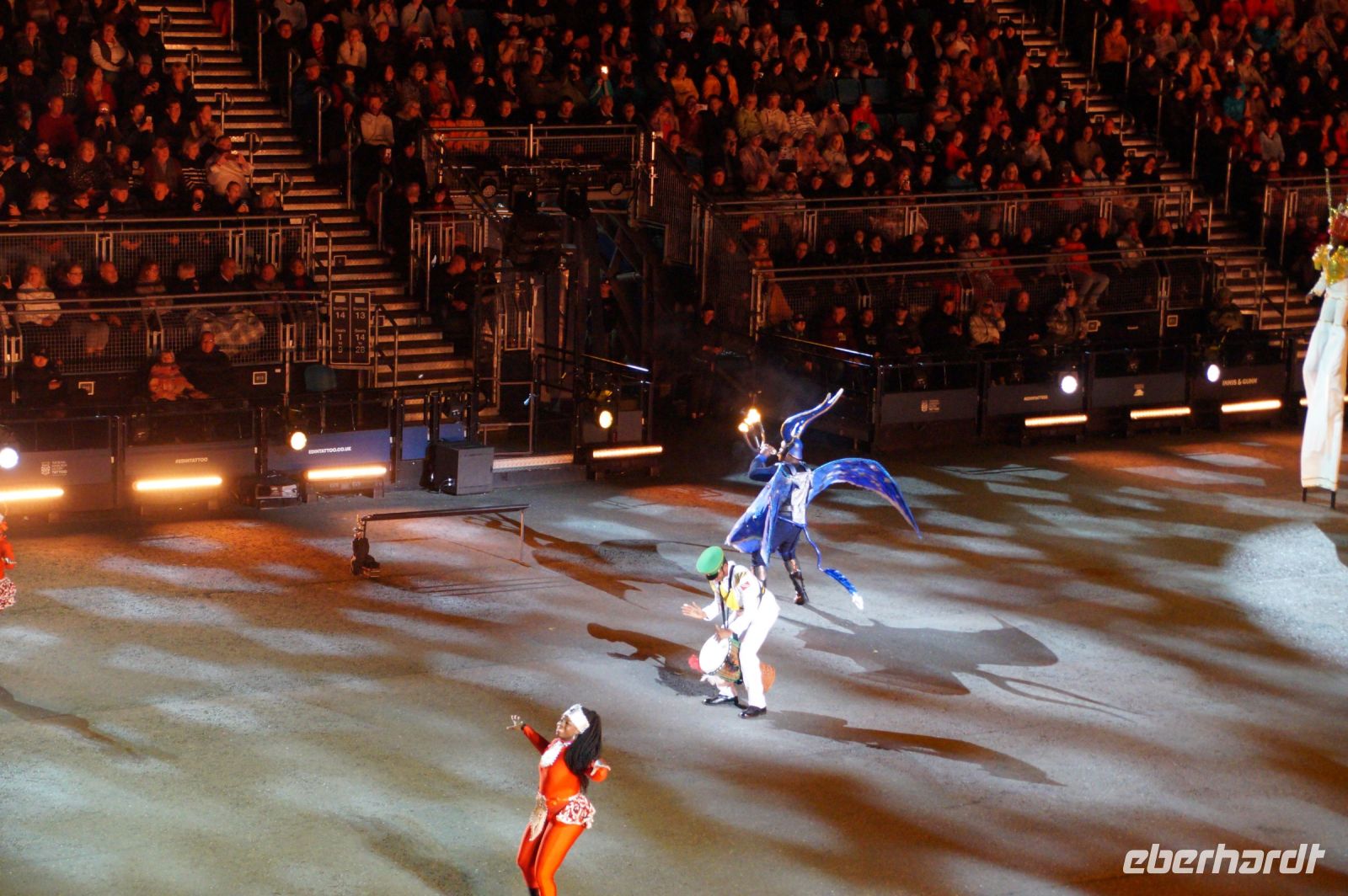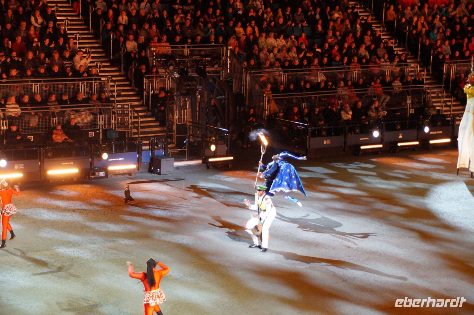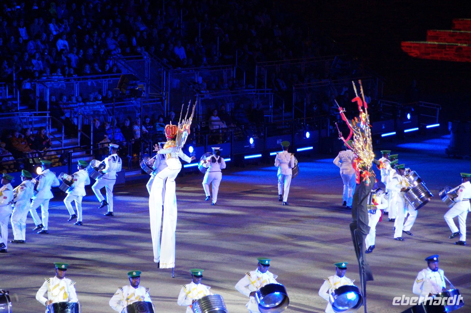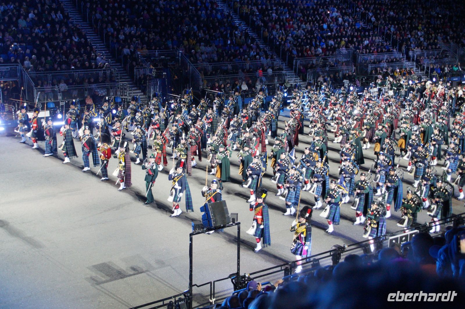 Das Thema des Royal Military Tattoo (RMT) in diesem Jahr hieß Stories (Geschichten) in erste Linie ging es um die Royal Air Force, weswegen der Start der Veranstaltung auch durch den Überflug einesd Jagdbombers initiiert wurde. Ich glaube, das ging so schnell, dass viele das gar nicht mal mitbekamen.