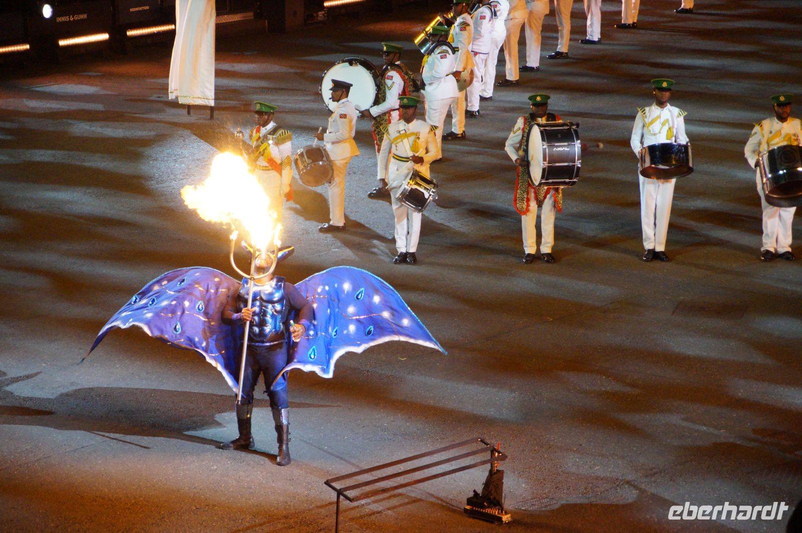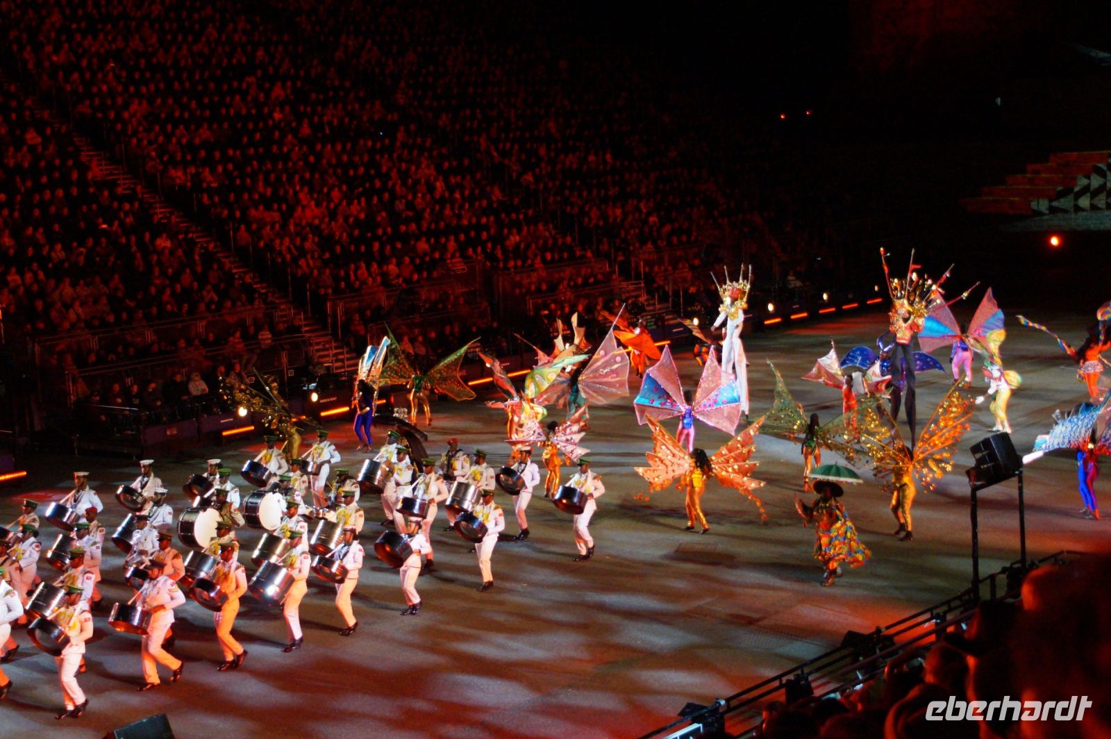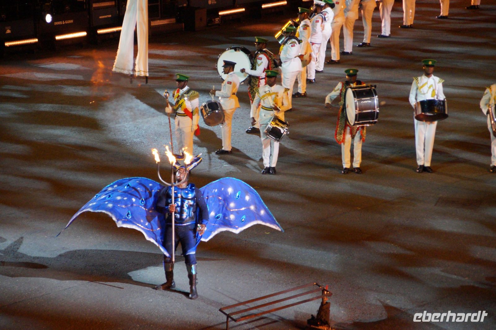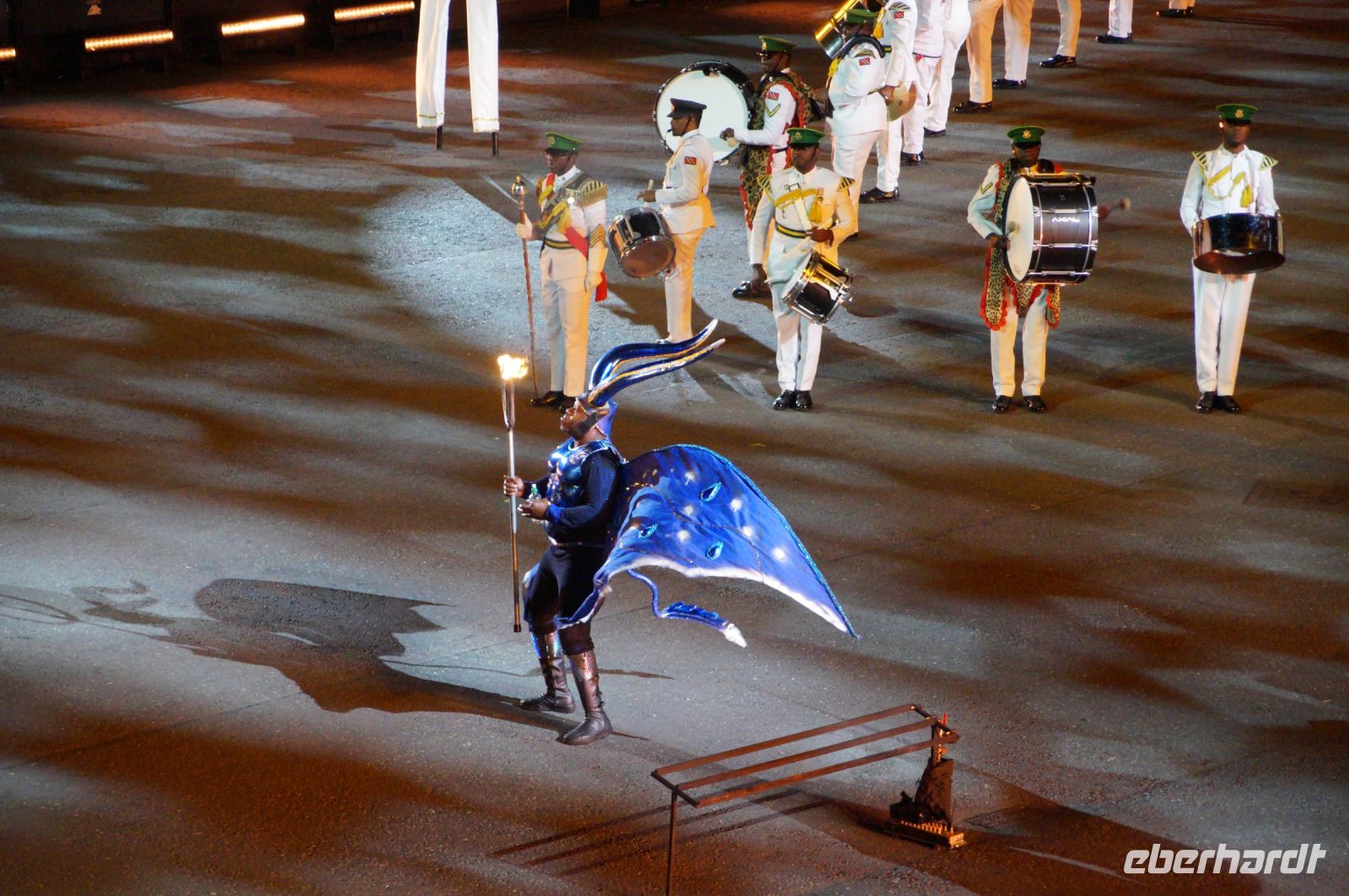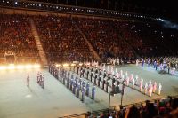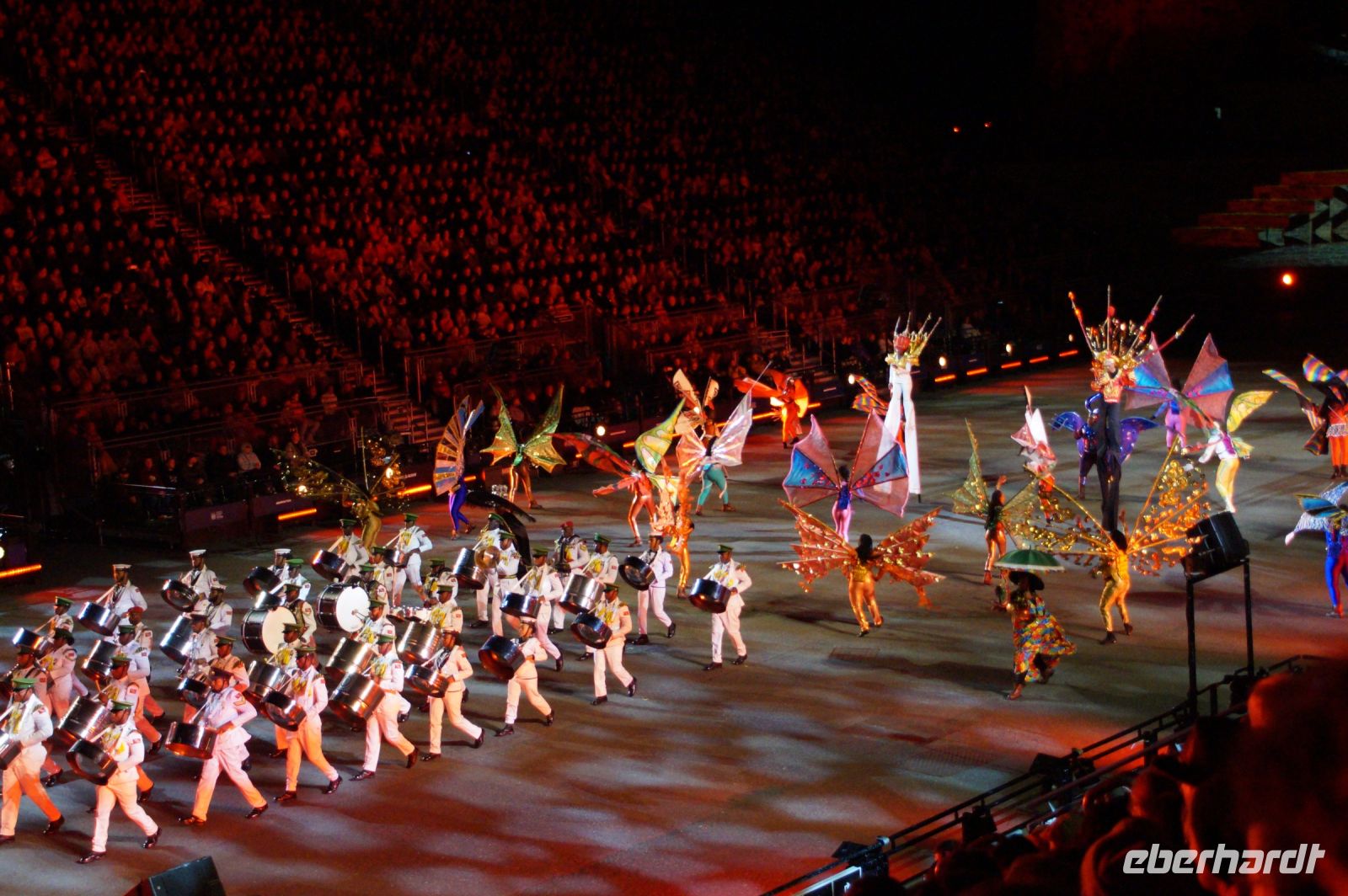 Das Thema des Royal Military Tattoo (RMT) in diesem Jahr hieß Stories (Geschichten) in erste Linie ging es um die Royal Air Force, weswegen der Start der Veranstaltung auch durch den Überflug einesd Jagdbombers initiiert wurde. Ich glaube, das ging so schnell, dass viele das gar nicht mal mitbekamen.