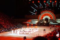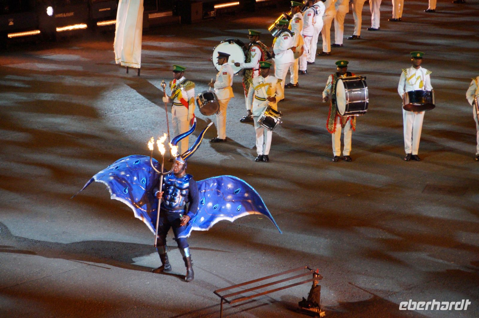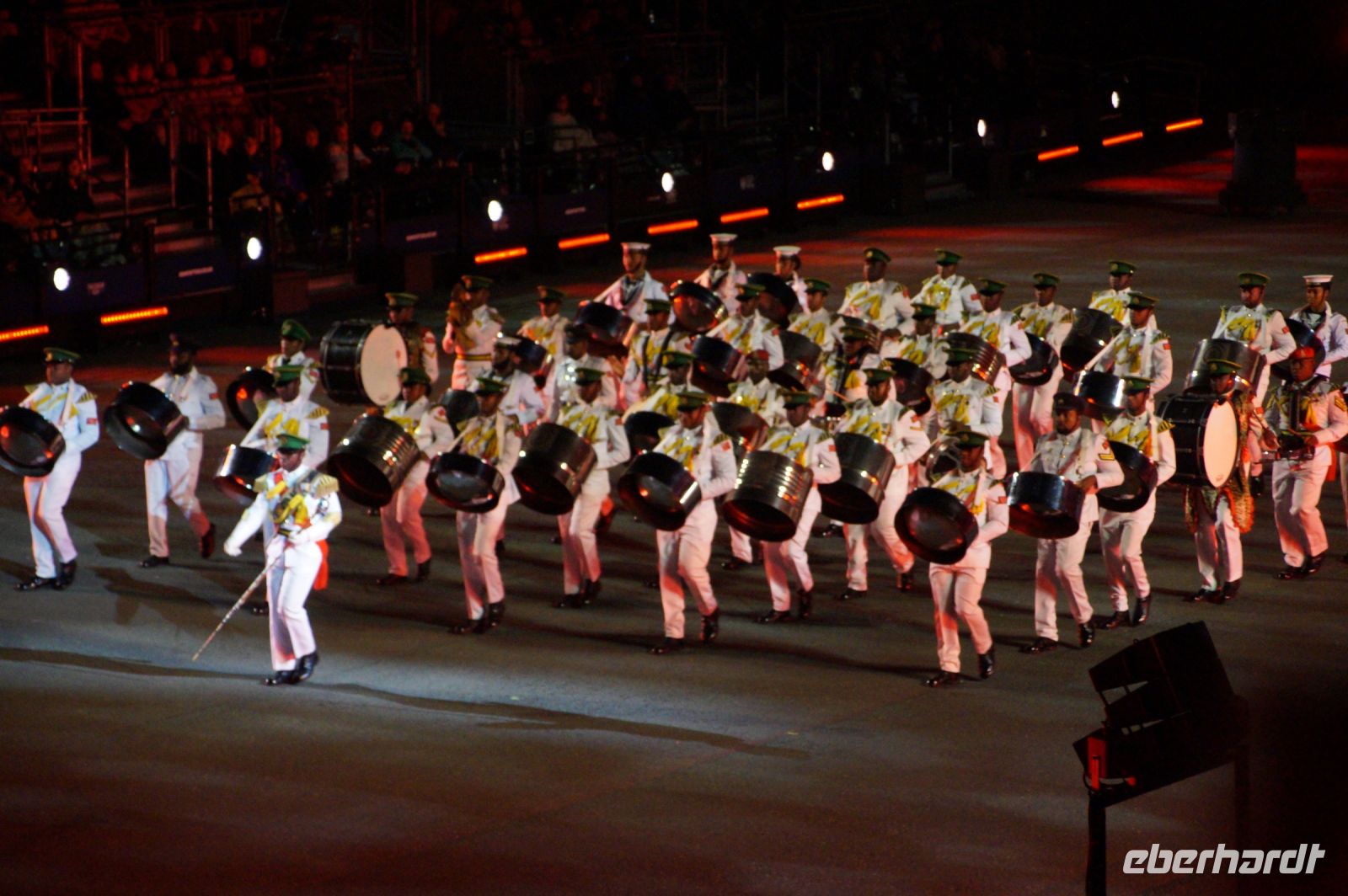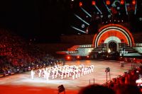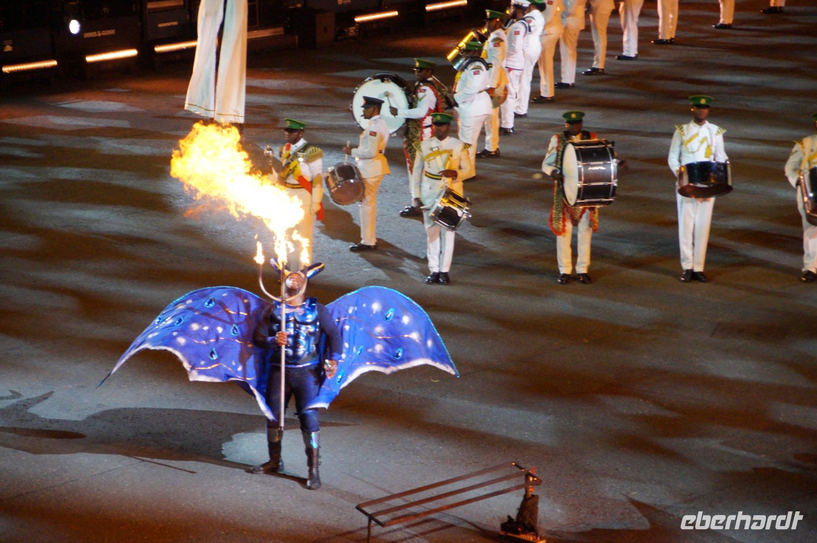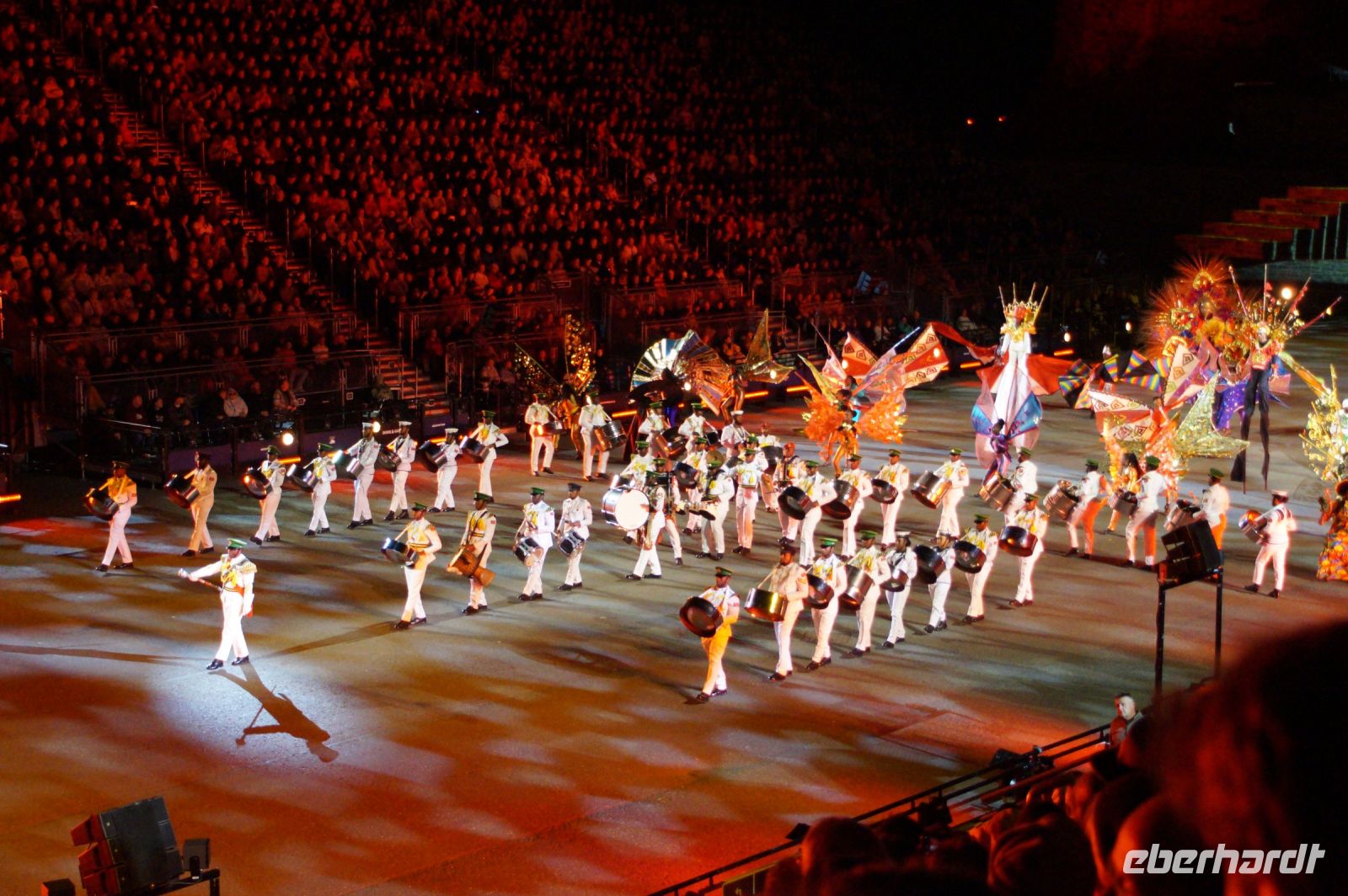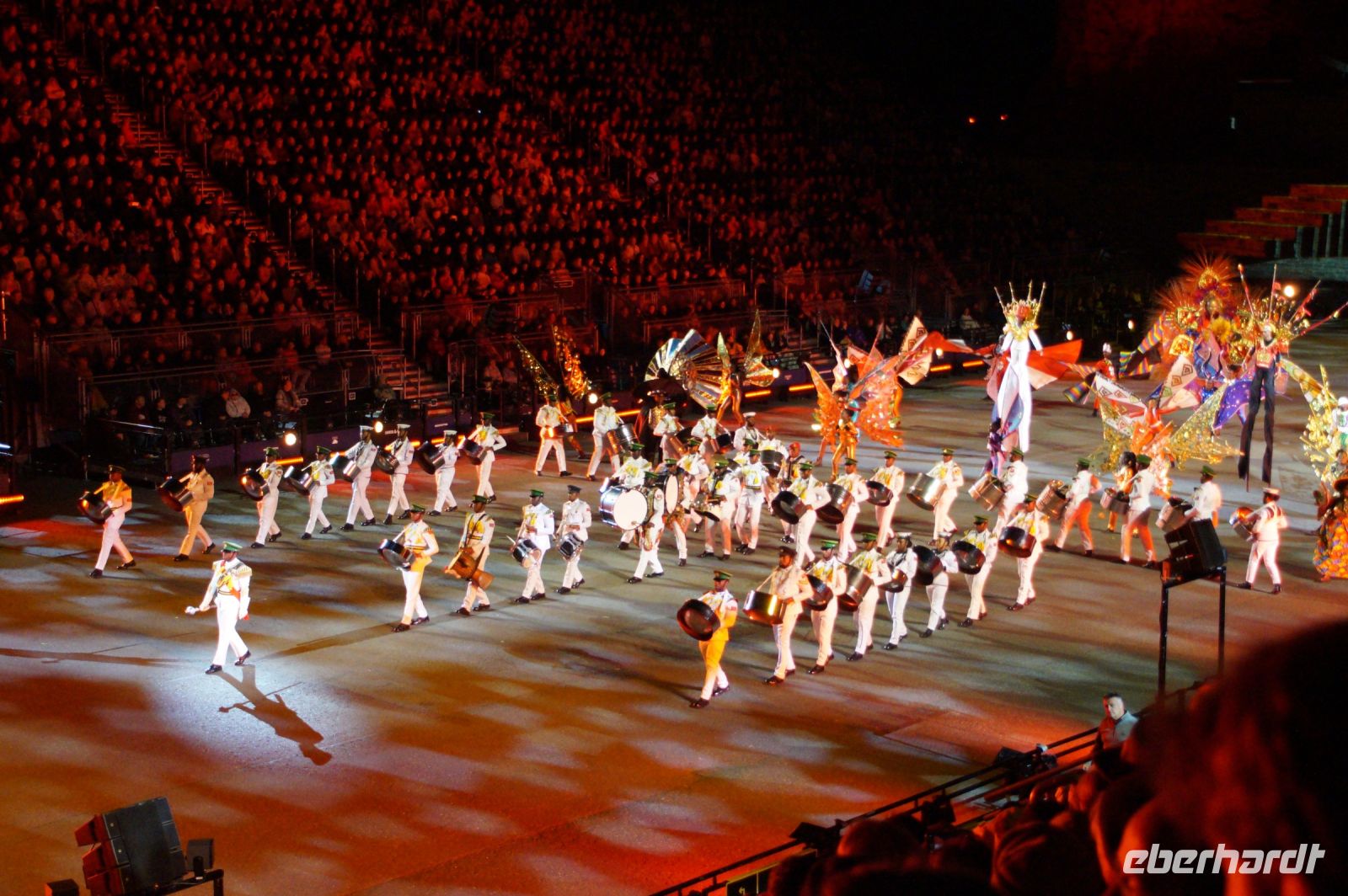 Das Thema des Royal Military Tattoo (RMT) in diesem Jahr hieß Stories (Geschichten) in erste Linie ging es um die Royal Air Force, weswegen der Start der Veranstaltung auch durch den Überflug einesd Jagdbombers initiiert wurde. Ich glaube, das ging so schnell, dass viele das gar nicht mal mitbekamen.
