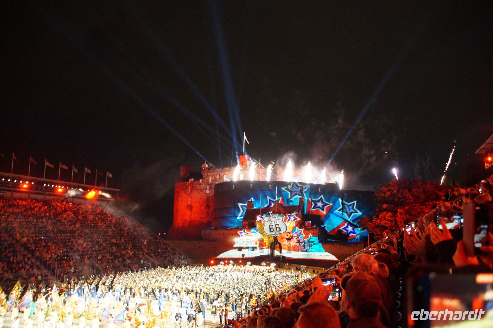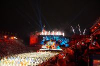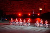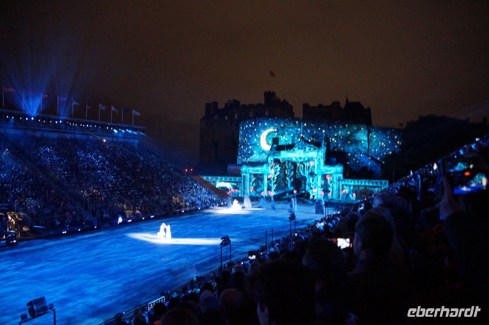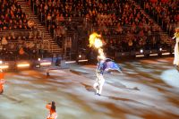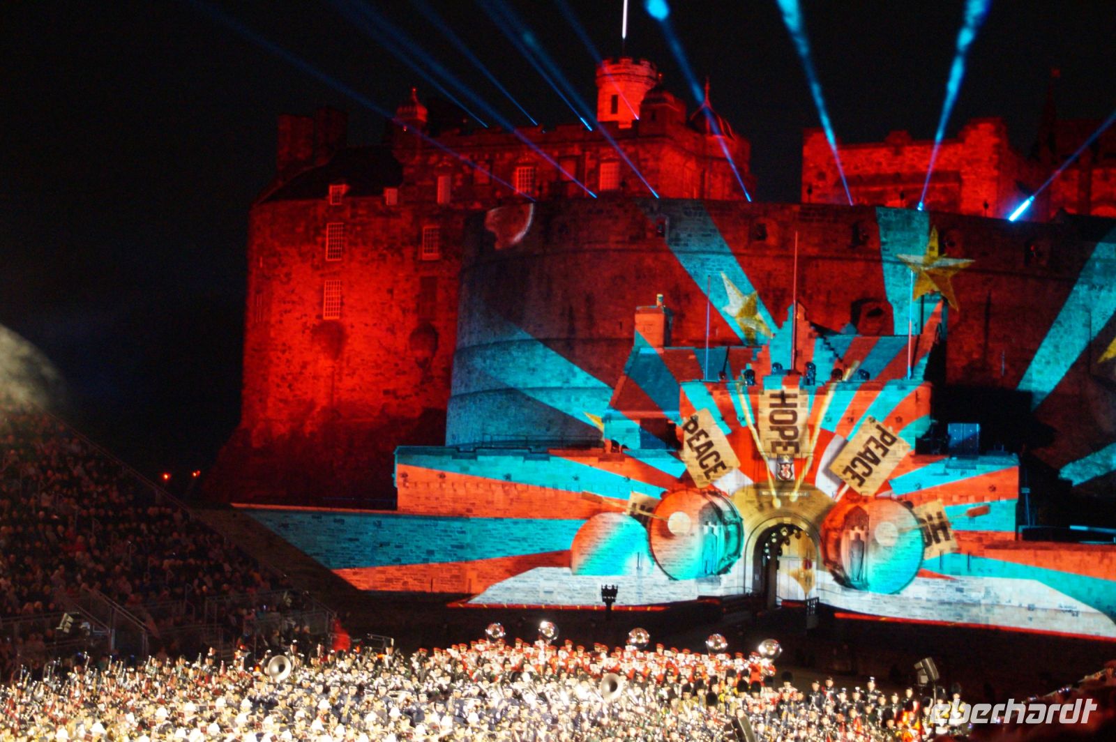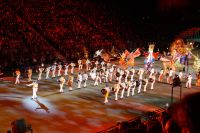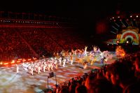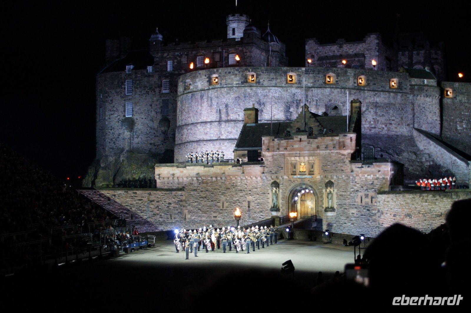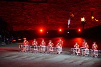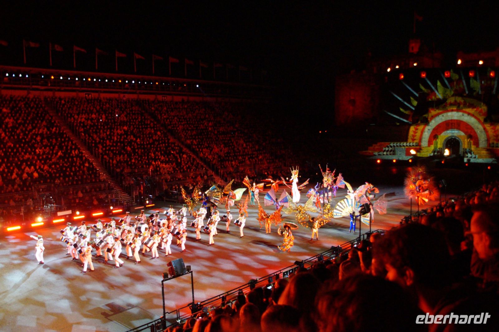 Natürlich waren wieder jede Menge Dudelsackspieler und Trommler dabei, wie sich das für das RMT gehört, aber das Line-Up schien mir dieses Jahr etwas dünner als sonst. Stammgäste wie Top Secret aus der Schweiz und die amerikanische Präsidentengarde fehlten (dafür war die United States Air Force Band dabei), die Norweger, die Schweizer und Trinidad und Tobago hatten Artisten geschickt. Die Burg diente wie immer als Kulisse und als Leinwand.