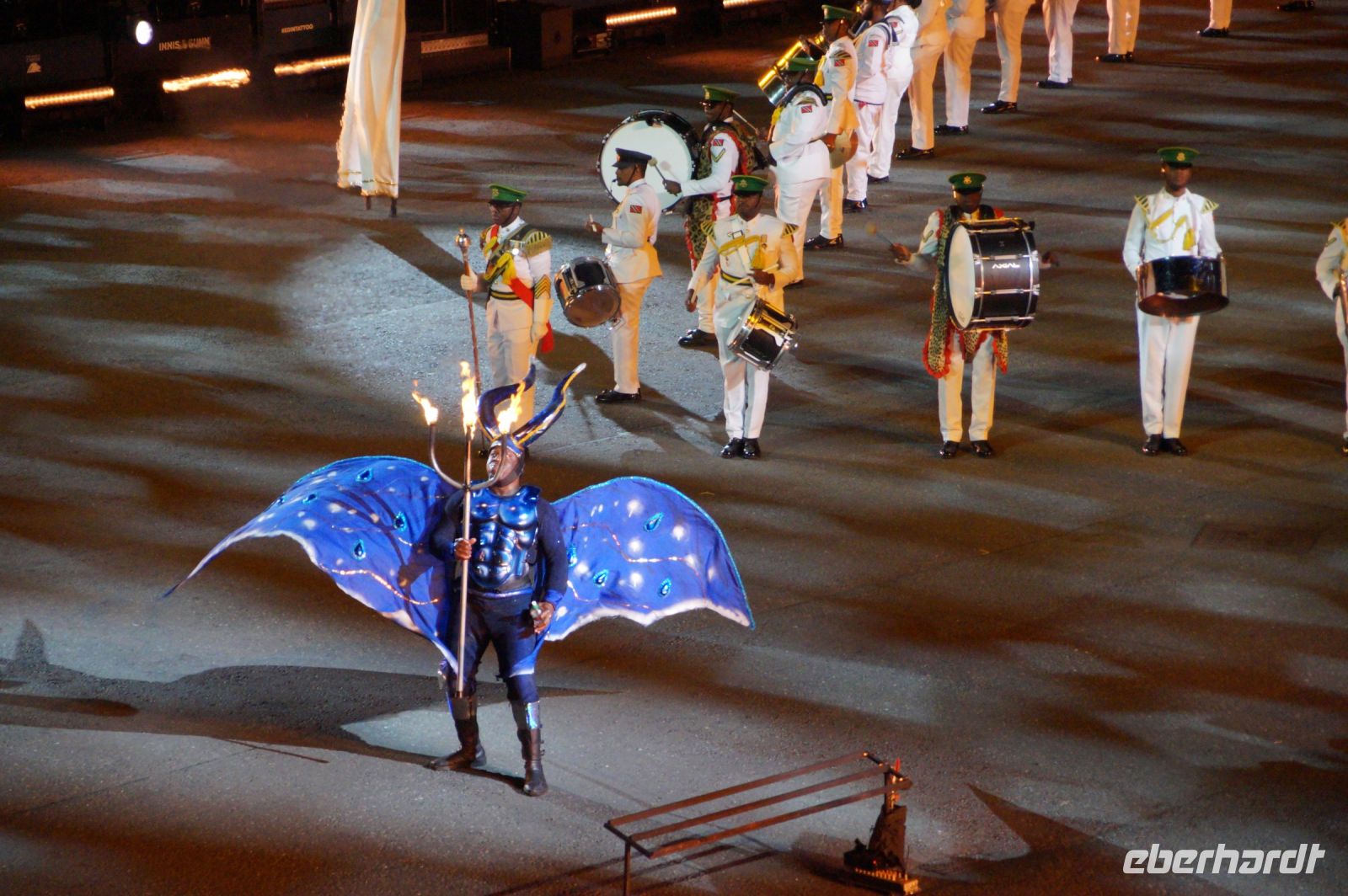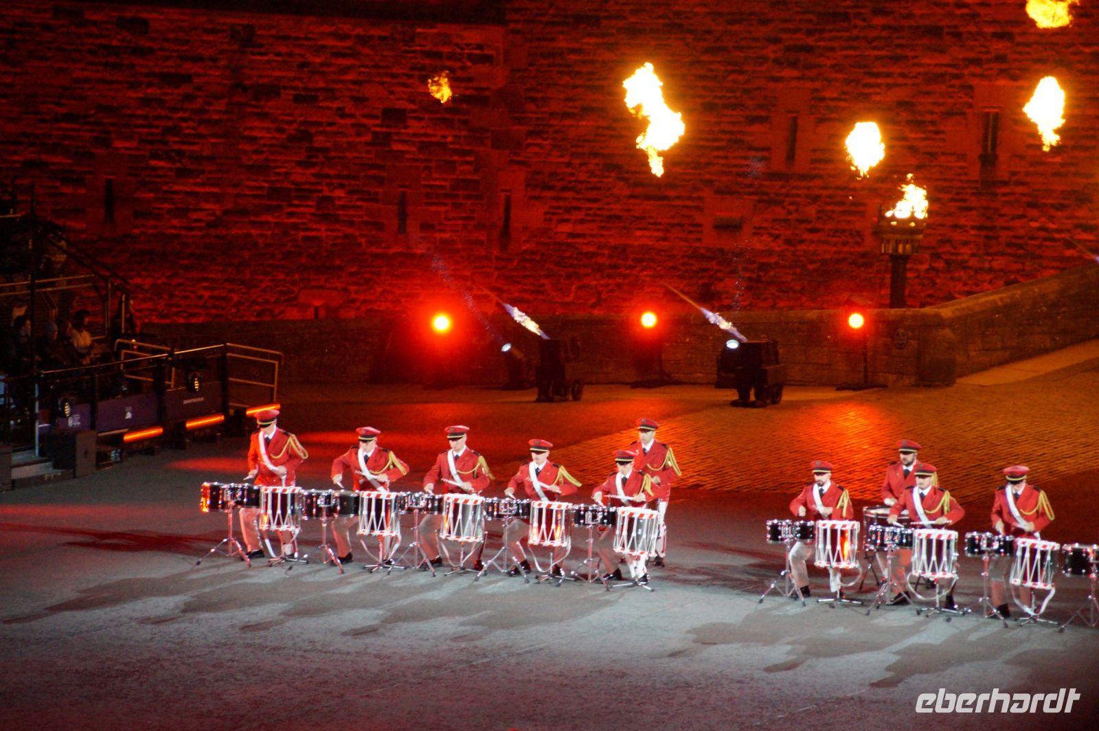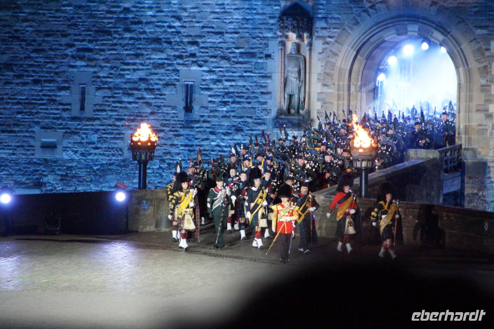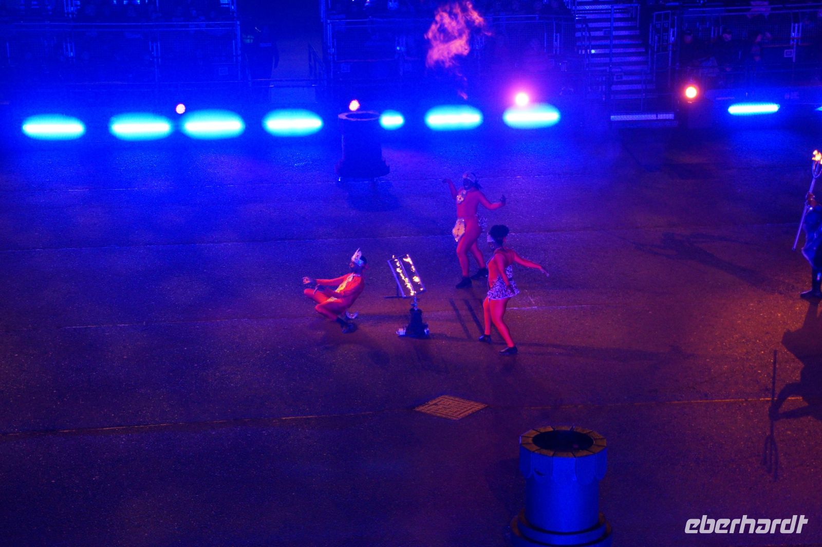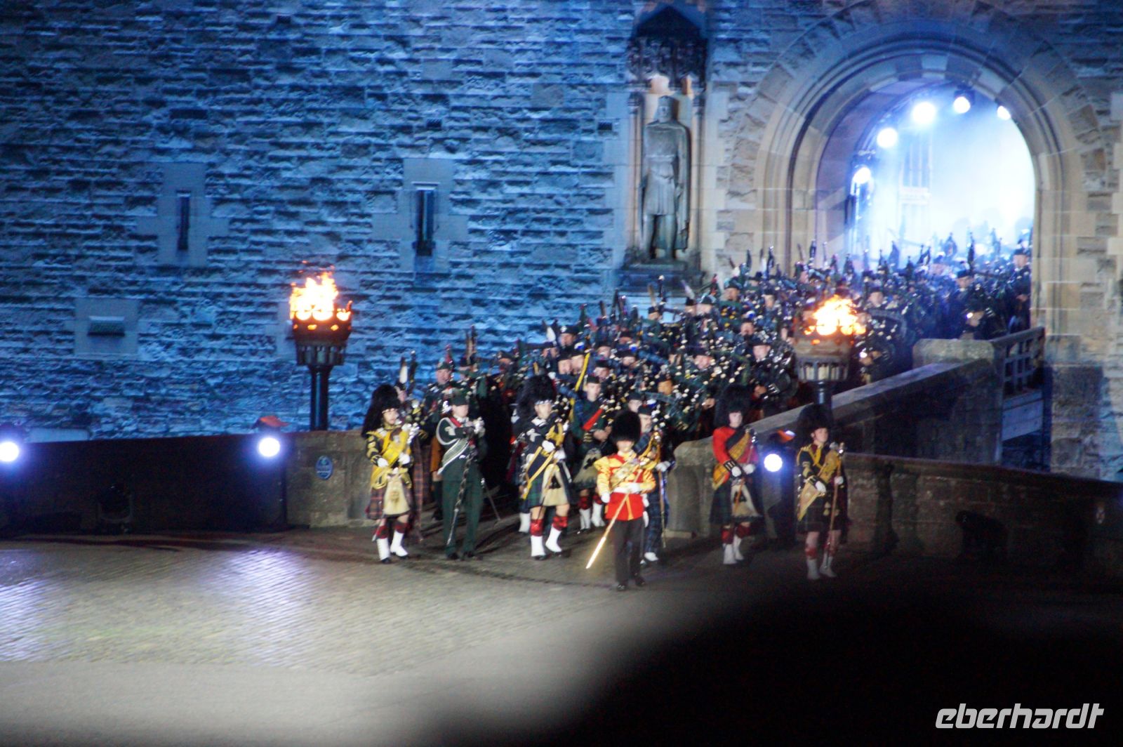 Natürlich waren wieder jede Menge Dudelsackspieler und Trommler dabei, wie sich das für das RMT gehört, aber das Line-Up schien mir dieses Jahr etwas dünner als sonst. Stammgäste wie Top Secret aus der Schweiz und die amerikanische Präsidentengarde fehlten (dafür war die United States Air Force Band dabei), die Norweger, die Schweizer und Trinidad und Tobago hatten Artisten geschickt. Die Burg diente wie immer als Kulisse und als Leinwand.
