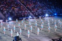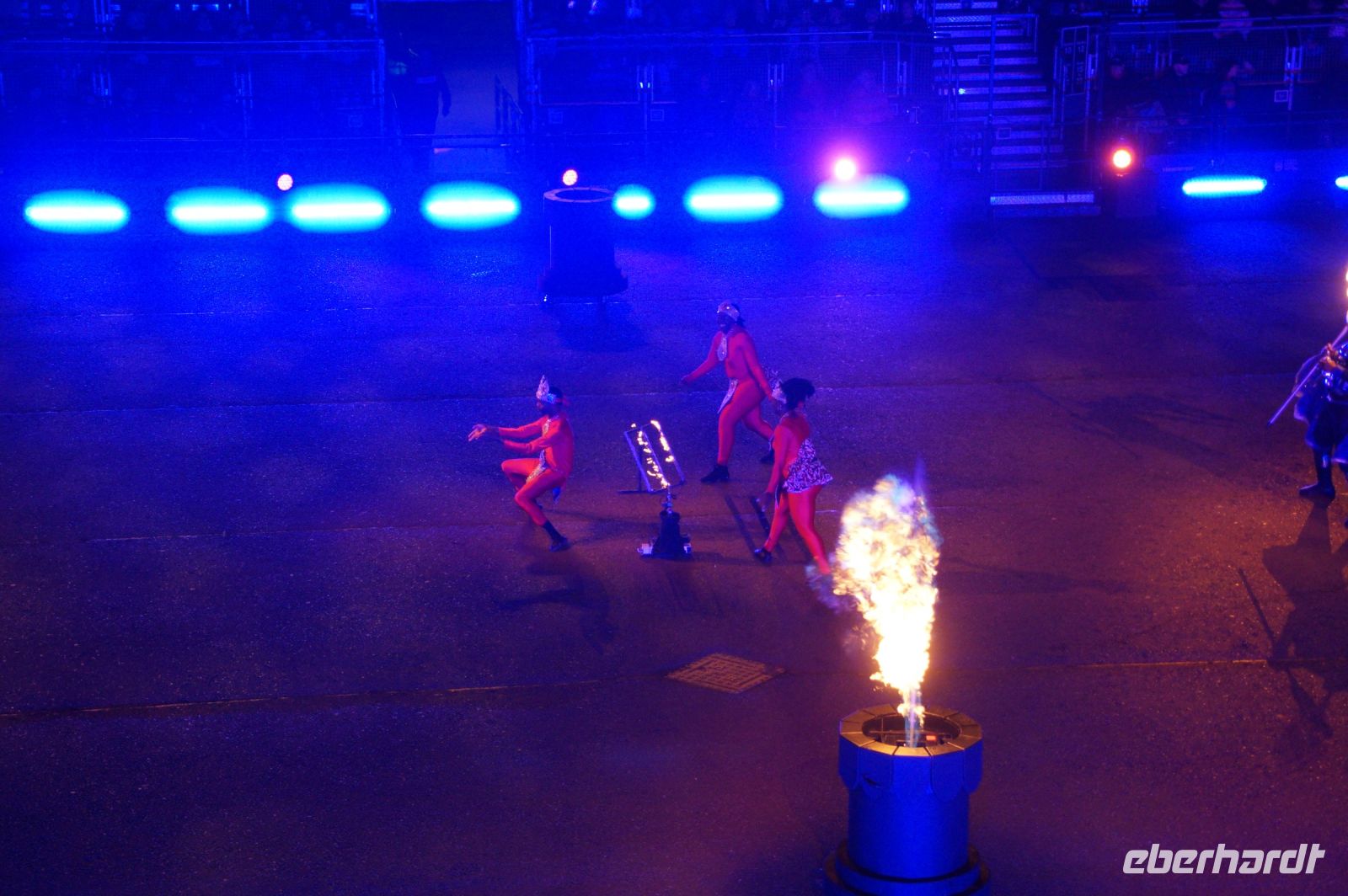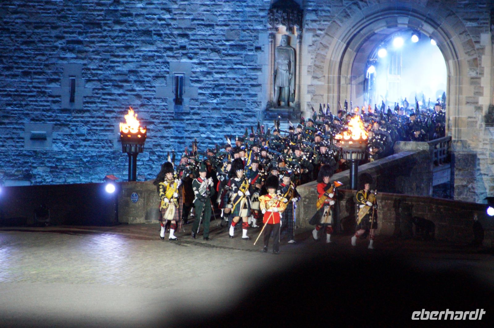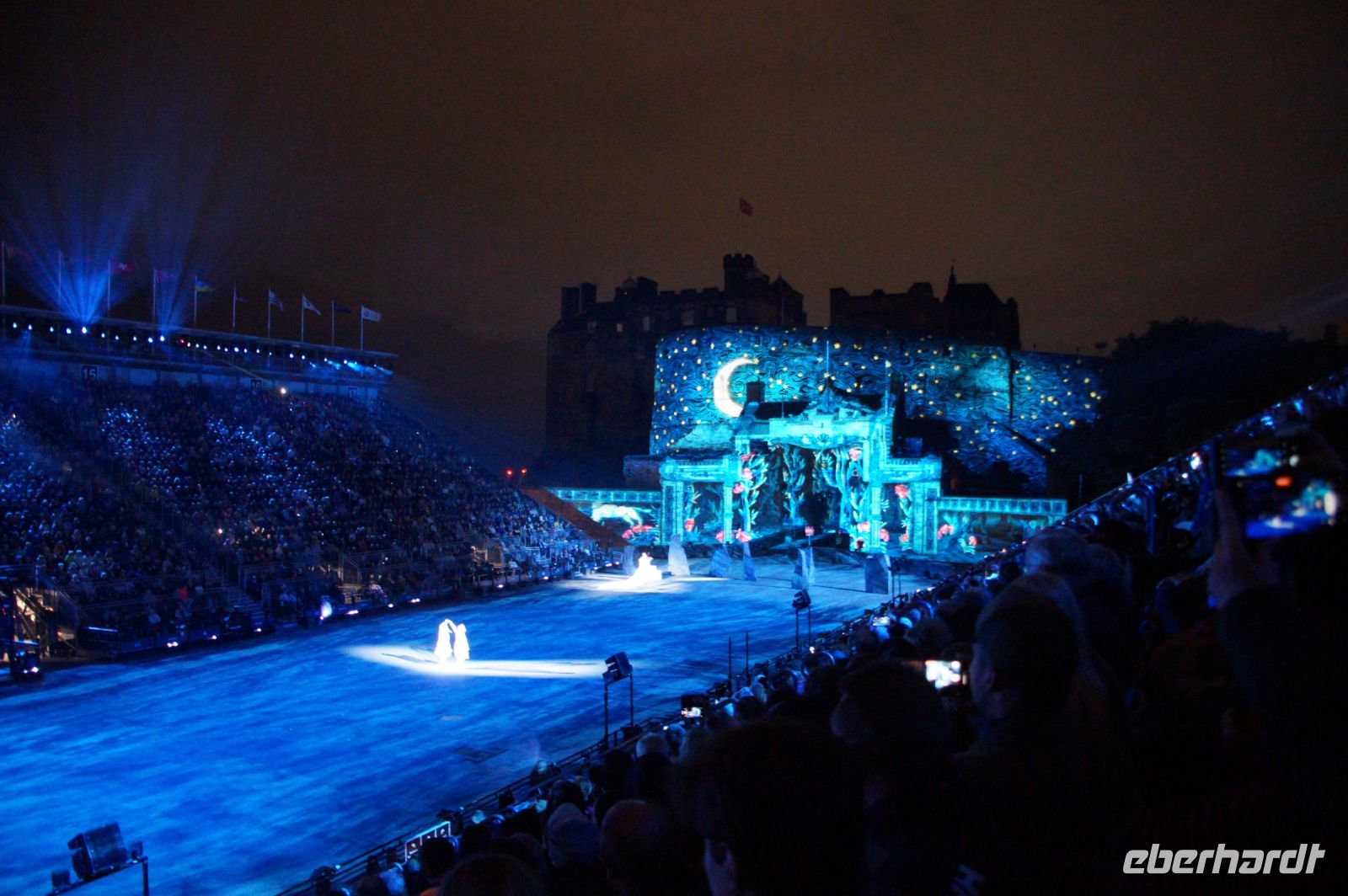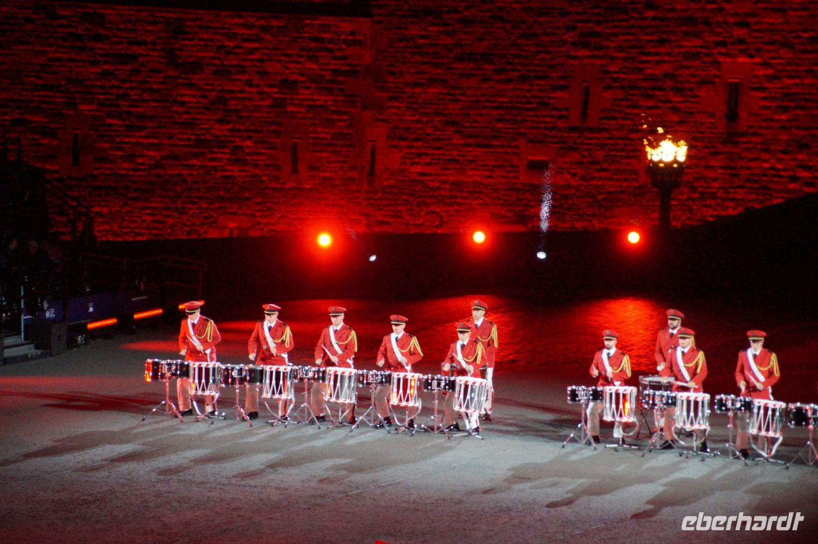 Natürlich waren wieder jede Menge Dudelsackspieler und Trommler dabei, wie sich das für das RMT gehört, aber das Line-Up schien mir dieses Jahr etwas dünner als sonst. Stammgäste wie Top Secret aus der Schweiz und die amerikanische Präsidentengarde fehlten (dafür war die United States Air Force Band dabei), die Norweger, die Schweizer und Trinidad und Tobago hatten Artisten geschickt. Die Burg diente wie immer als Kulisse und als Leinwand.