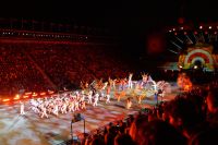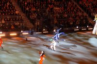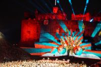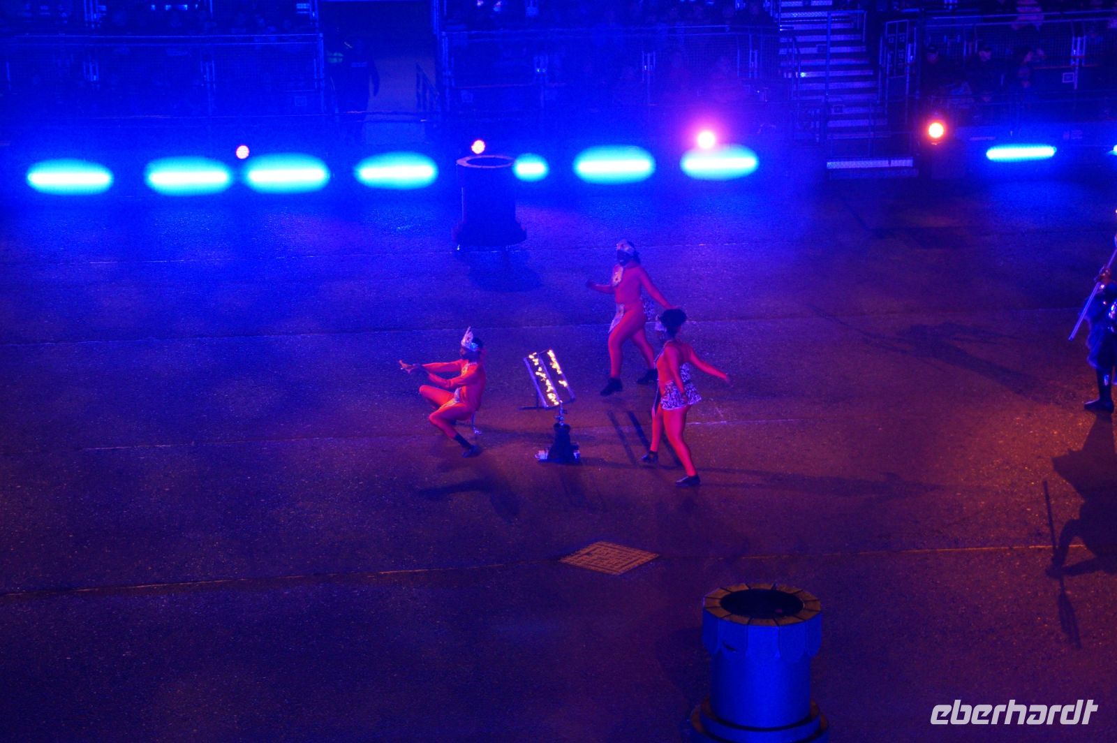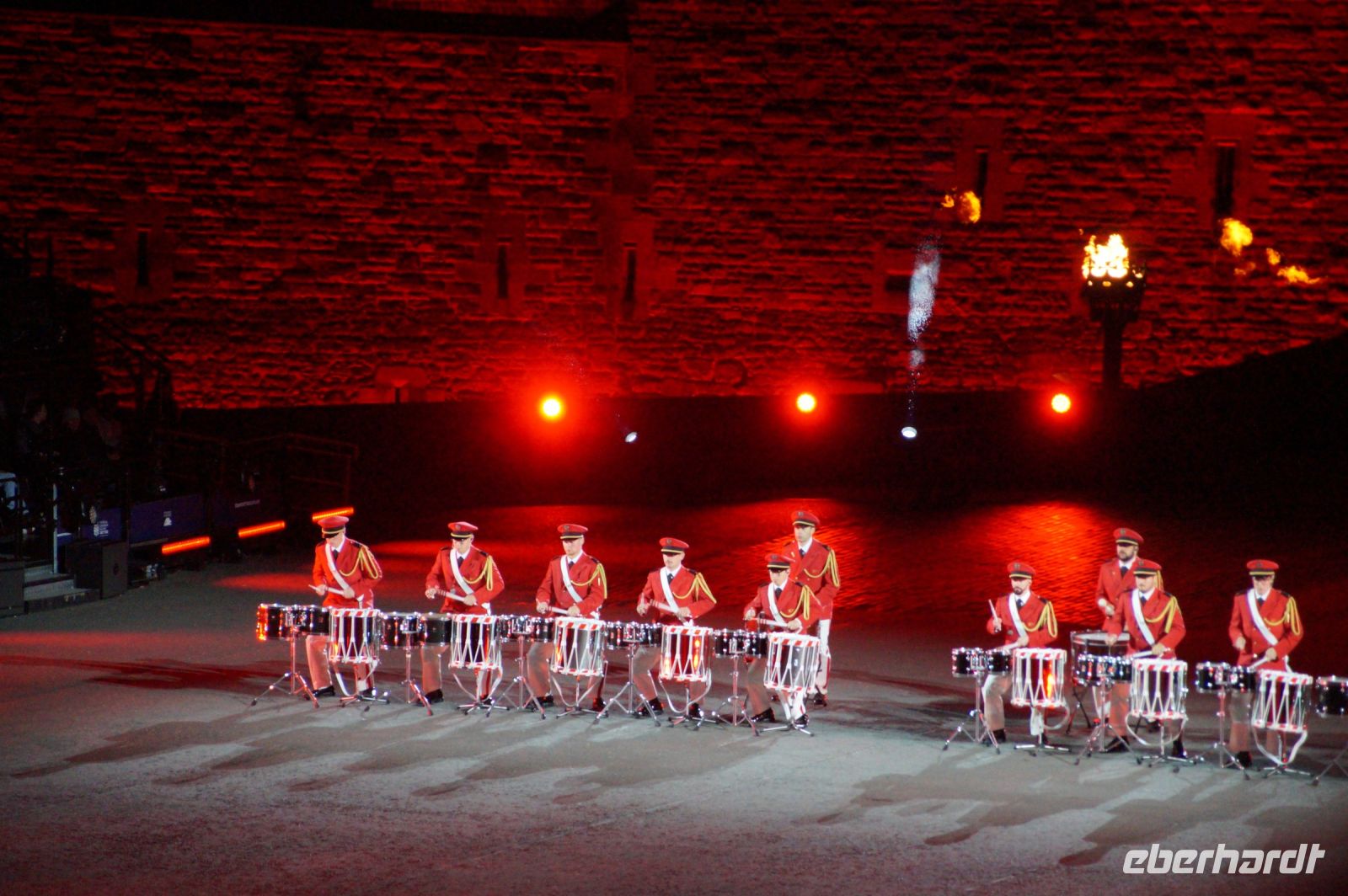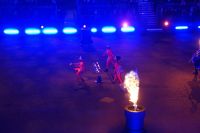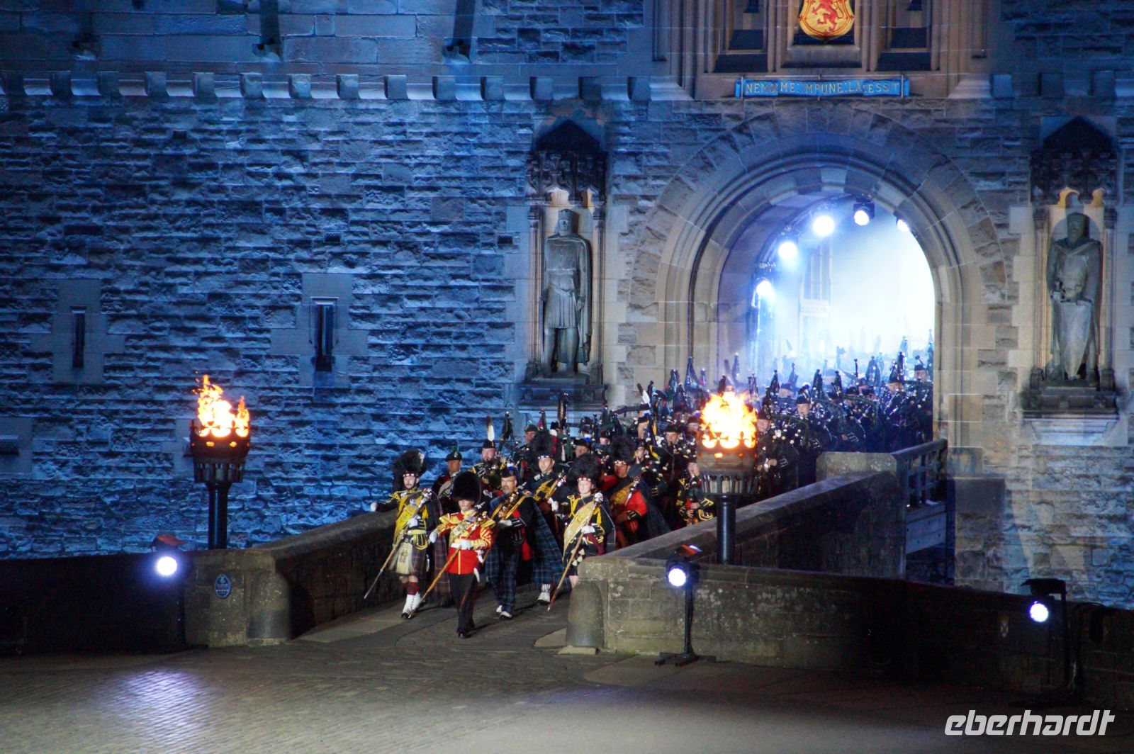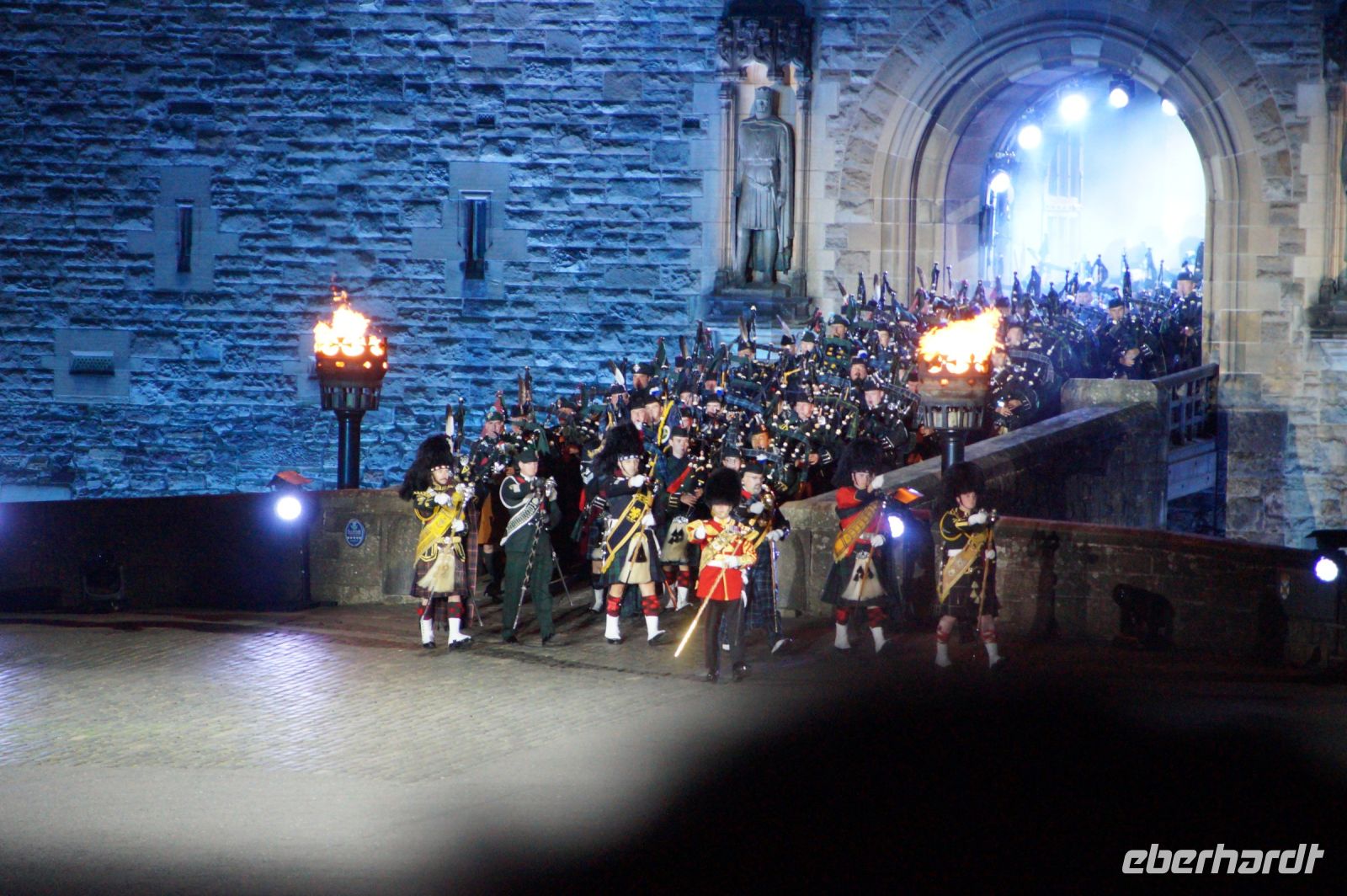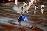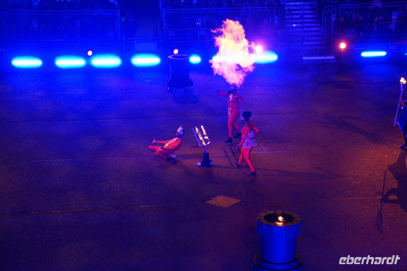 Natürlich waren wieder jede Menge Dudelsackspieler und Trommler dabei, wie sich das für das RMT gehört, aber das Line-Up schien mir dieses Jahr etwas dünner als sonst. Stammgäste wie Top Secret aus der Schweiz und die amerikanische Präsidentengarde fehlten (dafür war die United States Air Force Band dabei), die Norweger, die Schweizer und Trinidad und Tobago hatten Artisten geschickt. Die Burg diente wie immer als Kulisse und als Leinwand.
