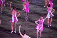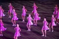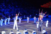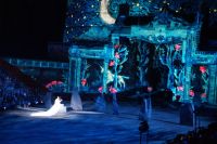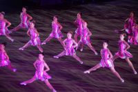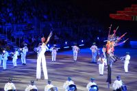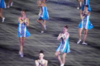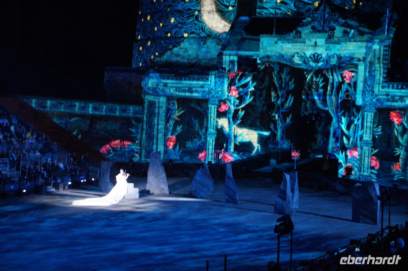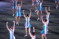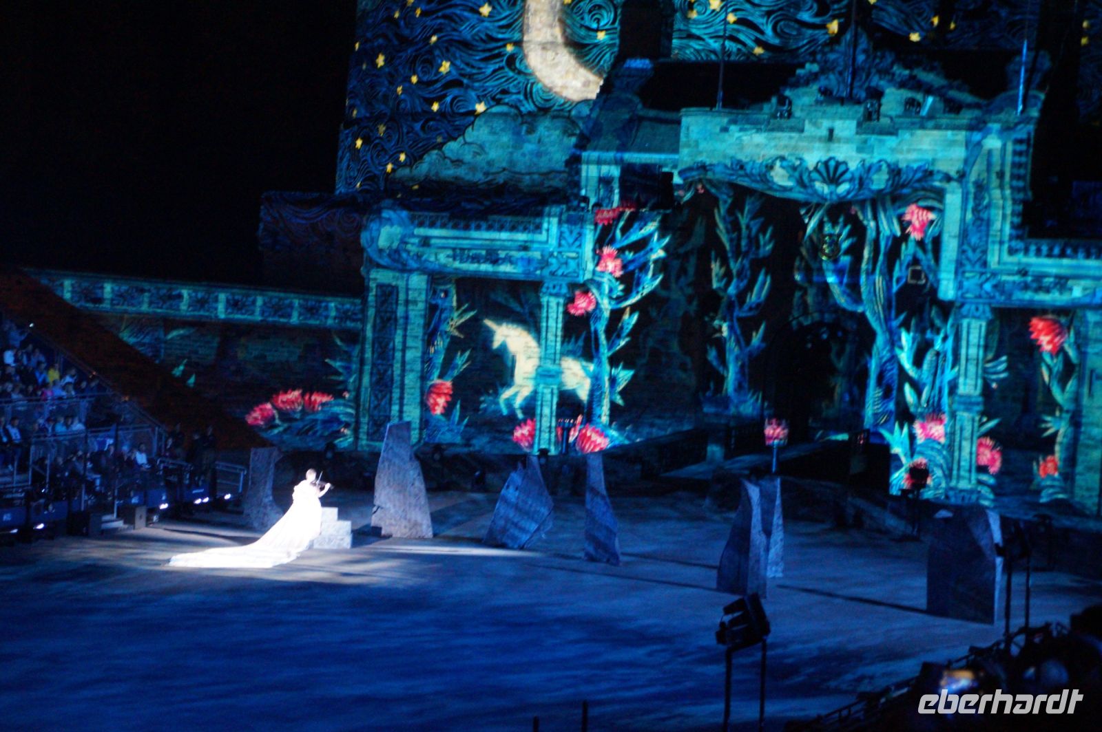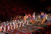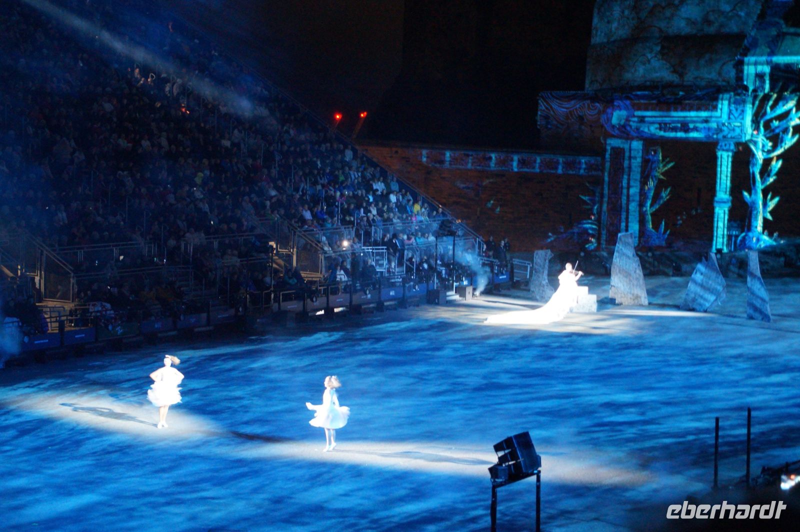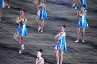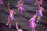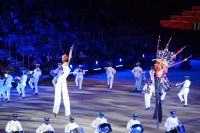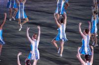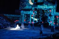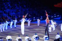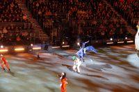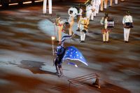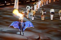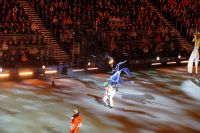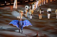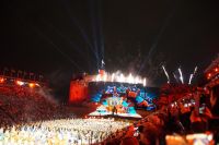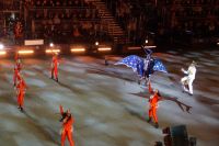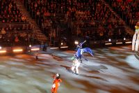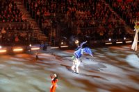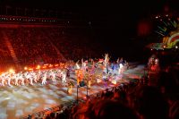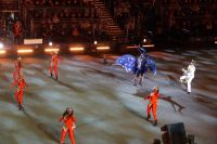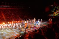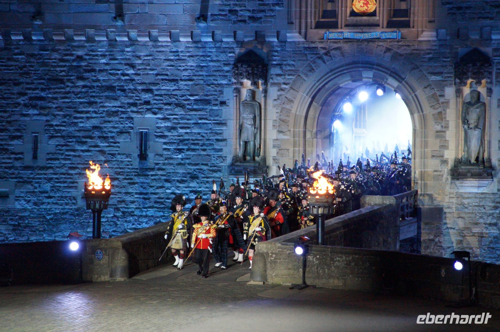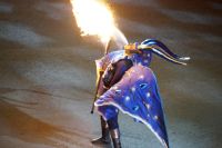 Natürlich waren wieder jede Menge Dudelsackspieler und Trommler dabei, wie sich das für das RMT gehört, aber das Line-Up schien mir dieses Jahr etwas dünner als sonst. Stammgäste wie Top Secret aus der Schweiz und die amerikanische Präsidentengarde fehlten (dafür war die United States Air Force Band dabei), die Norweger, die Schweizer und Trinidad und Tobago hatten Artisten geschickt. Die Burg diente wie immer als Kulisse und als Leinwand.
