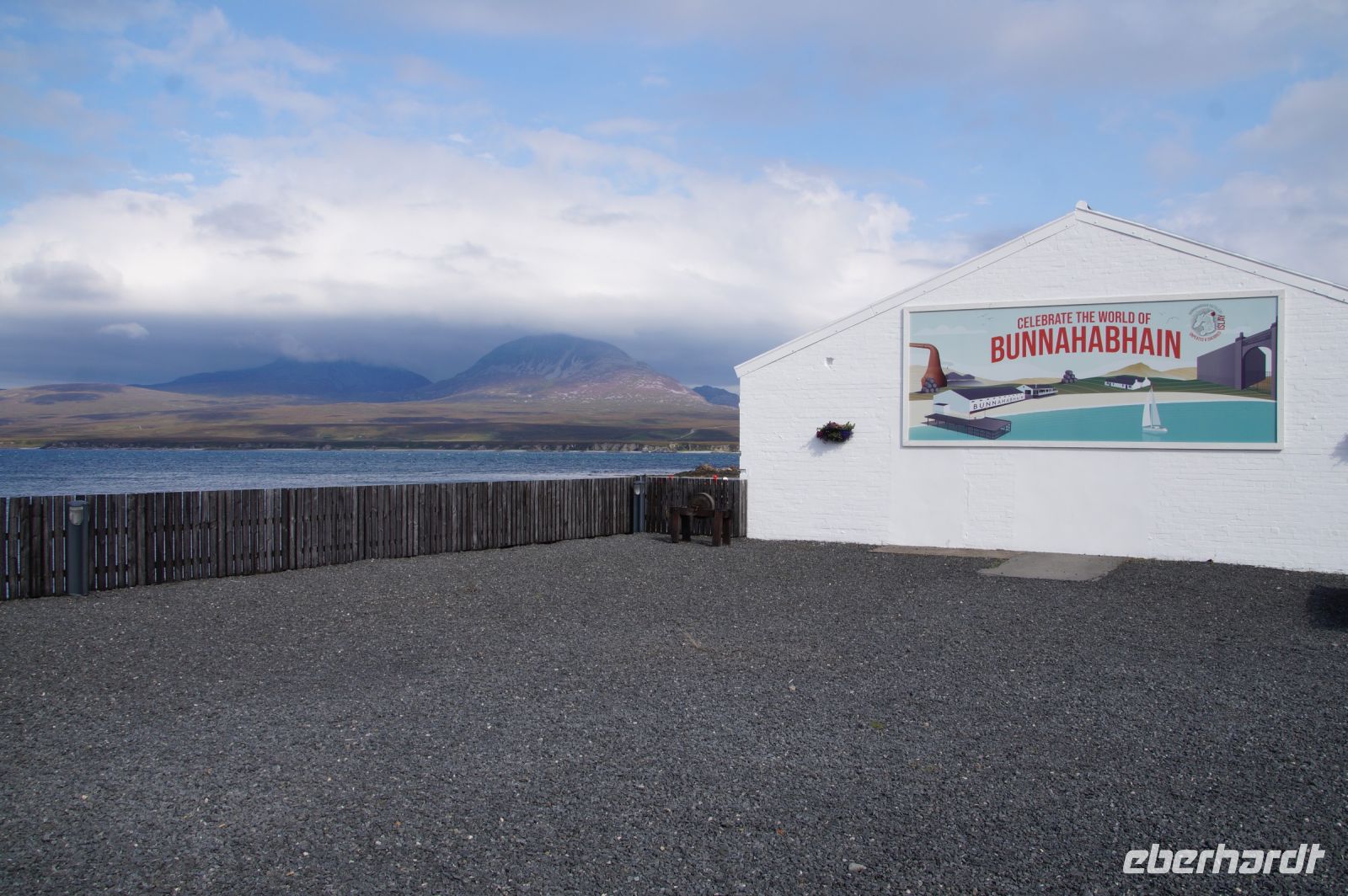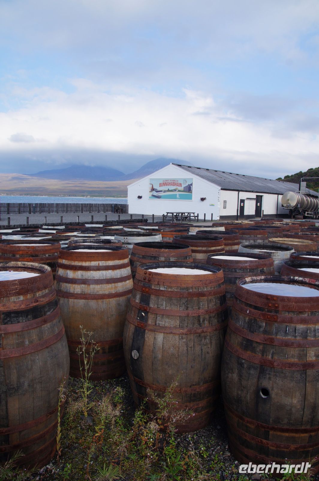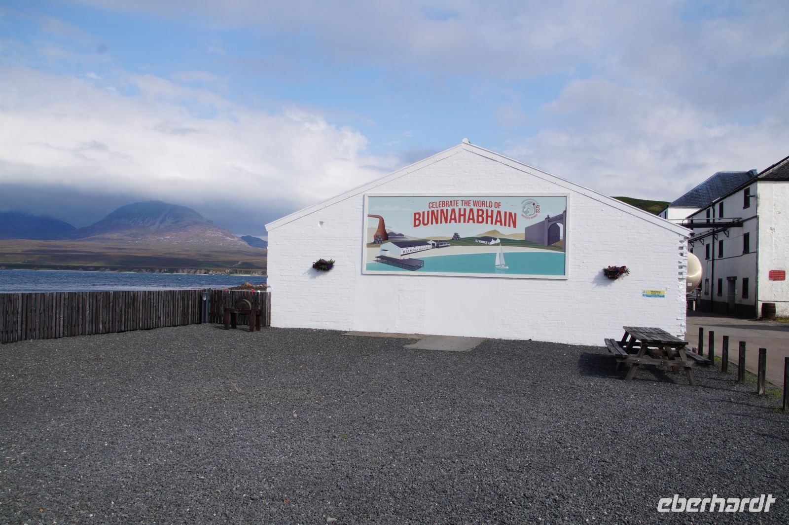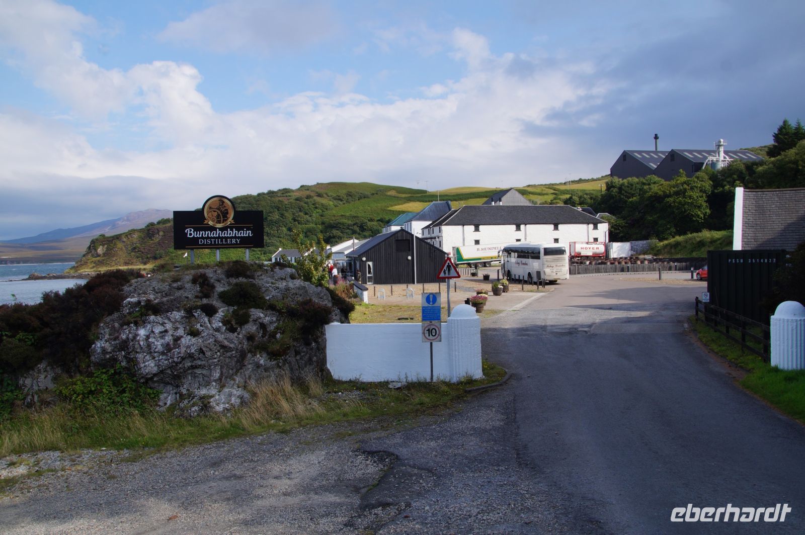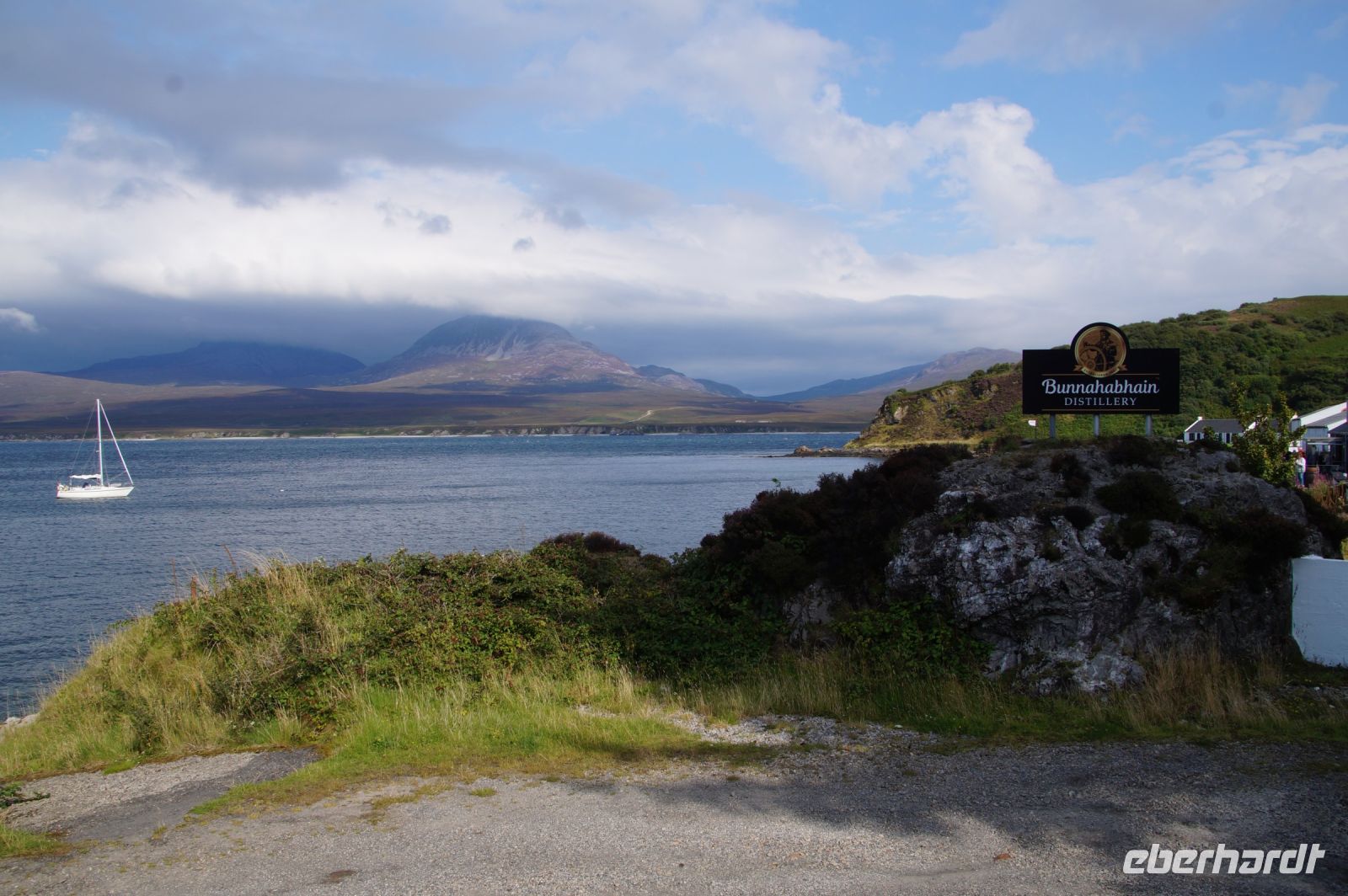 So schlenderten wir ein wenig durch die Inselhauptstadt, dann fuhr Patrick uns zur Bunnahabhain Distillery am Sound of Islay, wo wir kurz vor Schließung des Besucherzentrums noch einen Whisky spendiert bekamen. Ich glaube, einige aus der Gruppe haben sich revanchiert, in dem sie aus dem Shop einige Souvenirs mitgenommen haben.