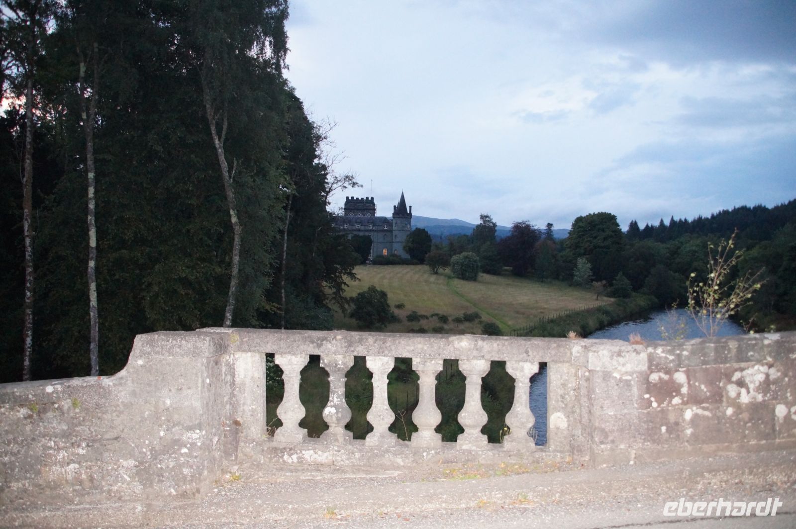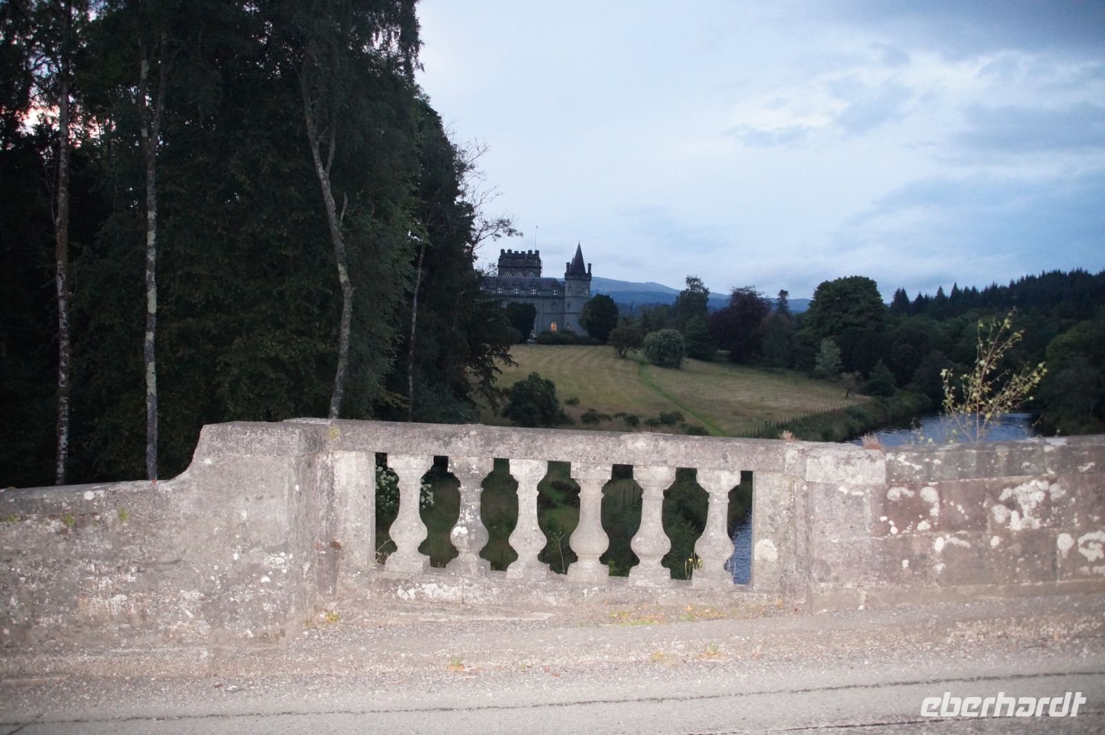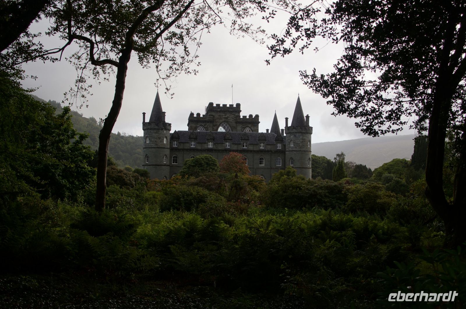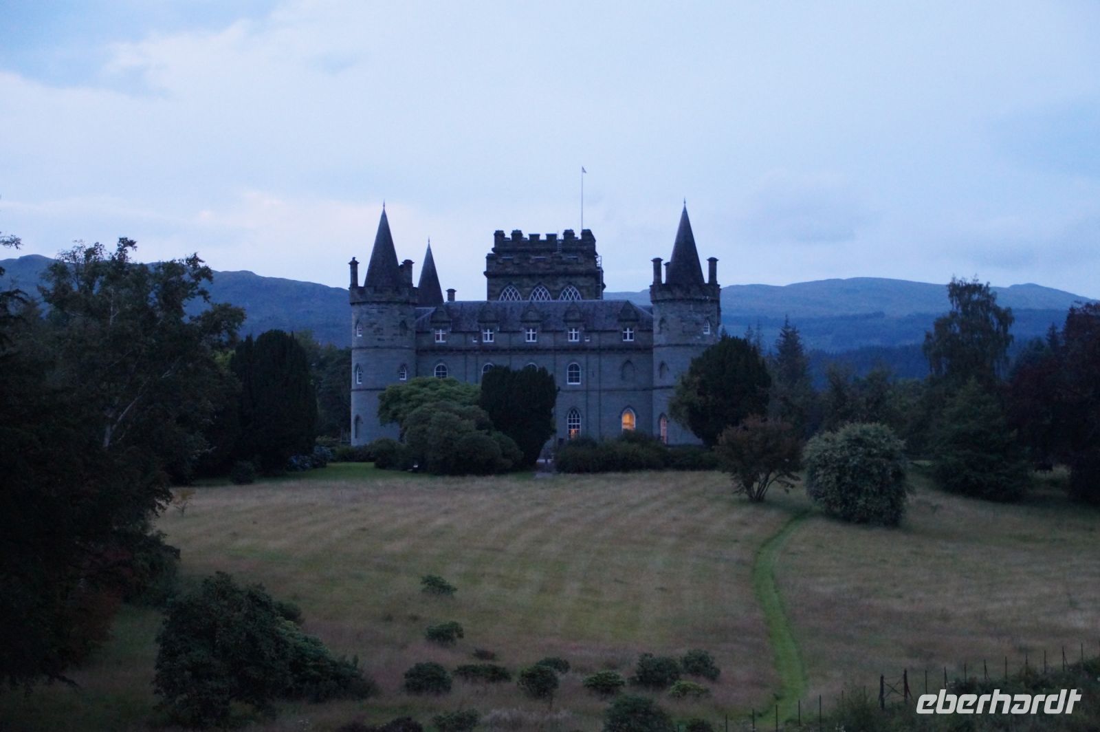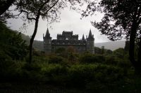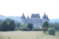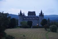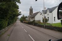 Weiter an Loch Long vorbei, einem Sea Loch (Meeresarm), führte uns unser Weg entlang einer von General Wade's Military Roads, die allerdings erst nach Wade's Abberufung von dessen Adjuntanten und Nachfolger Caulfeild [sic!] errichtet wurde. Auf einem Pass ein Stein mit der Inschrift Rest and be thankfull (Ruhe dich aus und sei dankbar): Und das kann man dort durchaus, denn der Blick ins Glencroe (nicht zu verwechseln mit dem berühmteren Glen Coe) ist wunderschön. Am Loch Fyne entlang - der örtliche Geschäftsleute immer wieder zu einem Wortspiel animiert (Fyne Ales, Fyne Whiskies... Whiskies/Biere vom Loch Fyne//feine Biere/Whiskies) - erreichten wir schließlich Inveraray, wo wir im Inn unser Nachtlager aufschlugen. Inveraray hat eine Kirche, die in der Mitte in zwei geteilt ist, einen Teil für das ursprünglich gälischsprachigen Glenaray (Gleann = Tal von Aray) und einen Teil für das englischsprachige Inveraray (Inbhir = Mündung des Aray). Das hat natürlich heute keine Bedeutung mehr, die eine Hälfte benutzt die Gemeinde als eine Art Bazar.